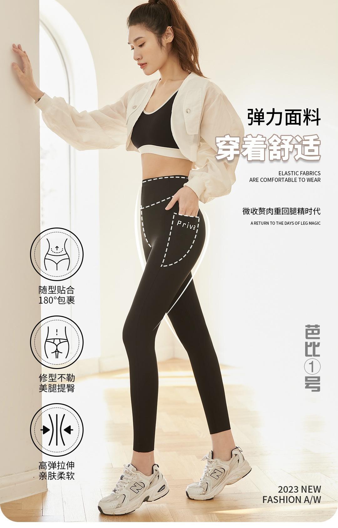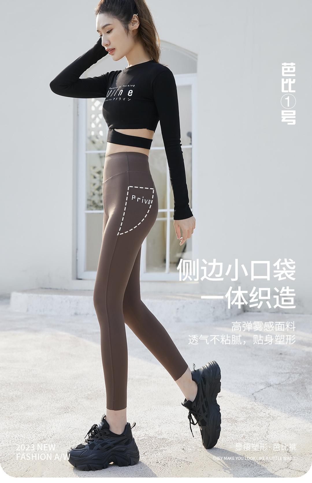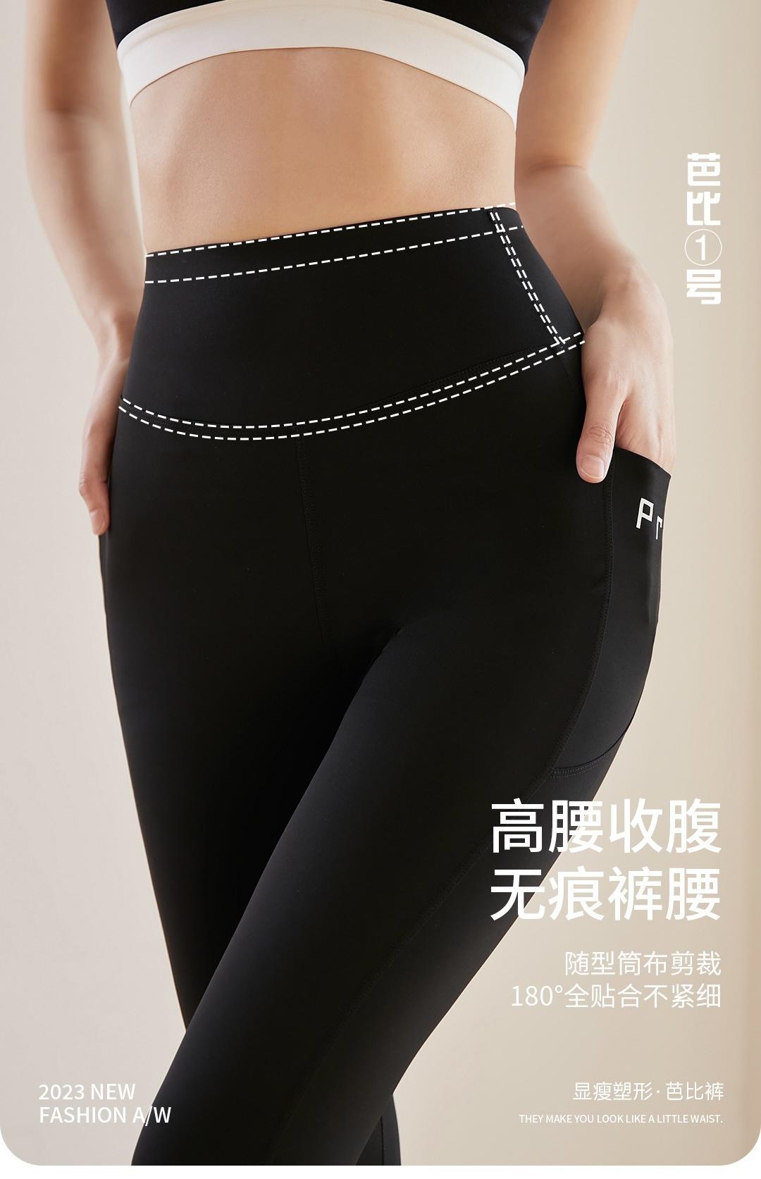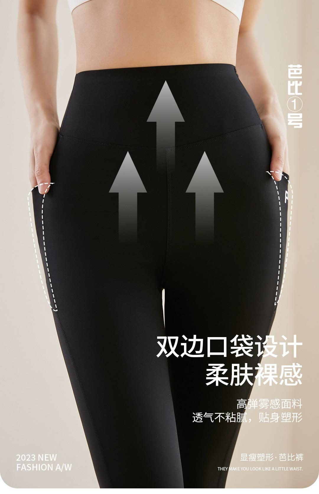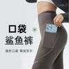 Pantalones de tiburón con doble bolsillo para mujer, primavera y otoño, nuevos pantalones Barbie de cintura alta, ropa exterior para mujer, pantalones de yoga finos deportivos para levantar el abdomen y la cadera.
