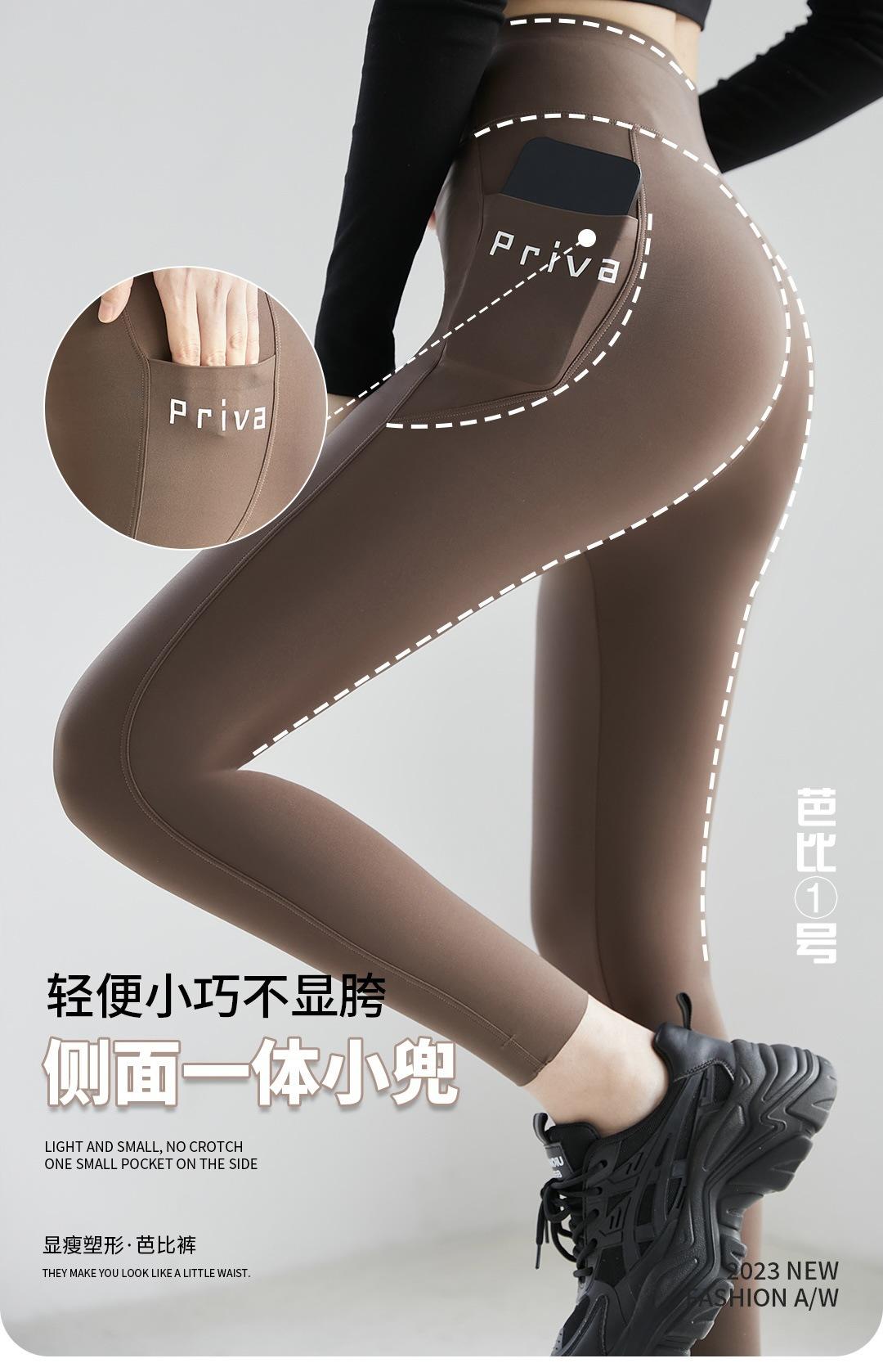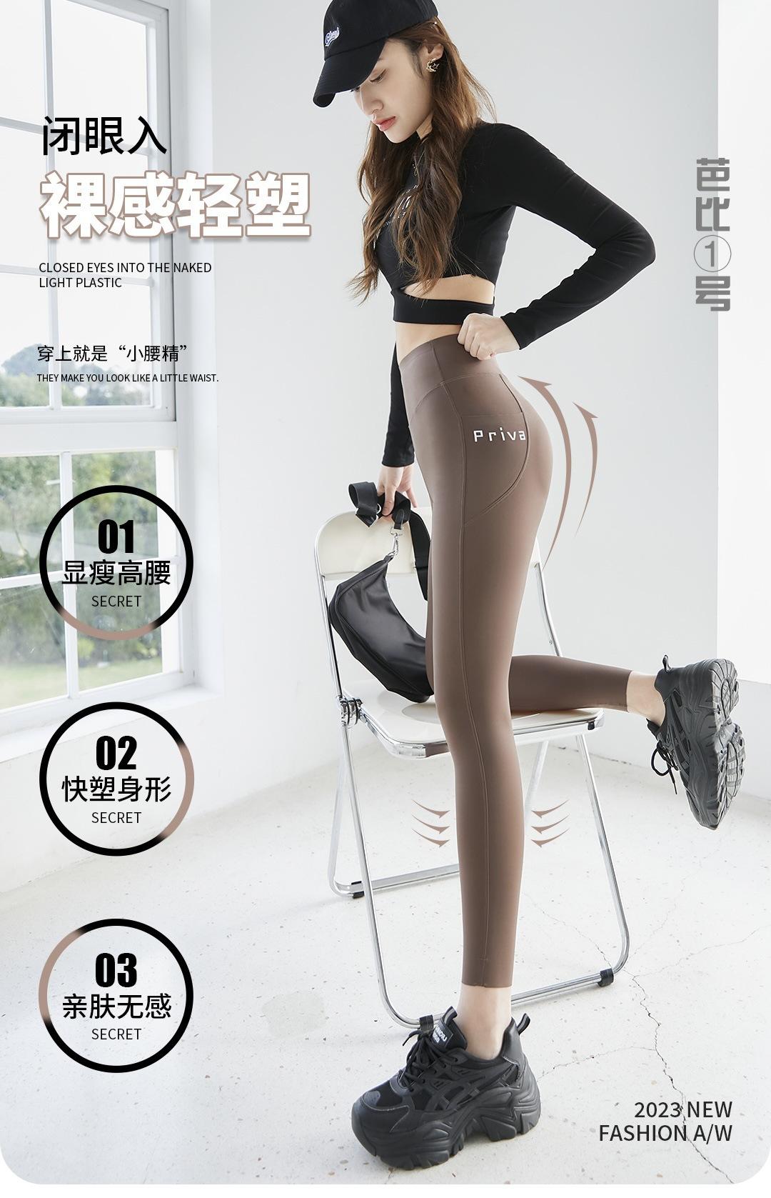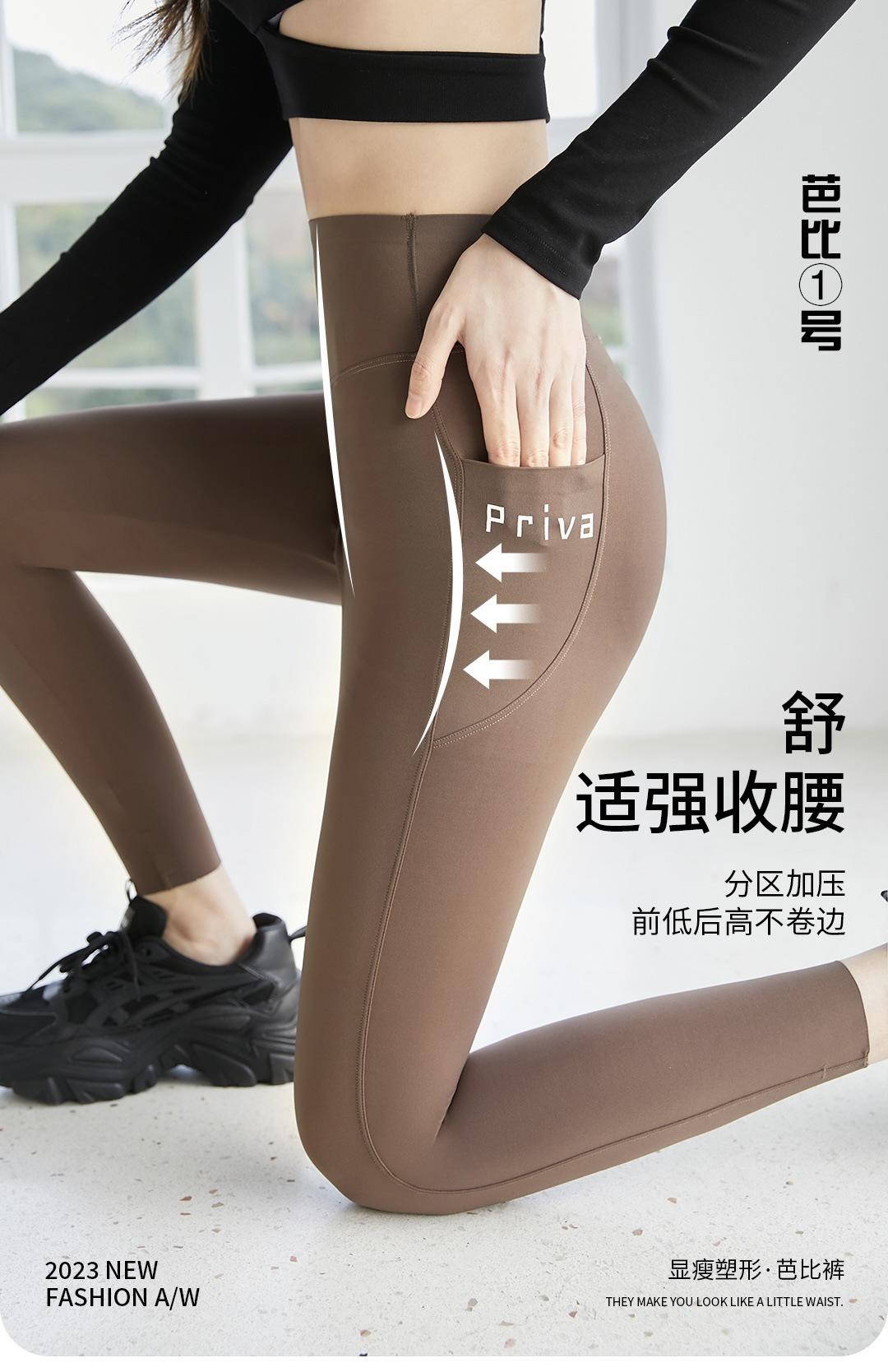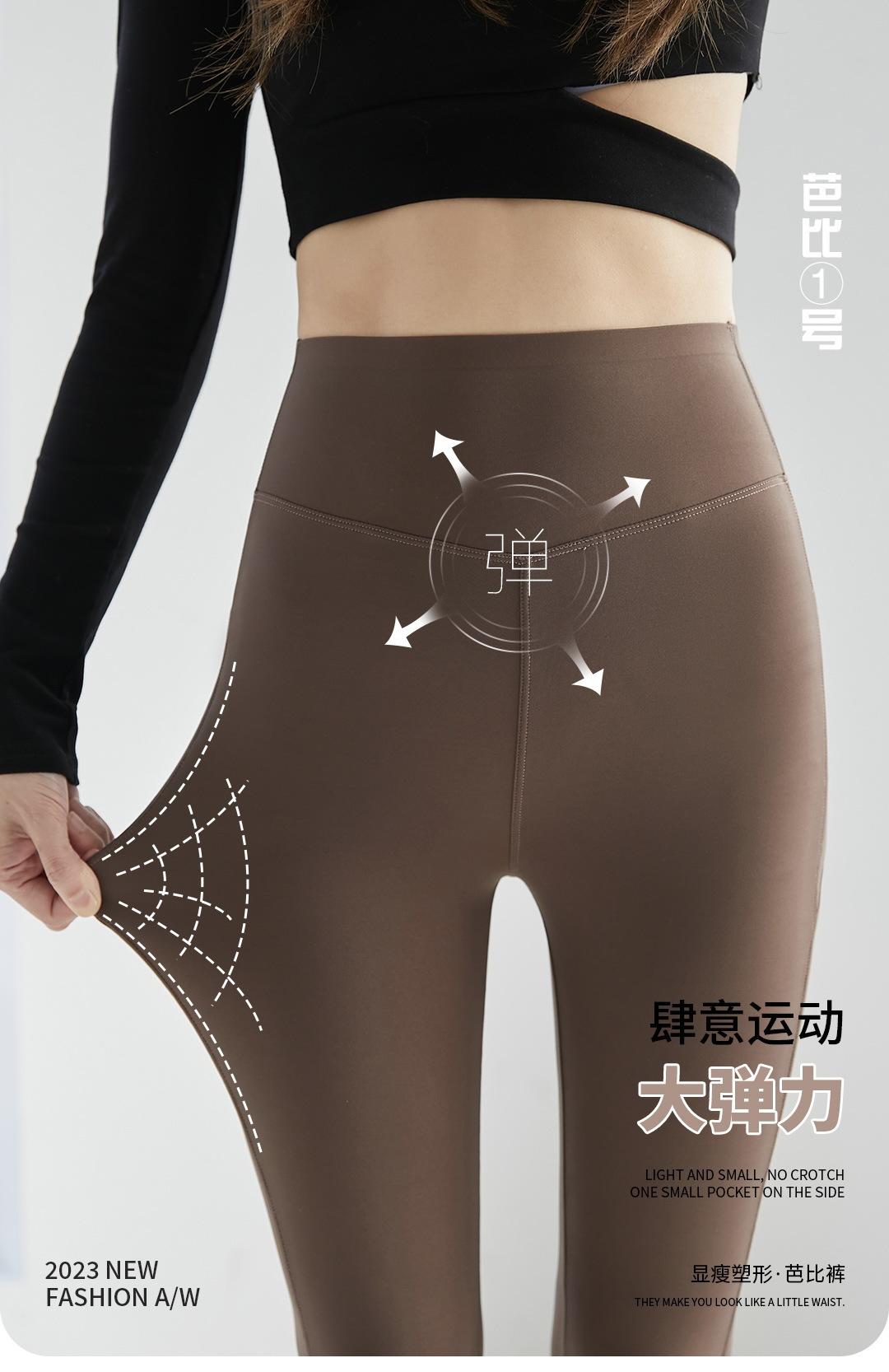 Pantalones de tiburón con doble bolsillo para mujer, primavera y otoño, nuevos pantalones Barbie de cintura alta, ropa exterior para mujer, pantalones de yoga finos deportivos para levantar el abdomen y la cadera.