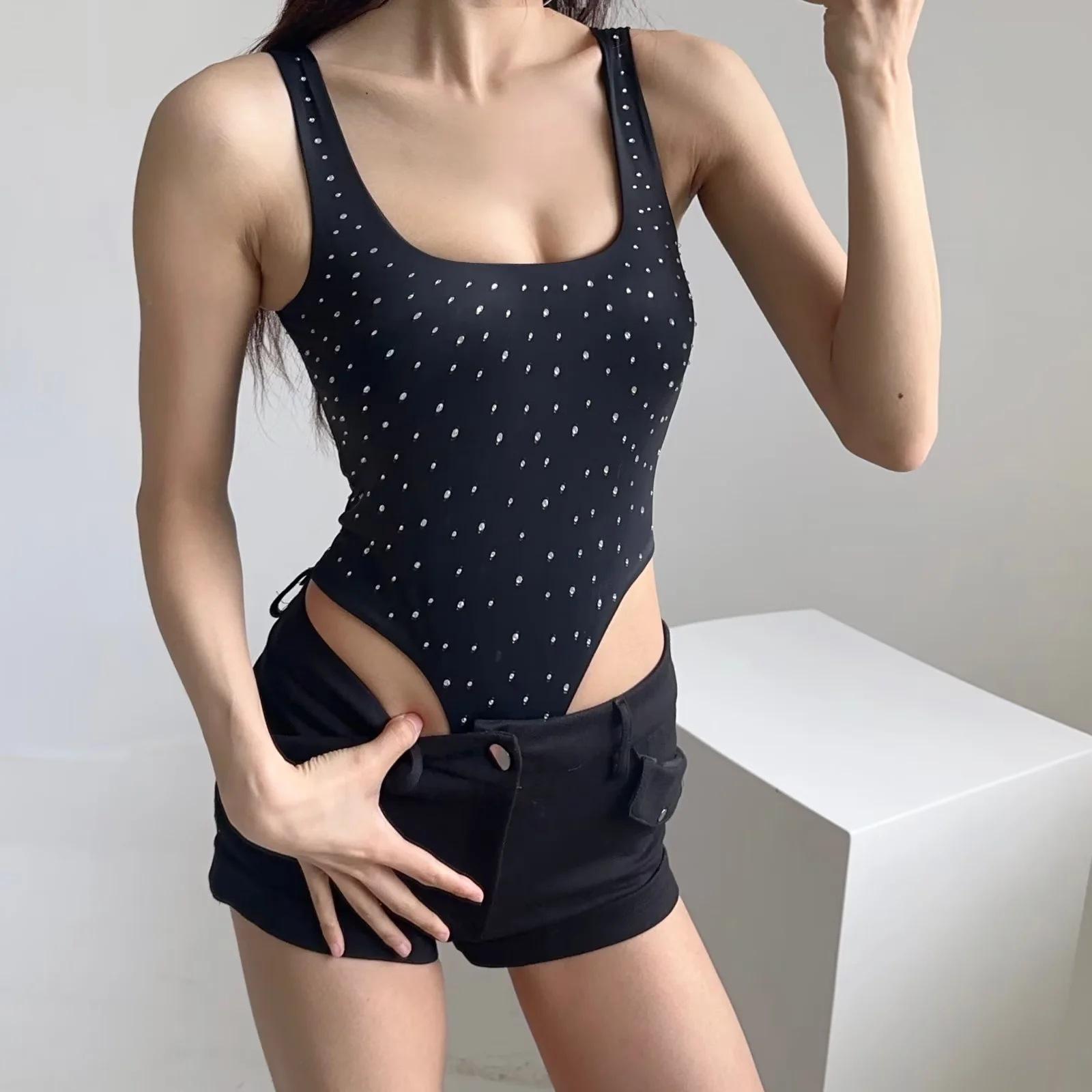 Ropa de Mujer Estilo Europeo y Americano Exportación Nuevo Americano Guapo Sexy Doble Capa Diamantes Calientes Ajustado Look Adelgazante Camisola Mono