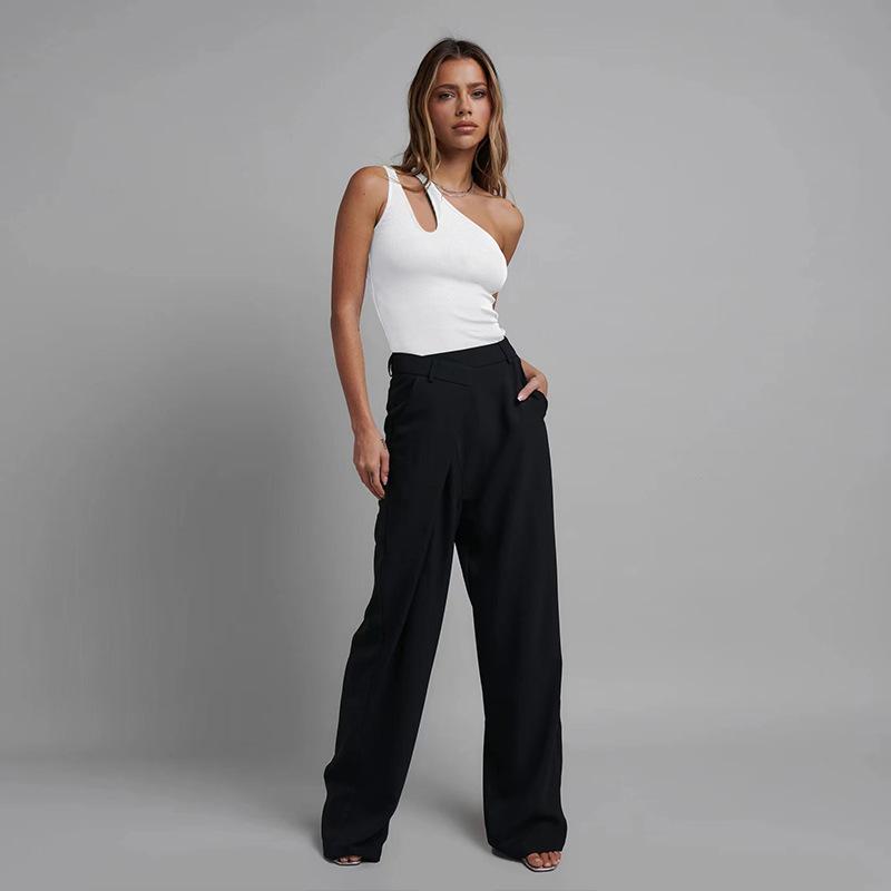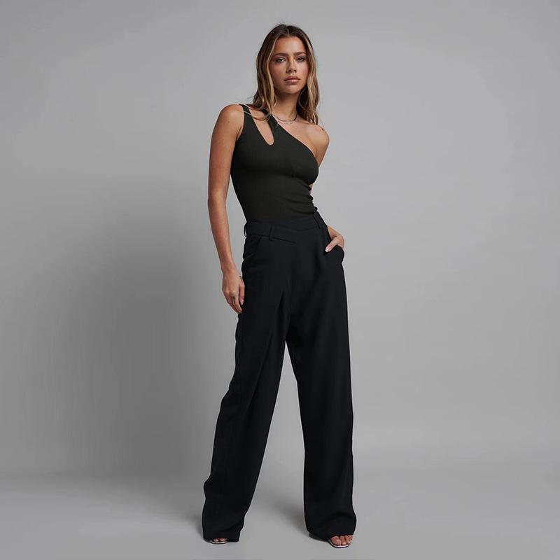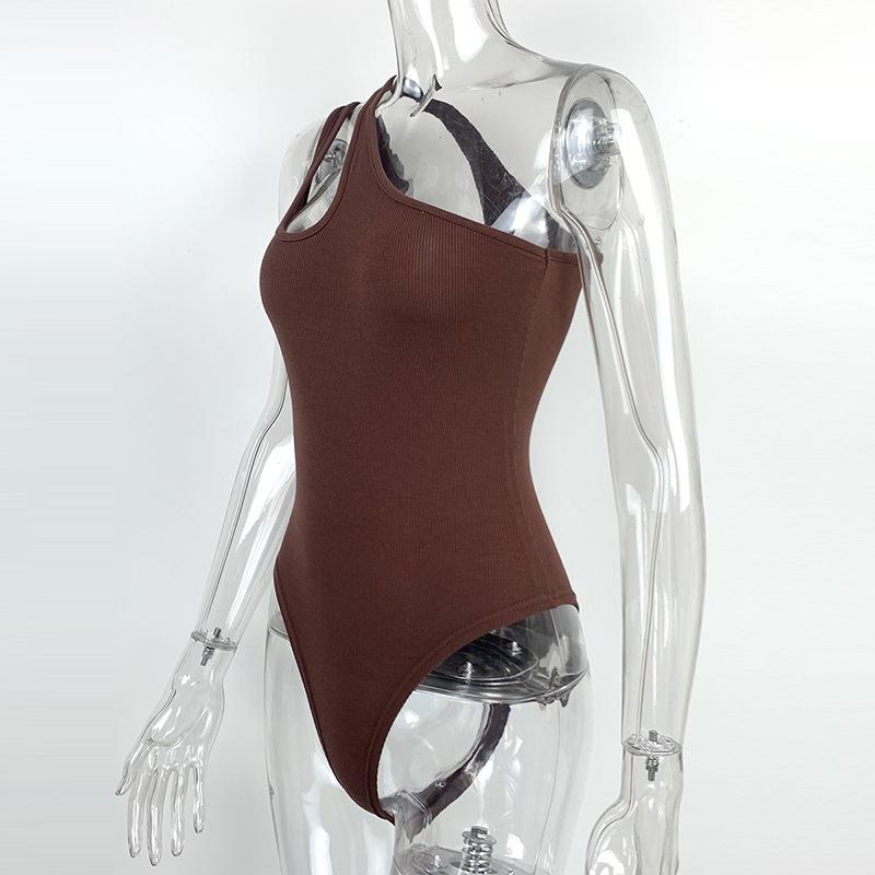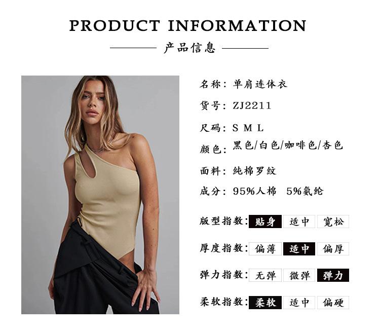 Mono ajustado de algodón con un solo hombro y aberturas para mujer, moda europea y americana de verano 2023