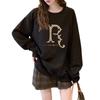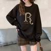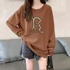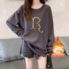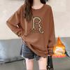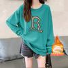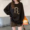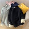 Suéter con capucha y cuello redondo estilo perezoso de estilo coreano para mujer, suéter de manga larga holgado y grueso con forro polar para otoño e invierno
