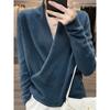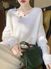 2025 Otoño e Invierno Nuevo Retro Holgado Color Sólido Cuello en V Suéter de Lana para Mujer Punto Base Suéter de Cachemira Tejido