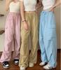Ropa Europea y Americana de Principios de Primavera Color Puro Cintura Alta Cordón Ajustable Suelto Casual Moda Pantalones Rectos K1199
