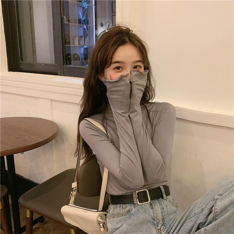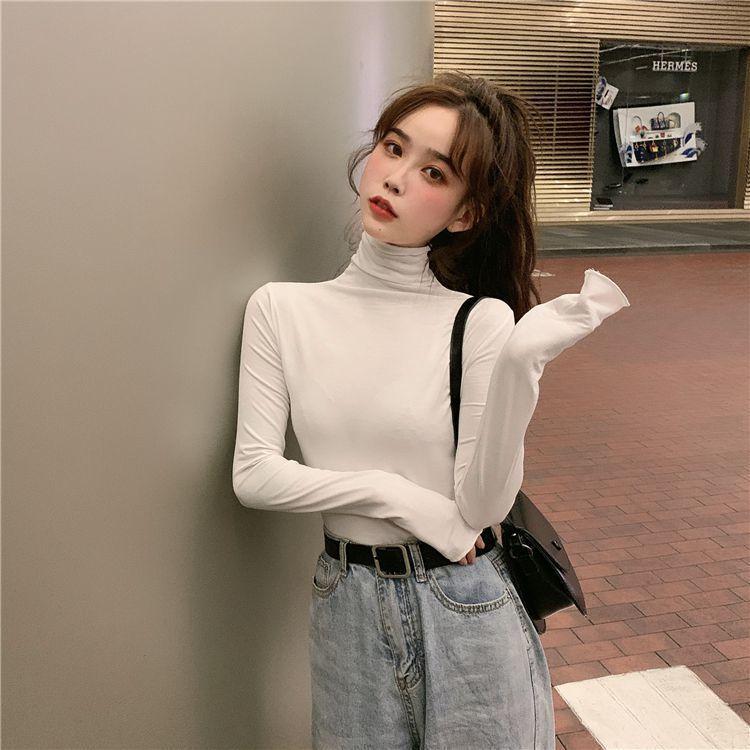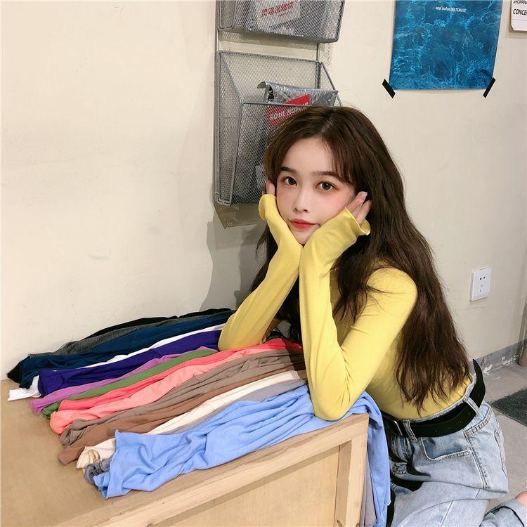 Camiseta Básica para Mujer Otoño e Invierno 2024 Nuevo Estilo Coreano Slim Color Puro Versátil Top Chica Moda Interior Camiseta de Manga Larga