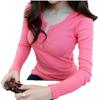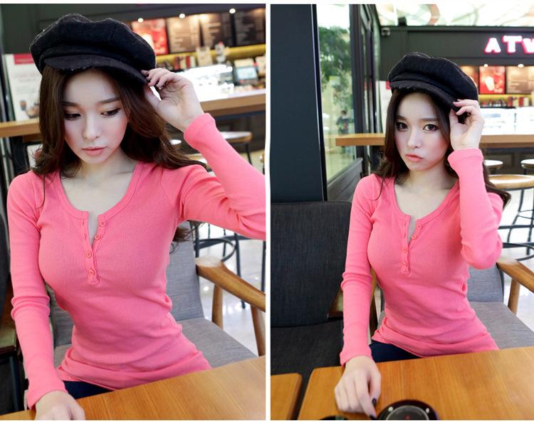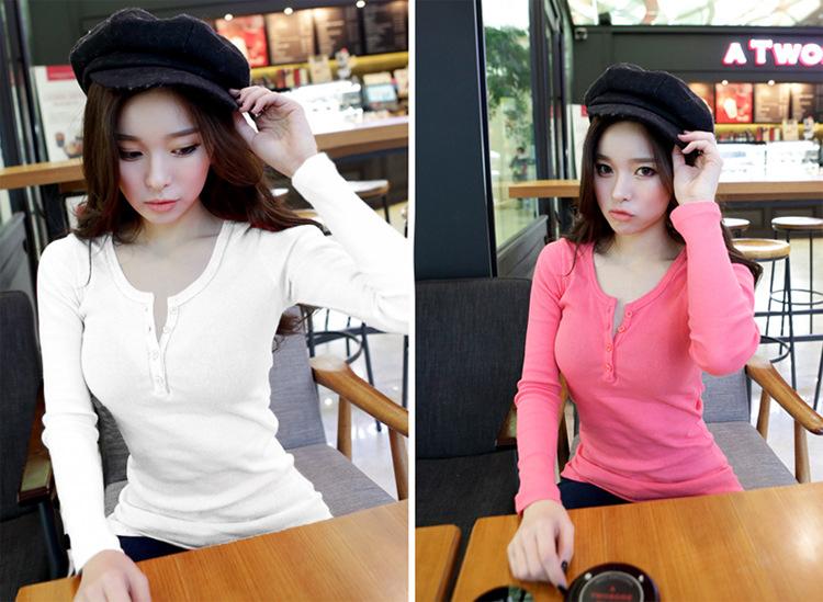 Camiseta de manga larga de color liso con botones y hilo de otoño 2021 para mujer, estilo coreano ajustado, nueva camisa básica, ropa exterior de moda