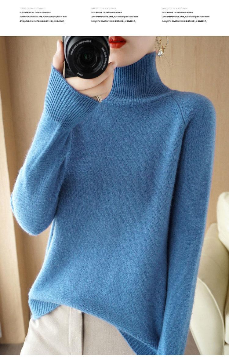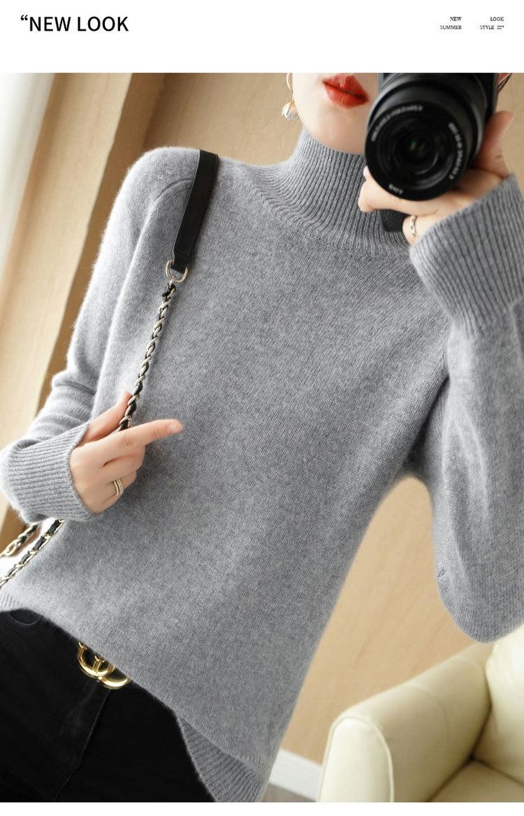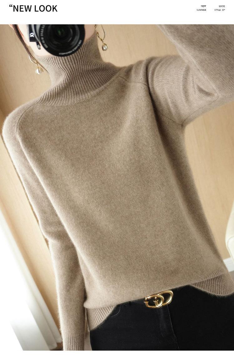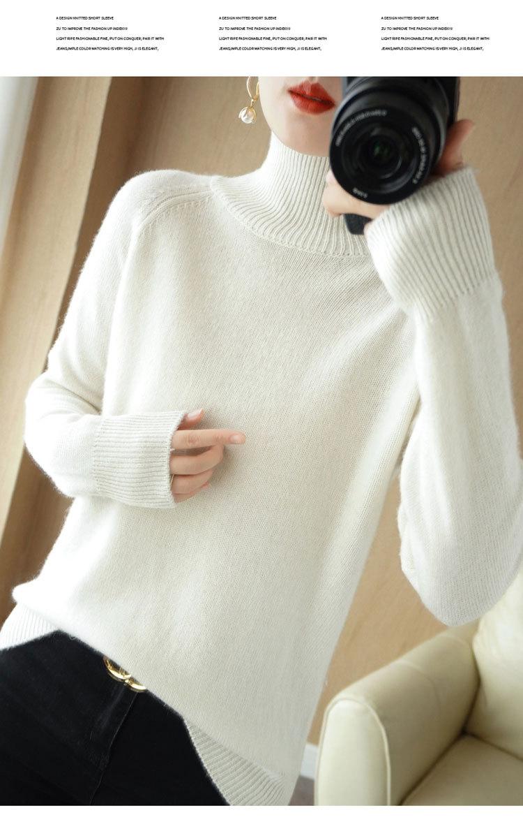 Suéter de cuello alto TikTok para mujer, camisa de punto de talla grande, suelta, estilo coreano, color sólido, otoño e invierno, nuevo