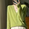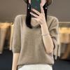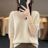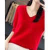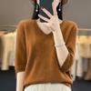 Ropa de primera línea lana pura 2023 otoño e invierno nuevo suéter suéter suelto de manga corta media manga con cuello en V para mujer