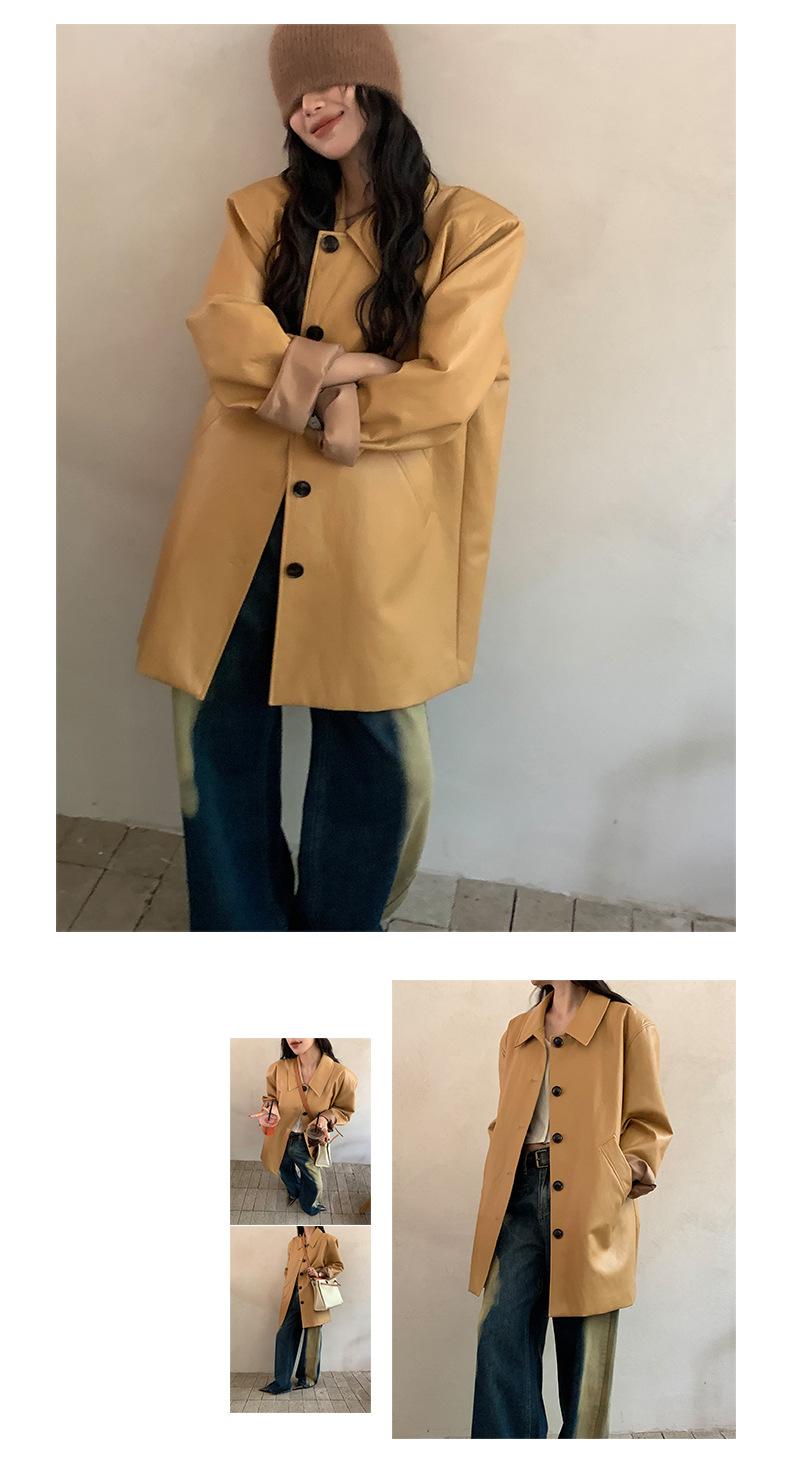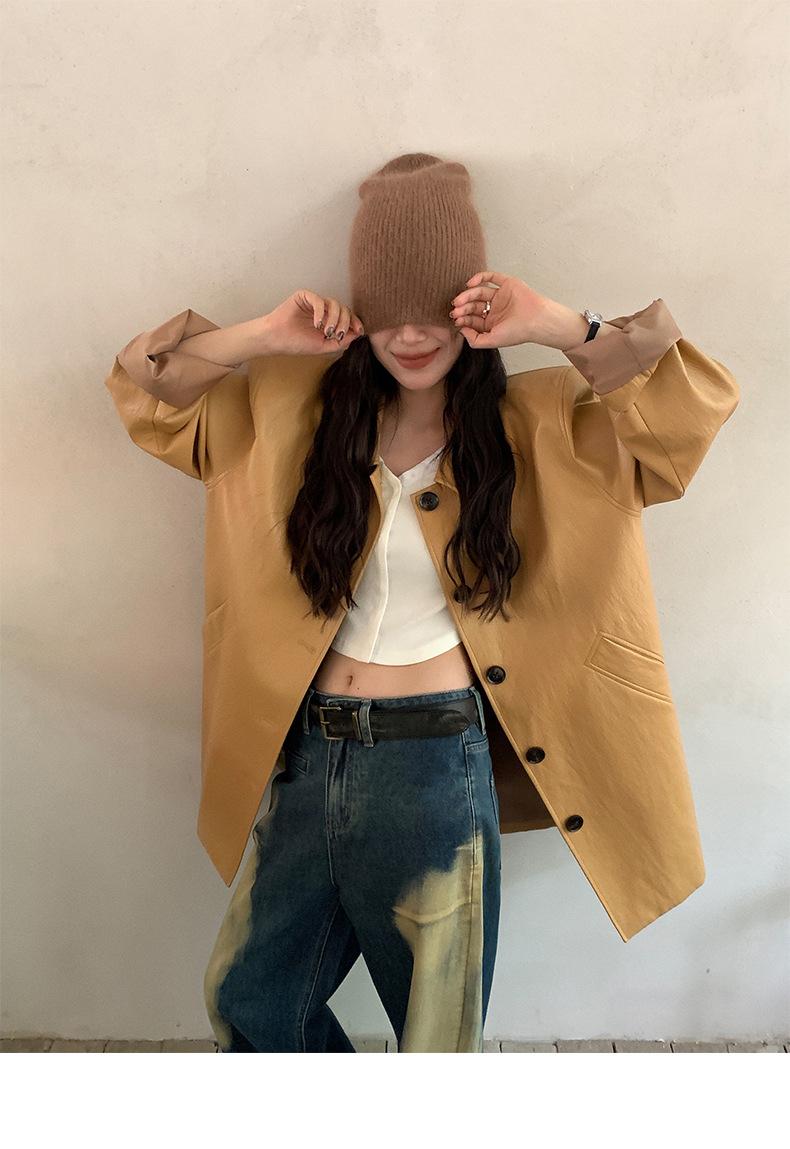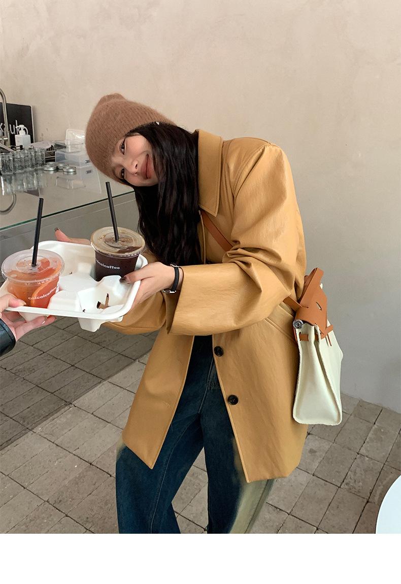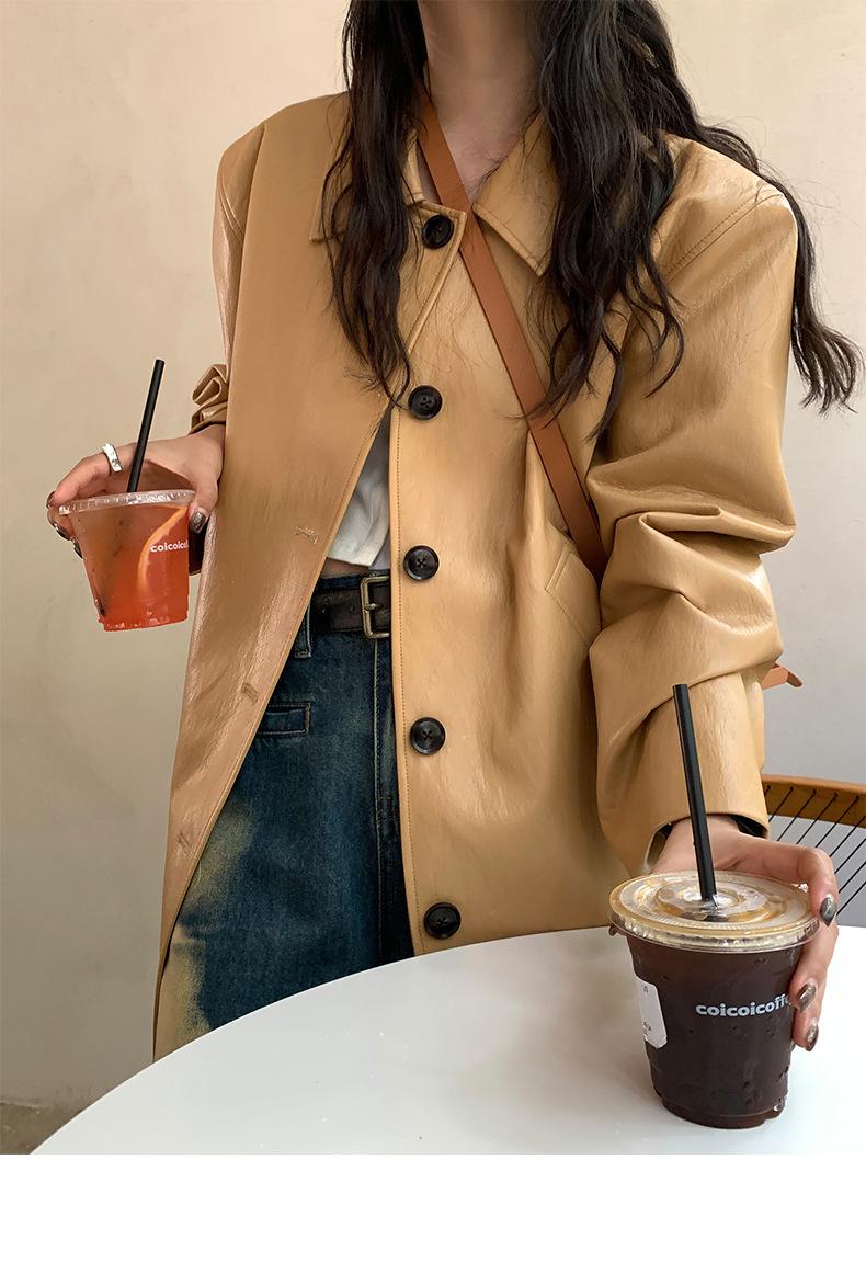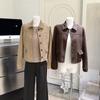 Dream DT ETOLIE abrigo de piel Maillard retro de solapa a la moda de primavera para mujer, top suelto de longitud media