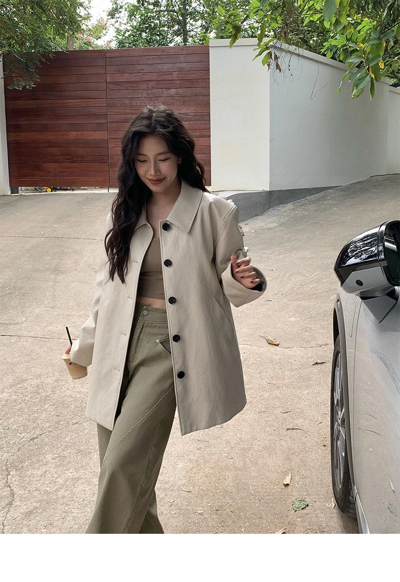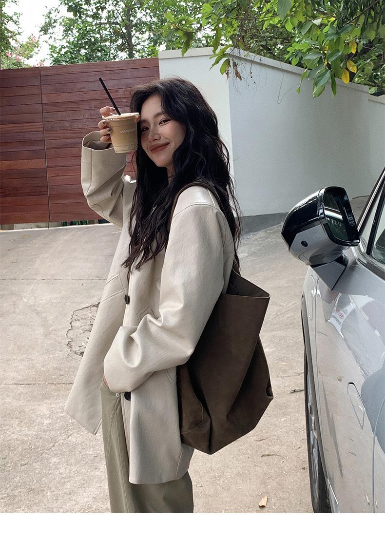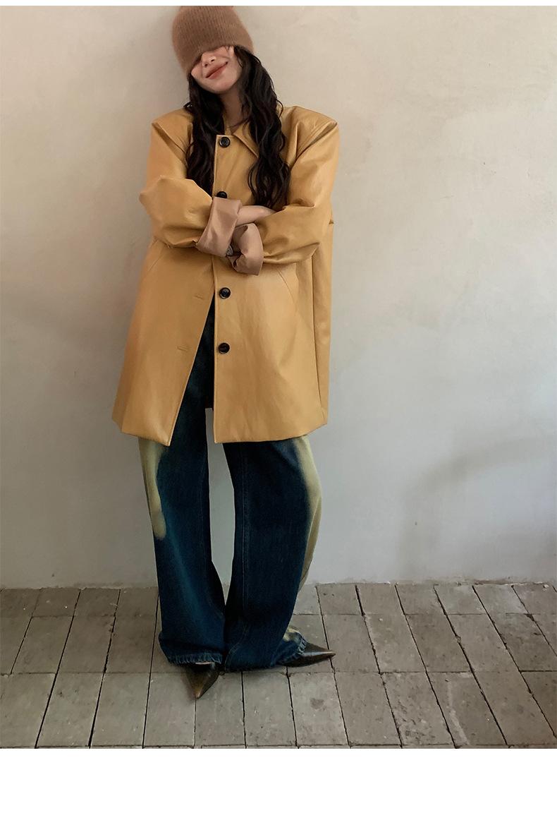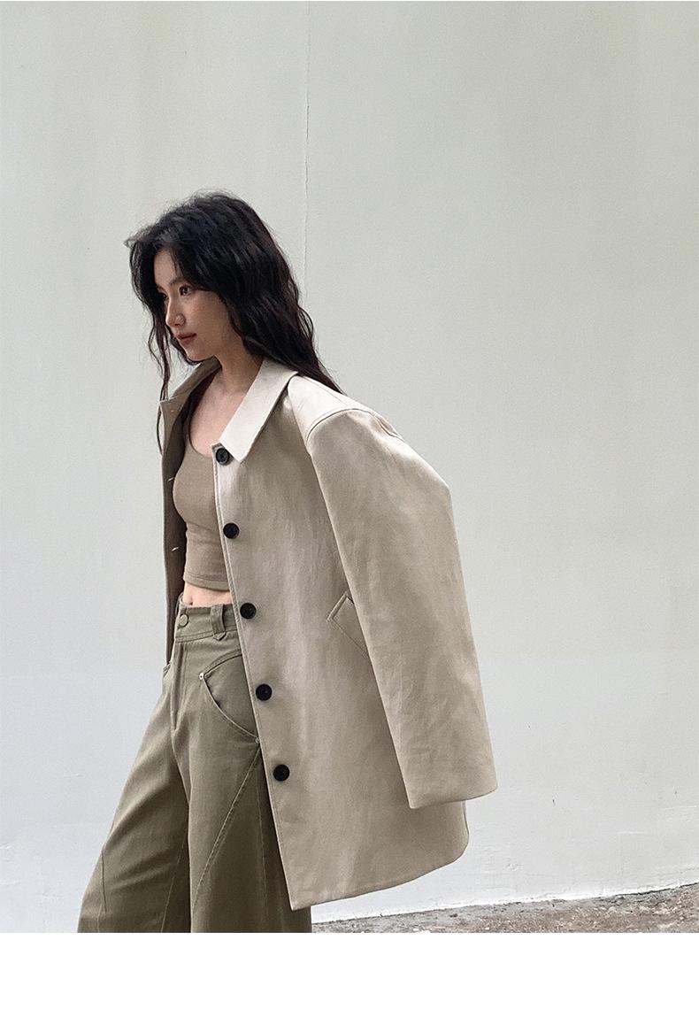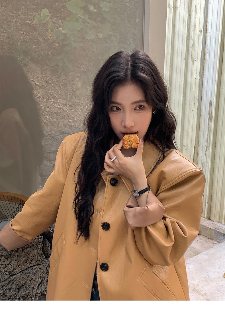 Dream DT ETOLIE abrigo de piel Maillard retro de solapa a la moda de primavera para mujer, top suelto de longitud media