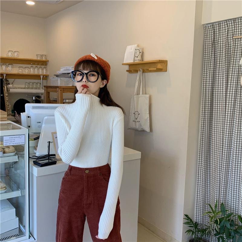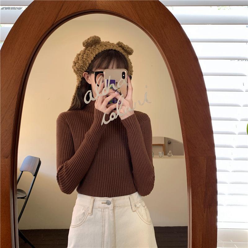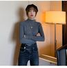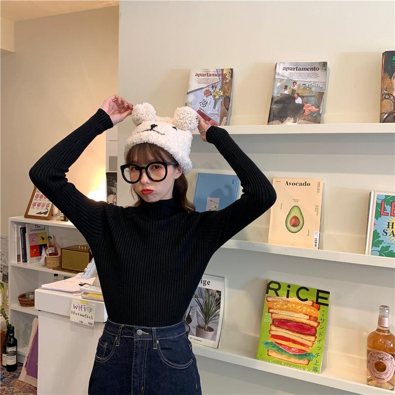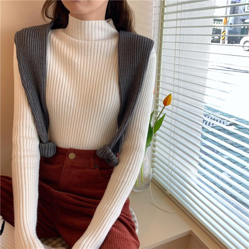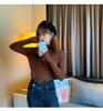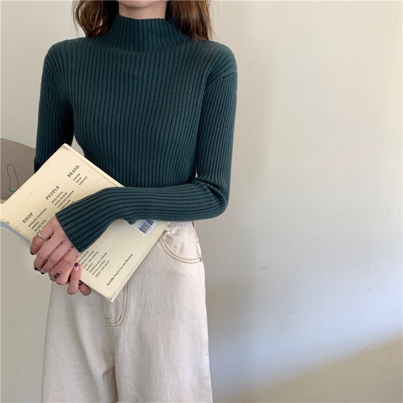 Suéter interior de manga larga ajustado y grueso para mujer, estilo coreano, cuello medio alto, negro, combinable, para otoño e invierno