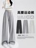 Pantalones deportivos rectos de cintura alta con cordón de estilo europeo y americano para mujer, versátiles, casuales, adelgazantes, de pierna ancha, frescos para otoño e invierno, pantalones de chándal para trapear