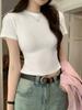 Camiseta de manga corta gris con cuello redondo y hombros descubiertos de Pure Spice Girl, camisa básica para mujer, nueva camiseta ajustada de verano 2024.