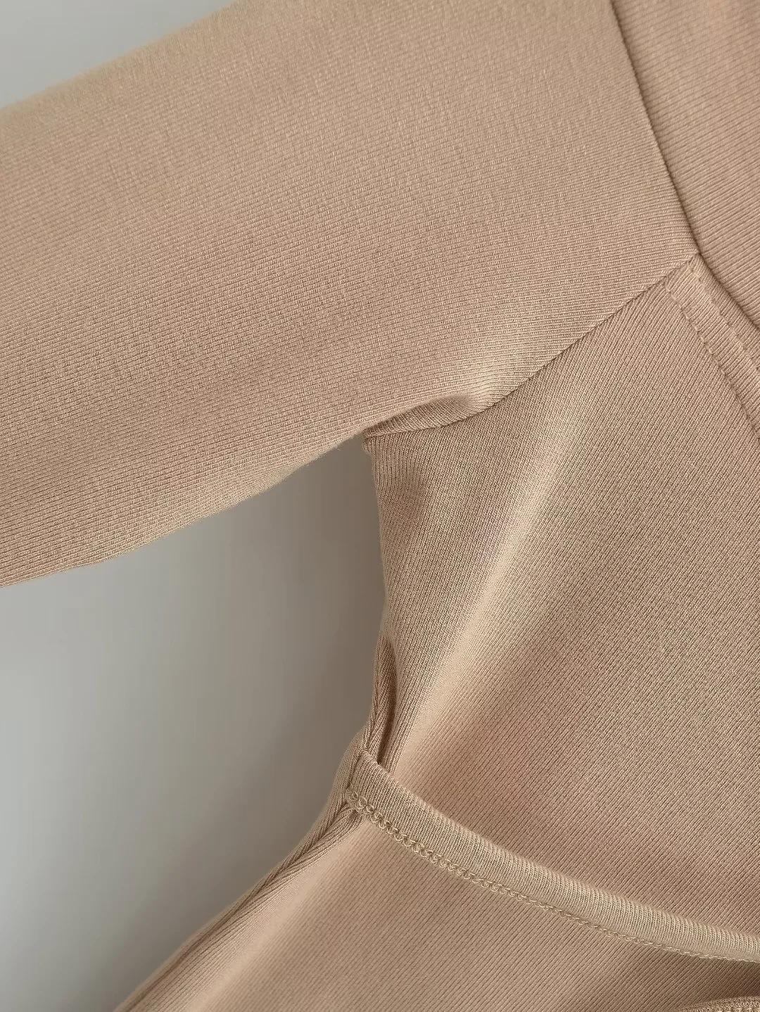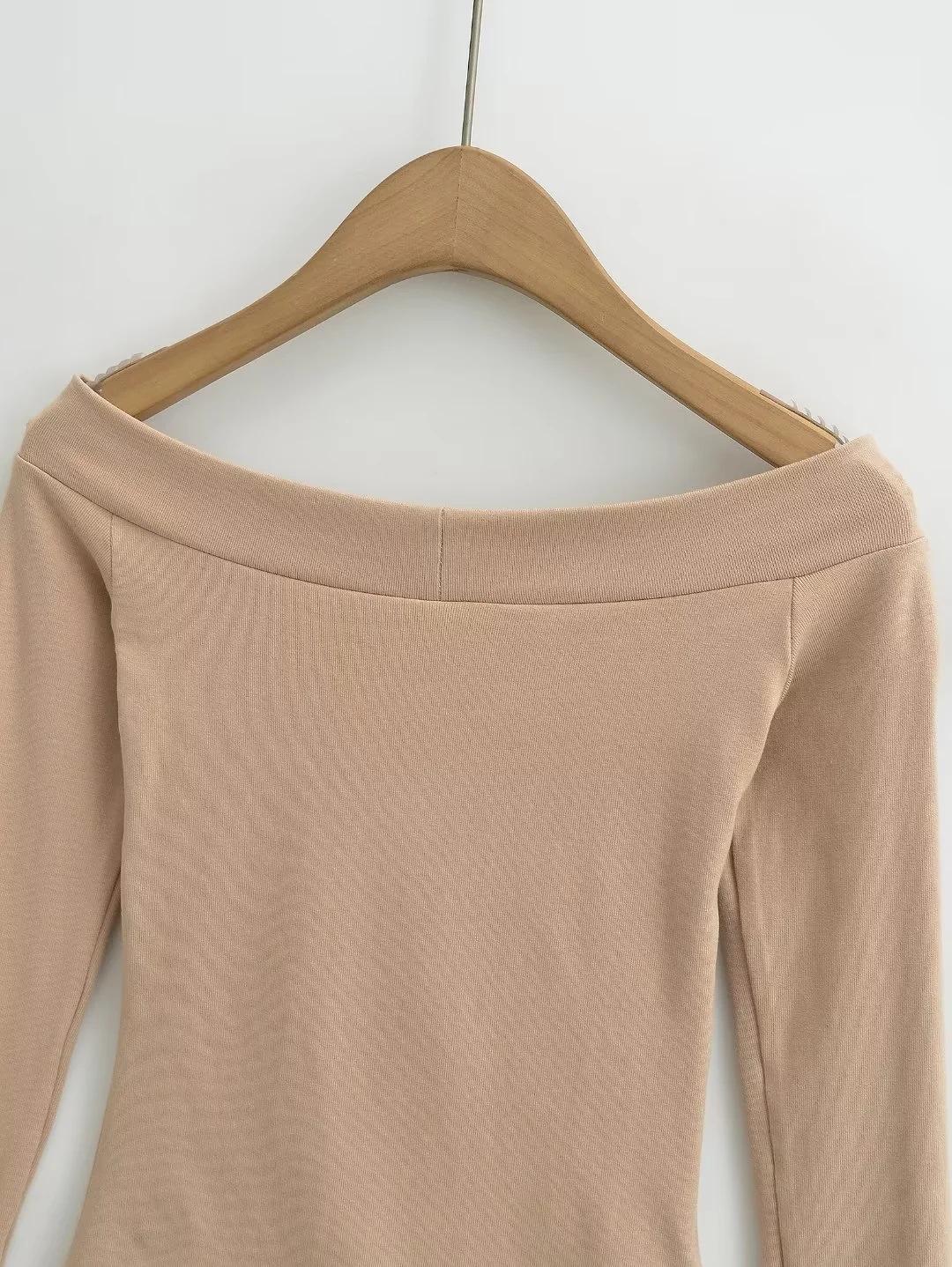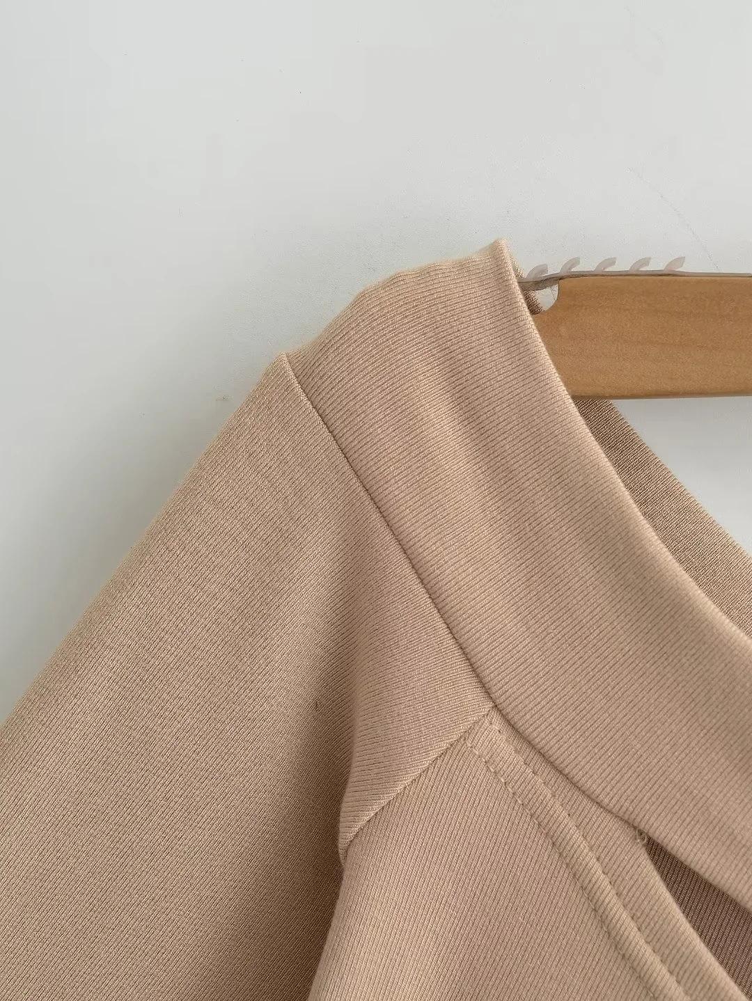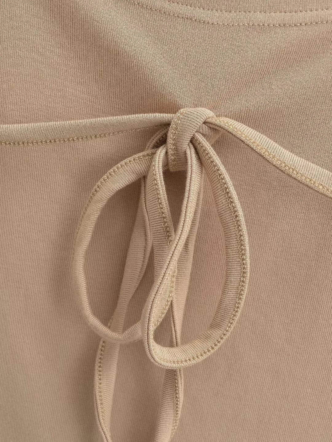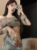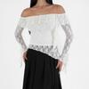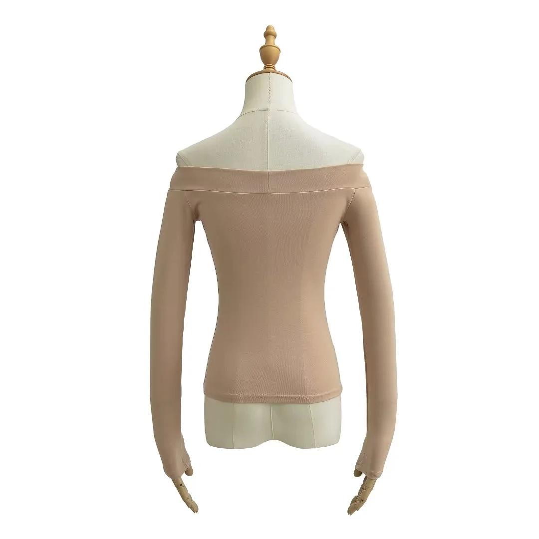 Camiseta corta hueca con lazo en el pecho y cordones, estilo americano, sexy, de manga larga y hombros descubiertos, estilo suave, para mujer
