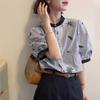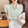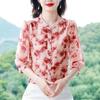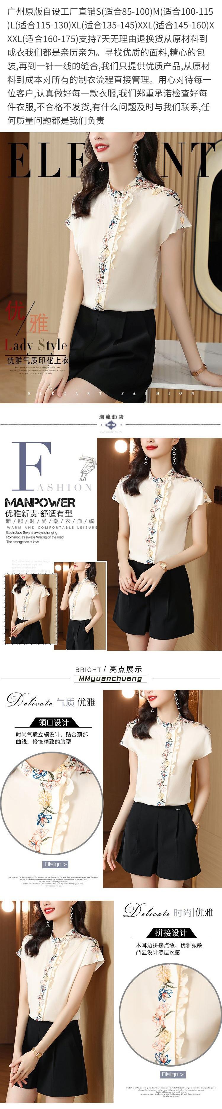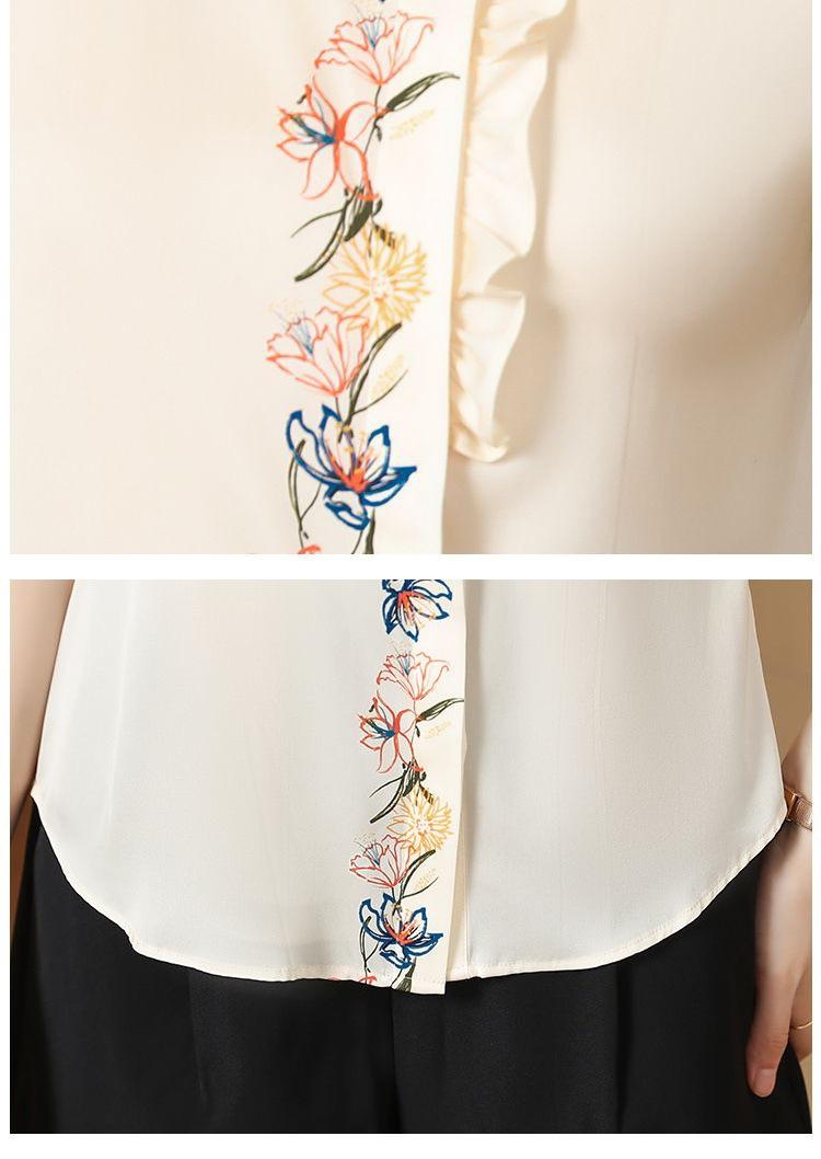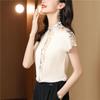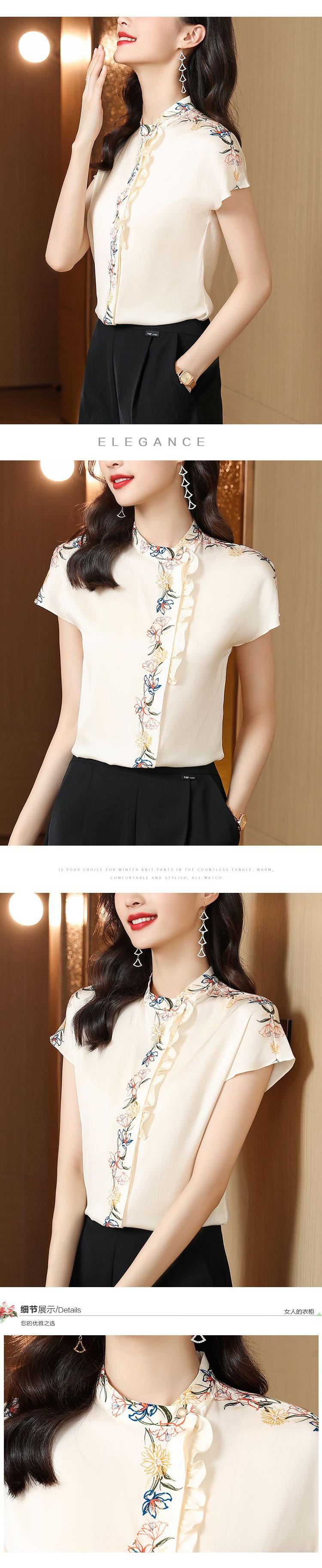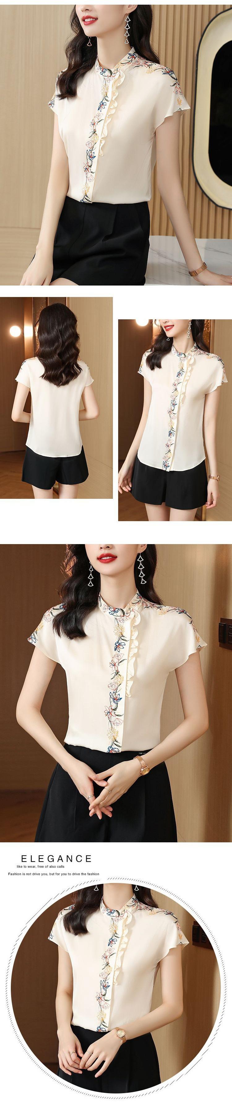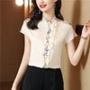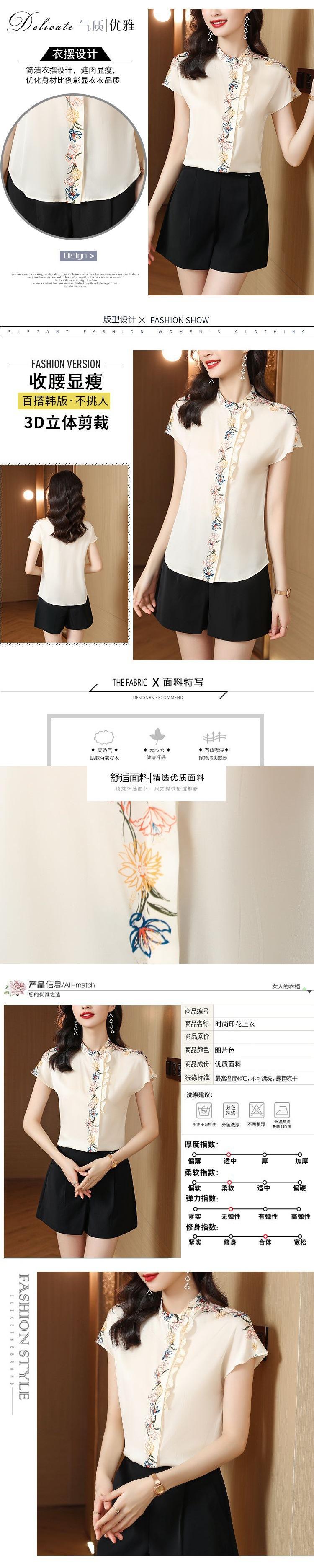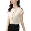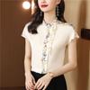 Camisa blanca albaricoque para mujer, nueva moda de verano, retro, elegante, estampada, de manga corta, sencilla, de seda sintética.