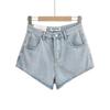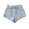 Pantalones cortos de mezclilla de tiro alto adelgazantes línea A para mujer 2023 nuevos retro lavados elásticos pierna ancha sexis
