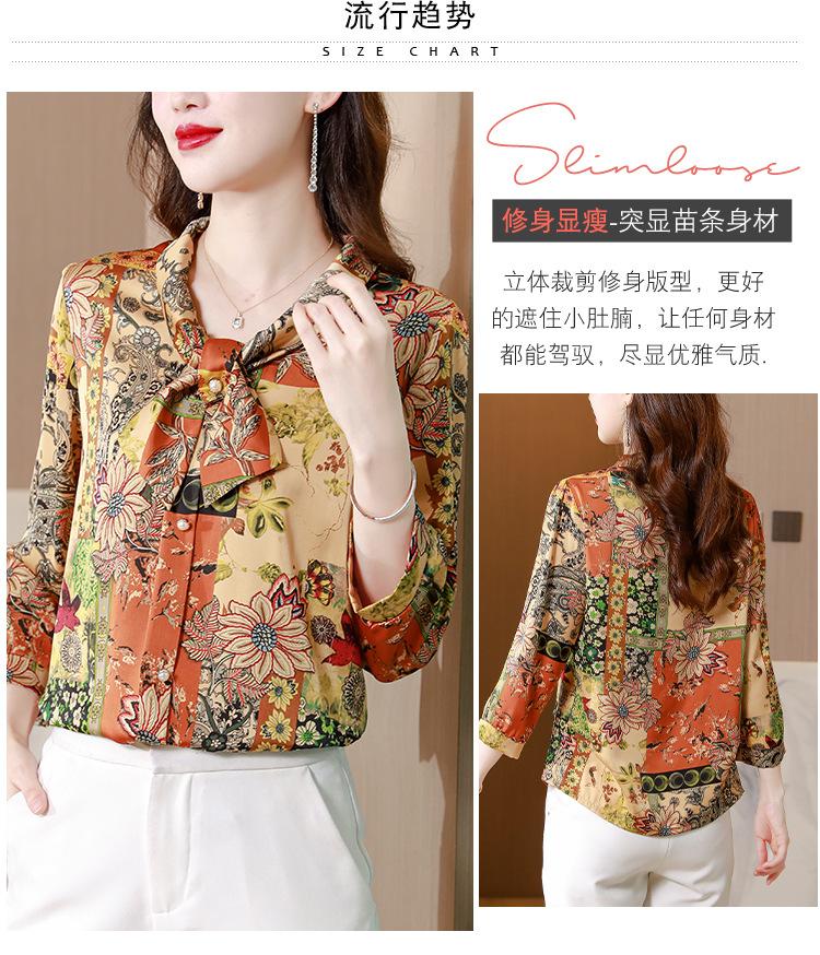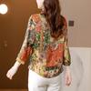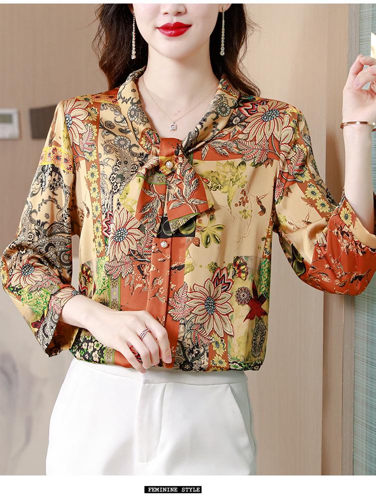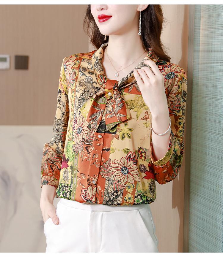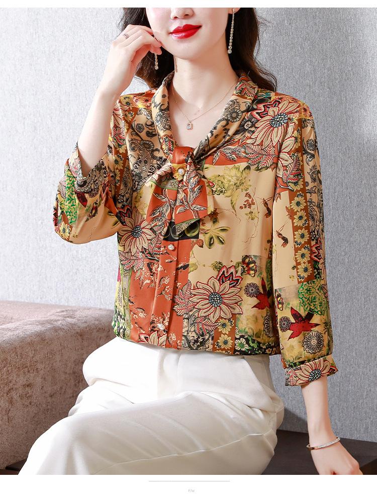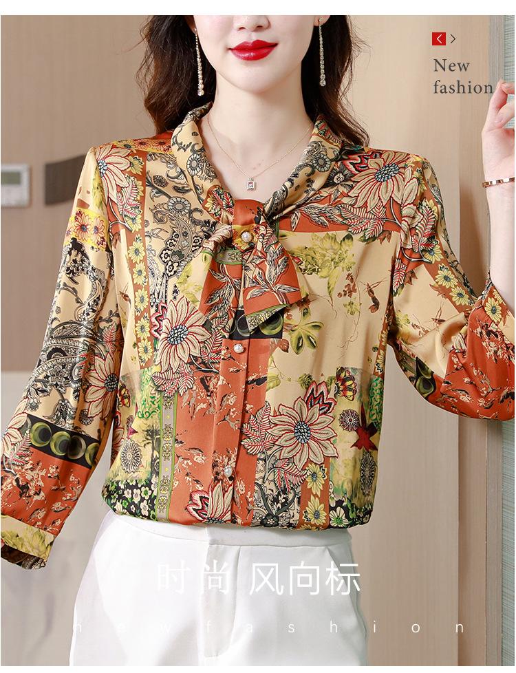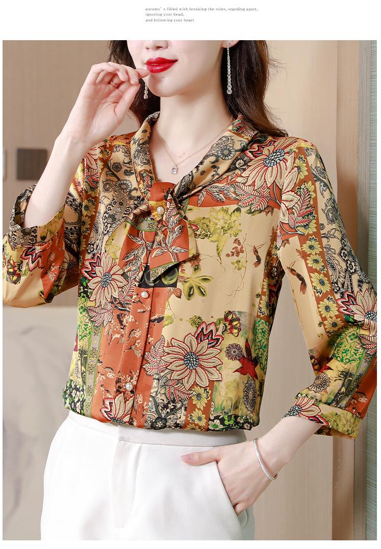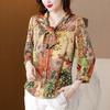 Camisa de gasa satinada para mujer, nueva moda de verano 2023, estilo retro, holgada, adelgazante, con lazo y cordones.