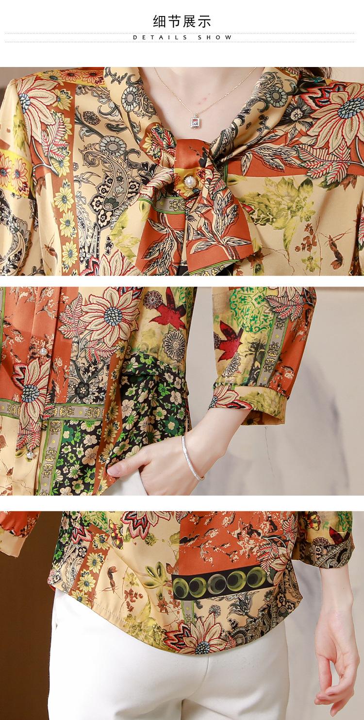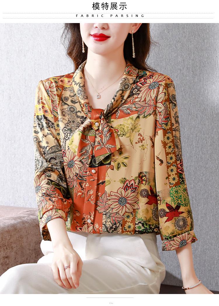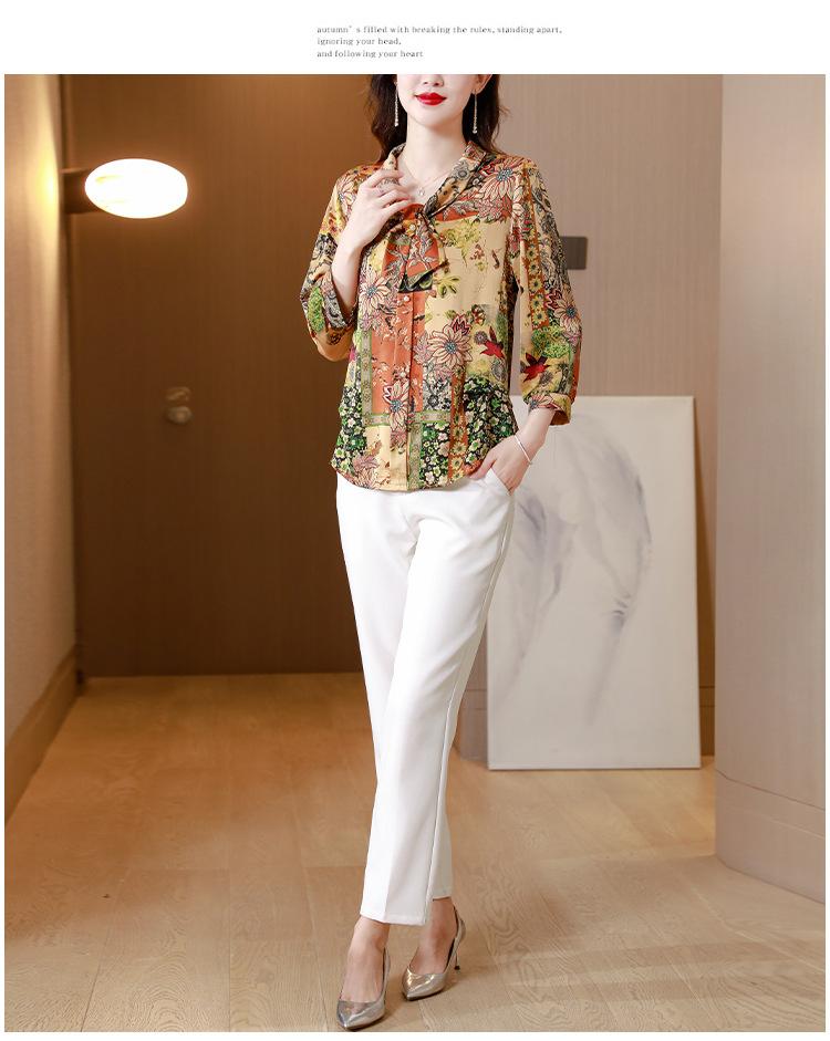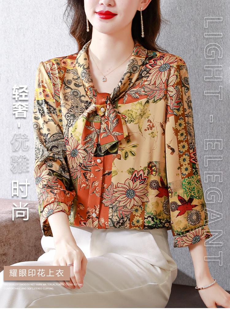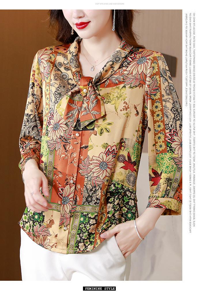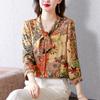 Camisa de gasa satinada para mujer, nueva moda de verano 2023, estilo retro, holgada, adelgazante, con lazo y cordones.