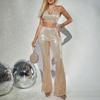 Conjunto de dos piezas de pantalones ajustados con lentejuelas y chaleco halter sexy de moda europea y americana para mujer de Amazon Verano