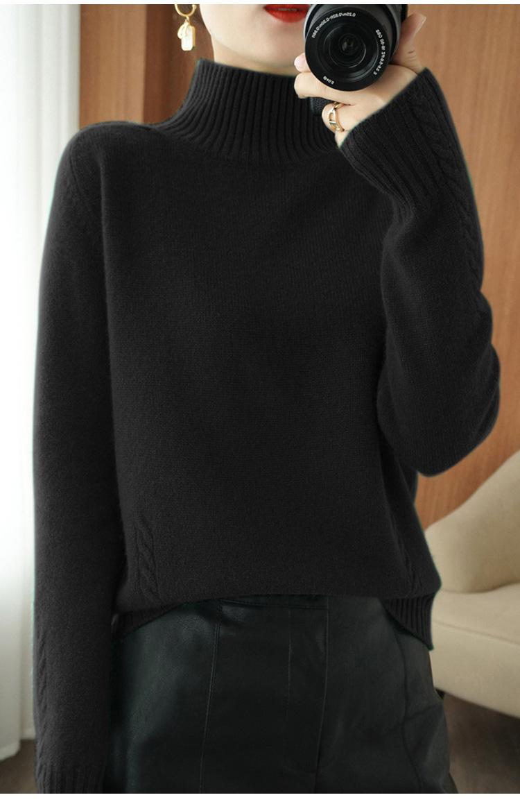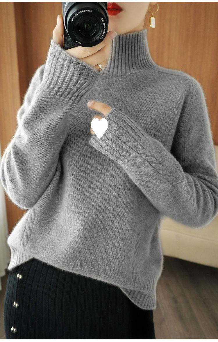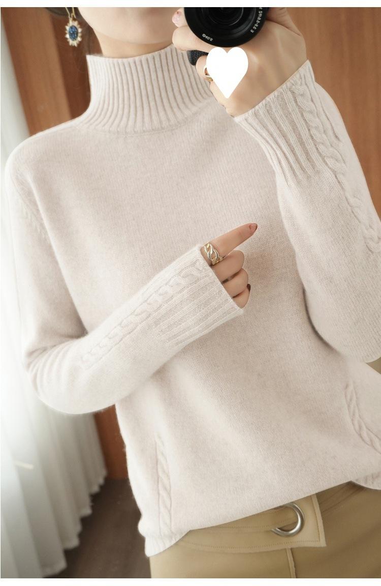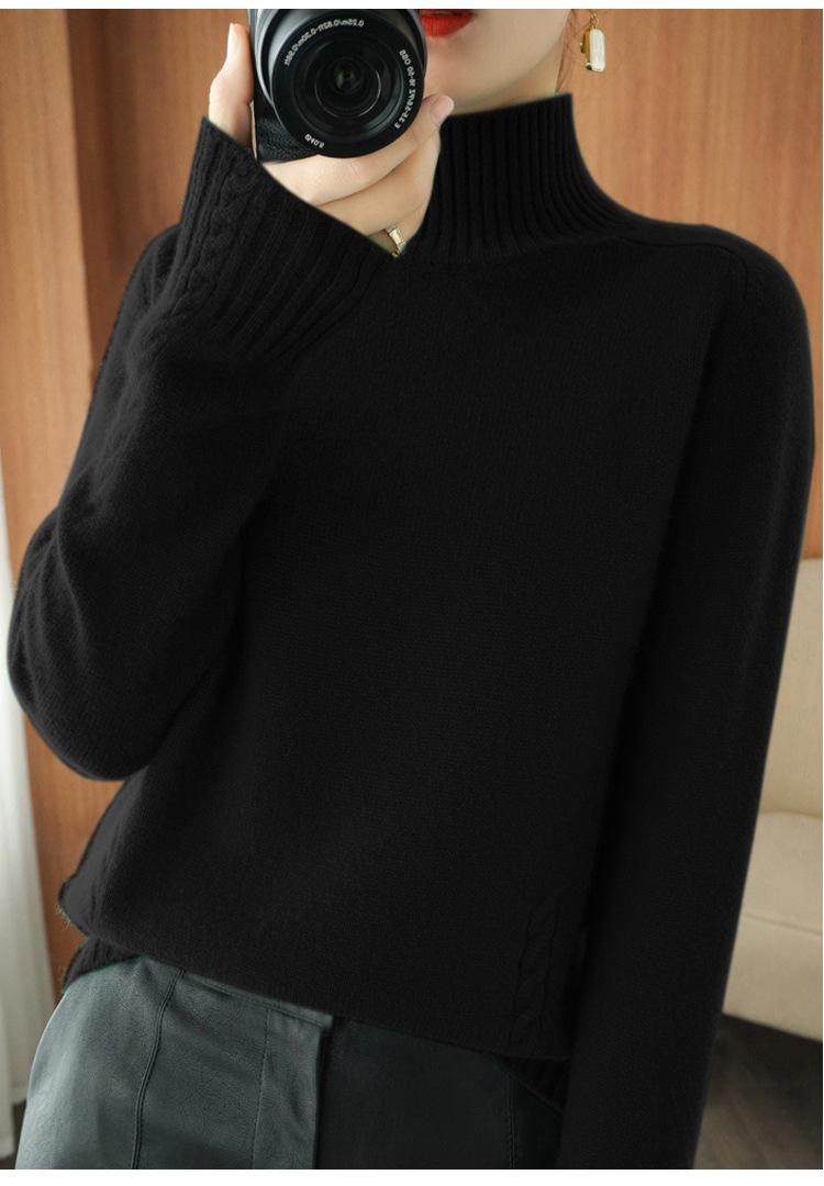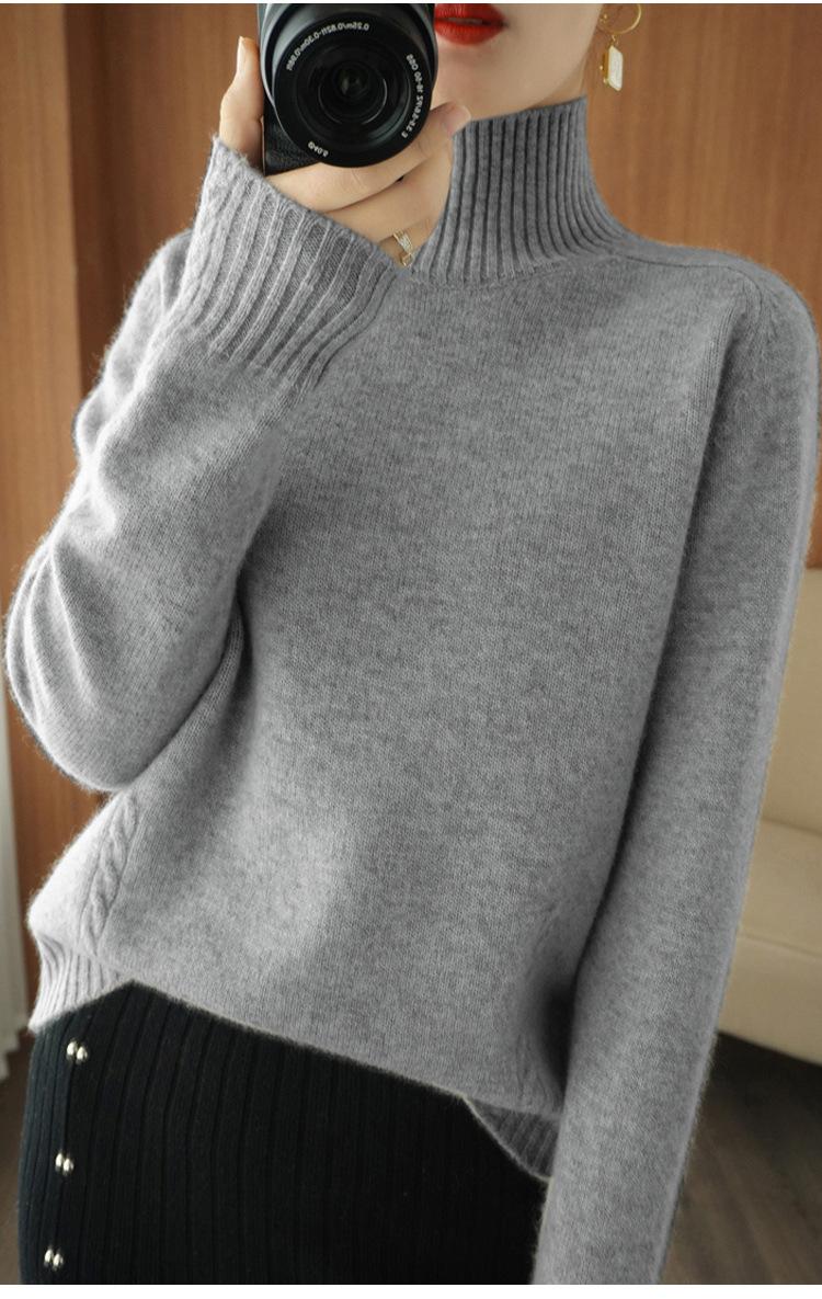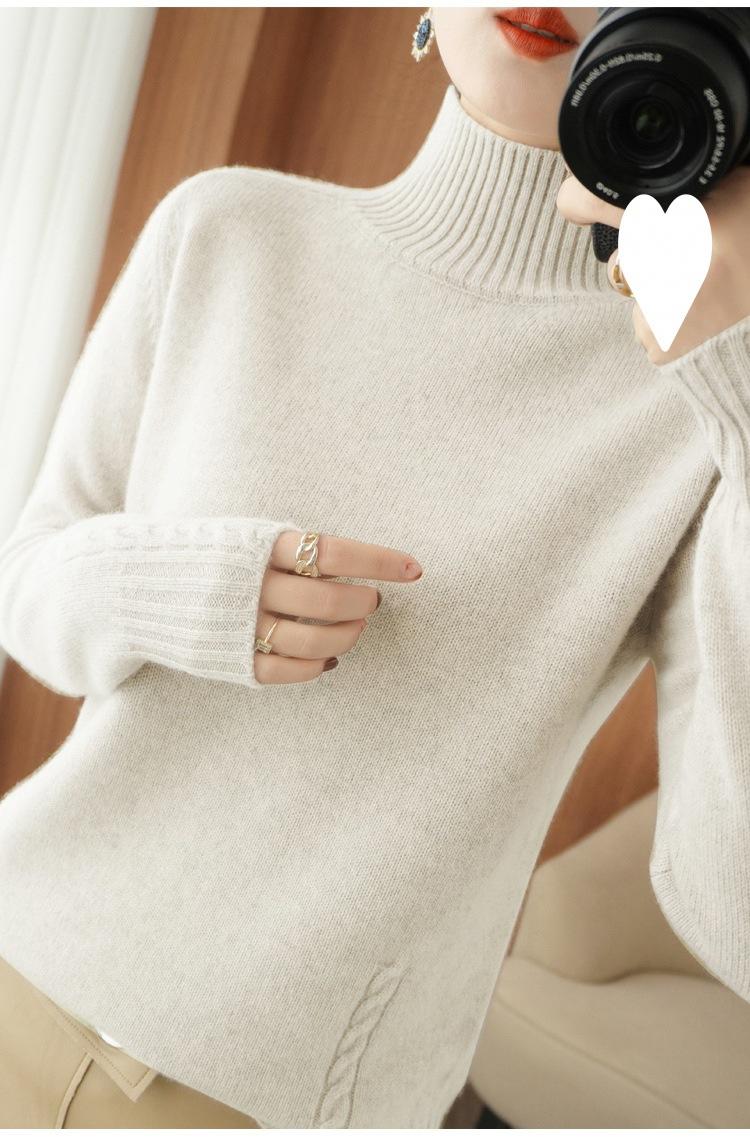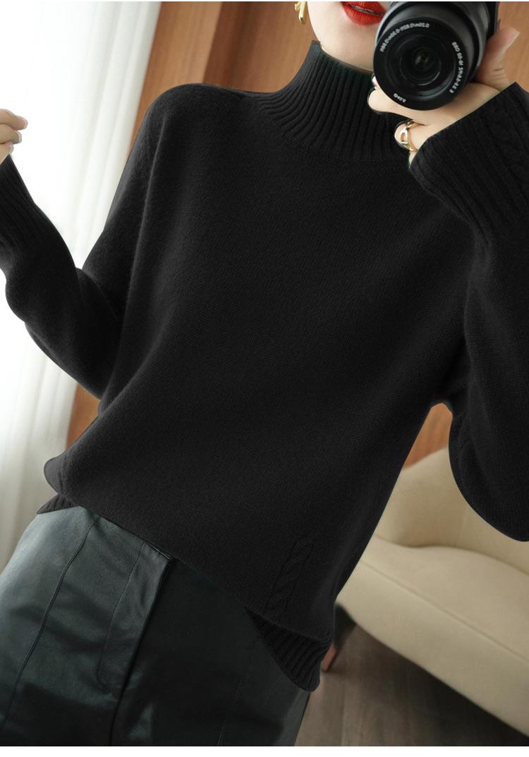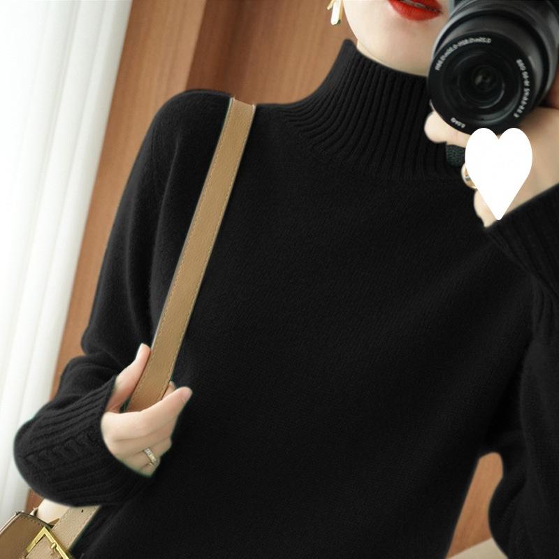 Suéter de punto de cuello alto medio para mujer, suéter de lana elegante de color sólido, camisa de base de punto grueso, otoño e invierno, nuevo