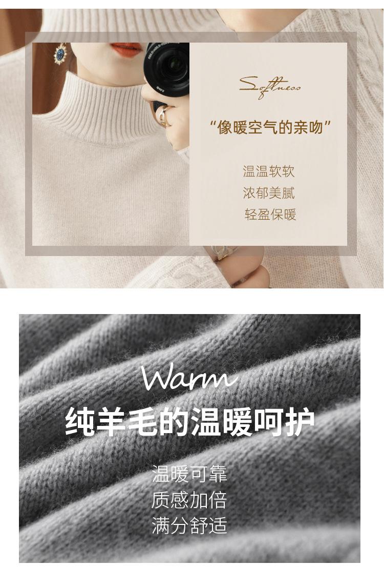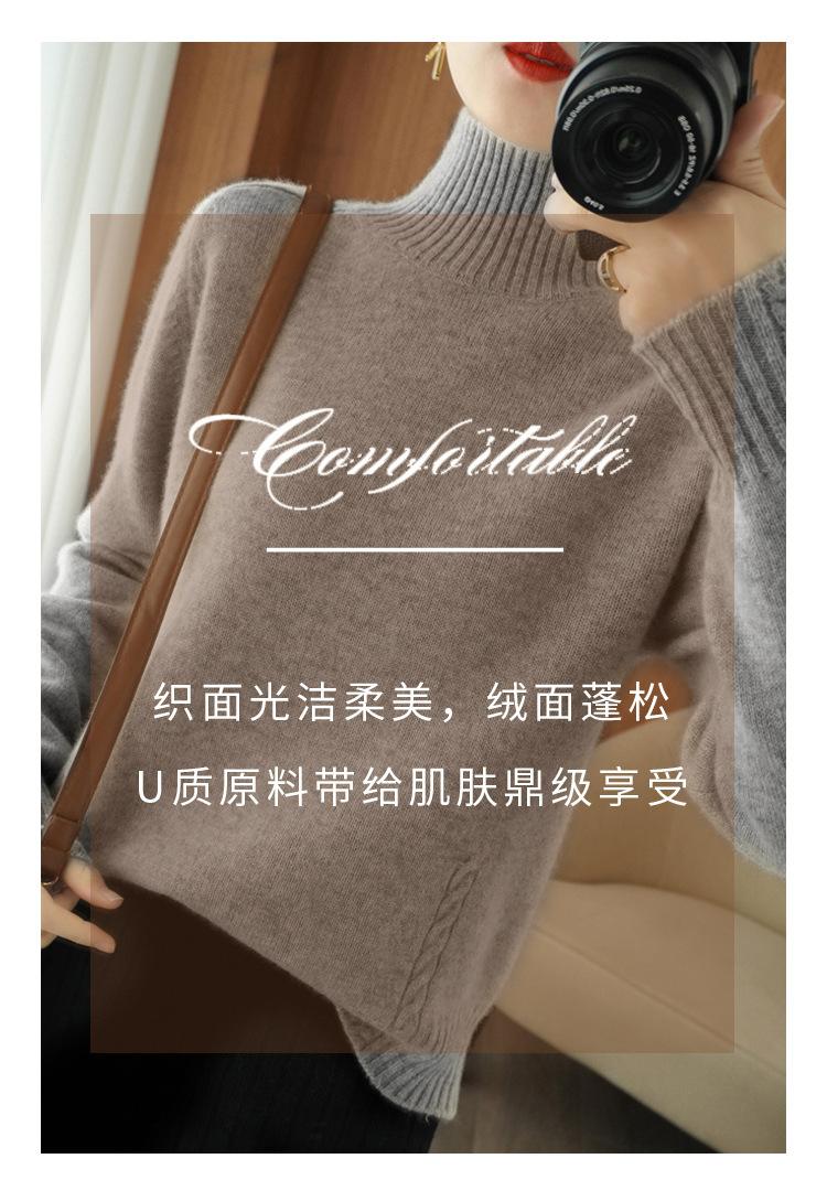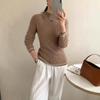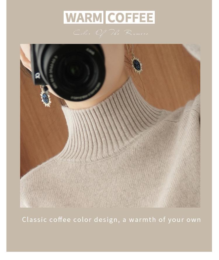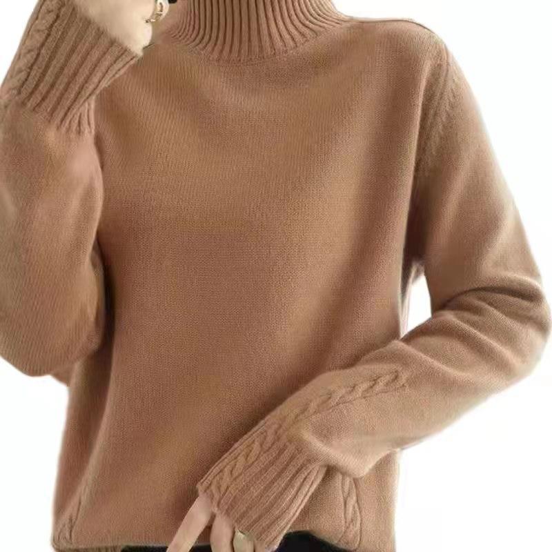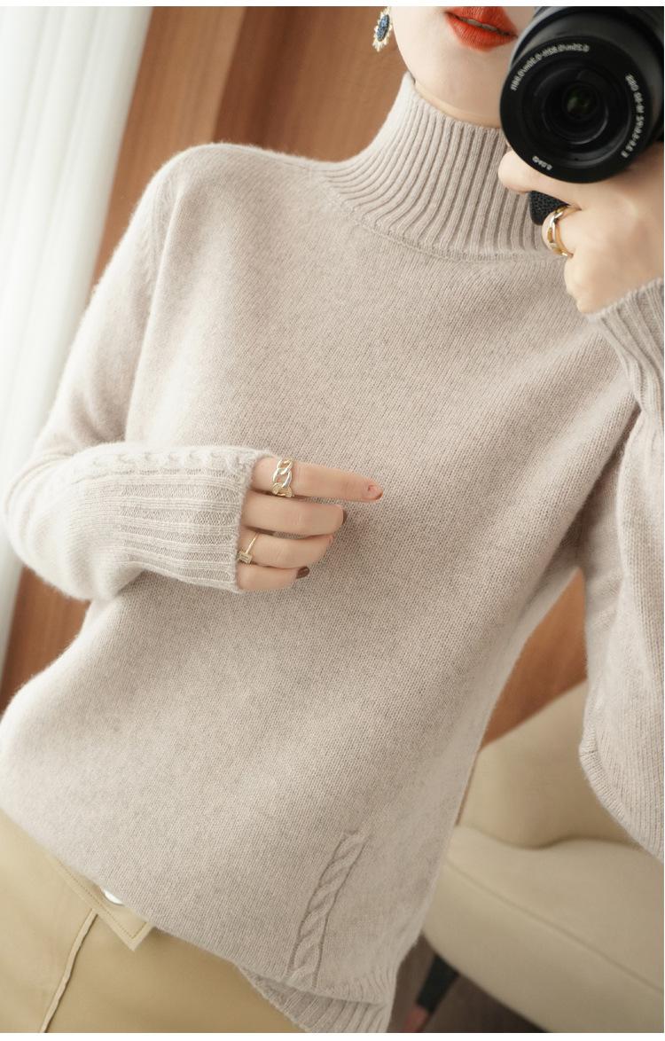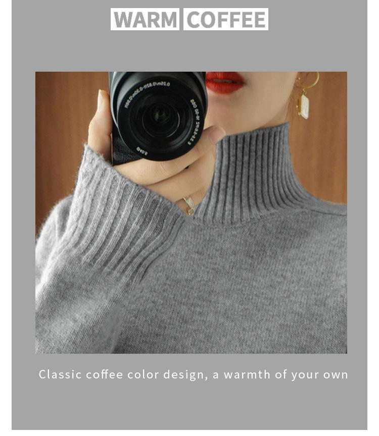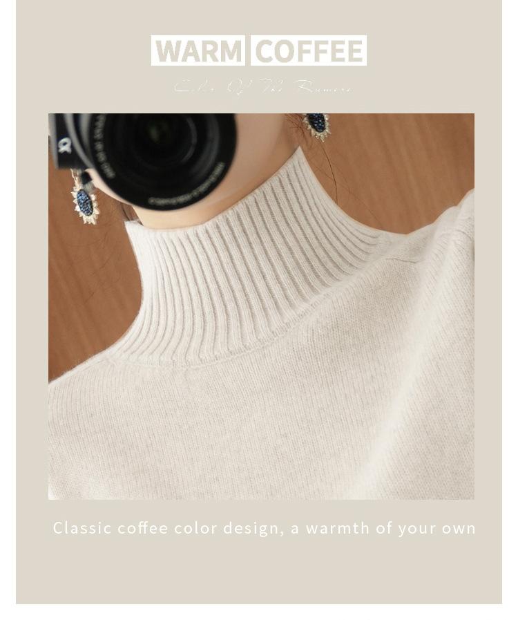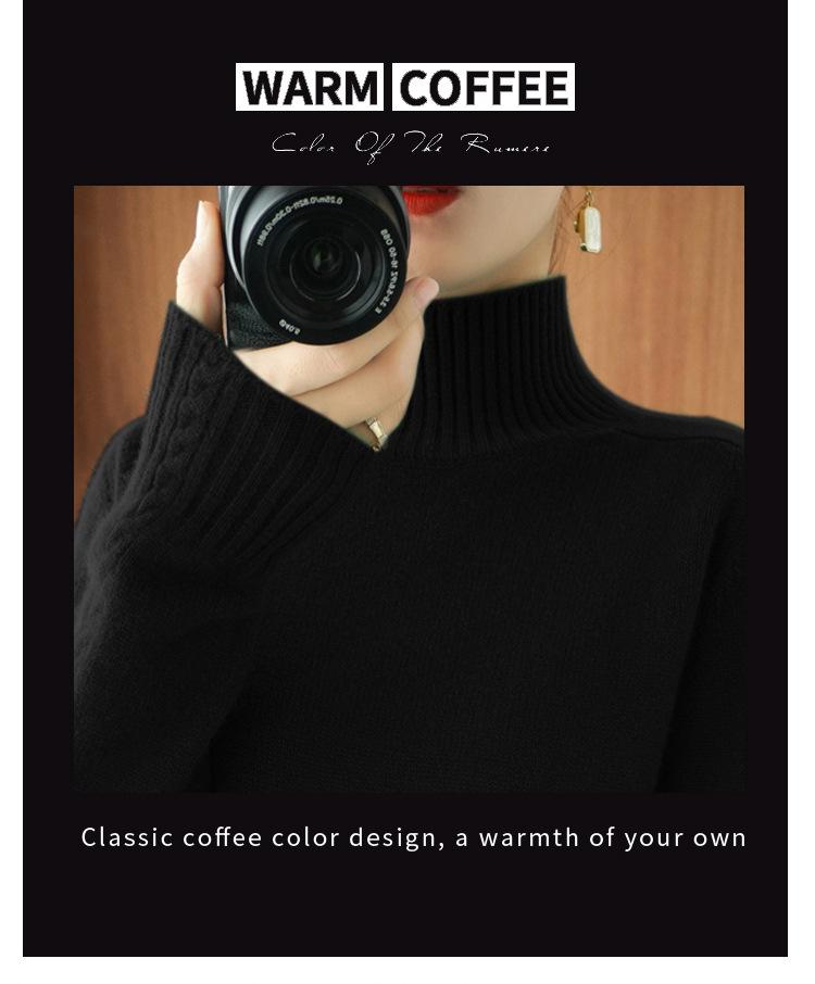 Suéter de punto de cuello alto medio para mujer, suéter de lana elegante de color sólido, camisa de base de punto grueso, otoño e invierno, nuevo