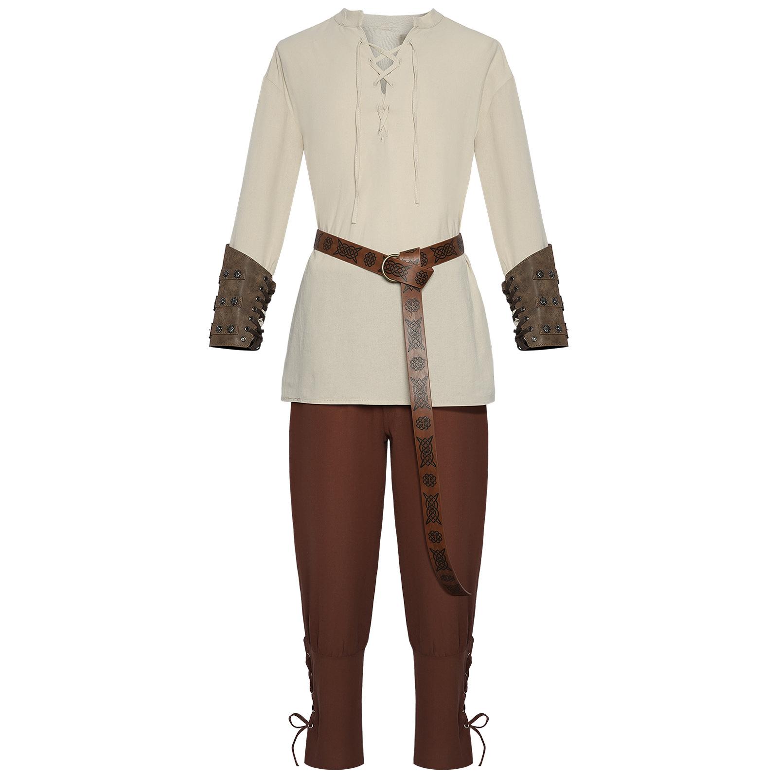 Camisa pirata medieval renacentista para Halloween, pantalones con cinta en los tobillos, traje de cosplay para actuación en el escenario