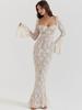 Vestido de encaje de manga larga para chica sexy, estilo europeo y americano, estilo puro deseo, ajustado, sin espalda, con cola de pez y falda larga