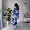 Otoño 2024, nueva ropa transfronteriza de Amazon europea y americana para mujer, moda con estampado de camisa y pantalones casuales holgados, conjunto de dos piezas