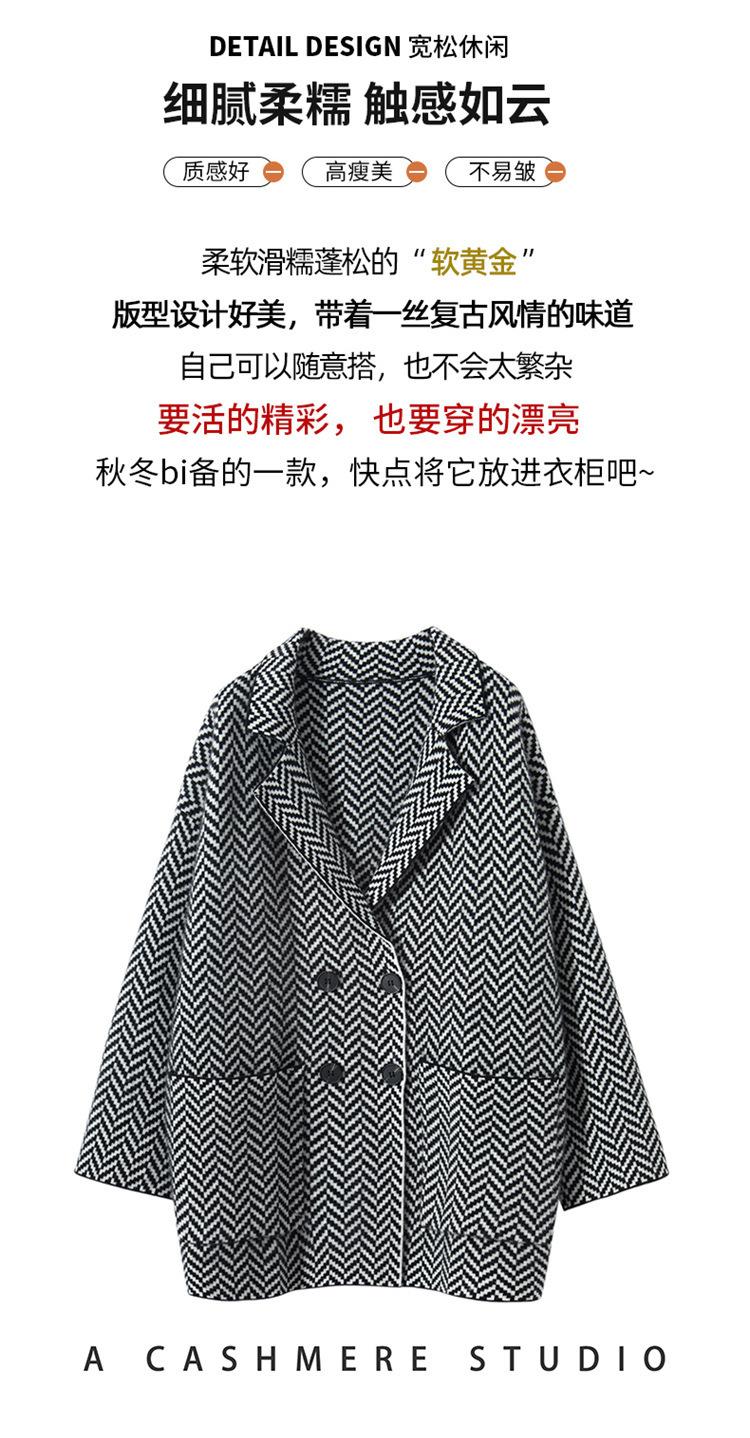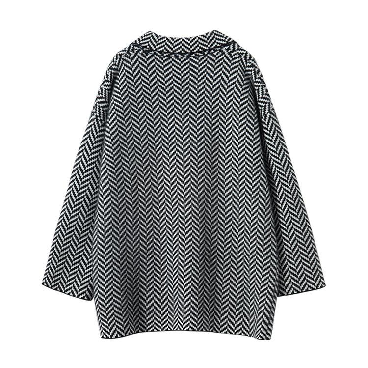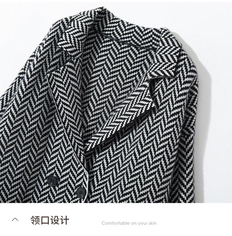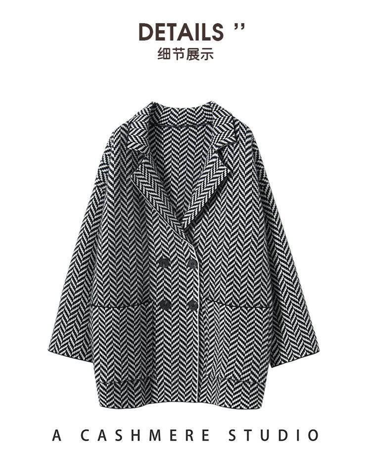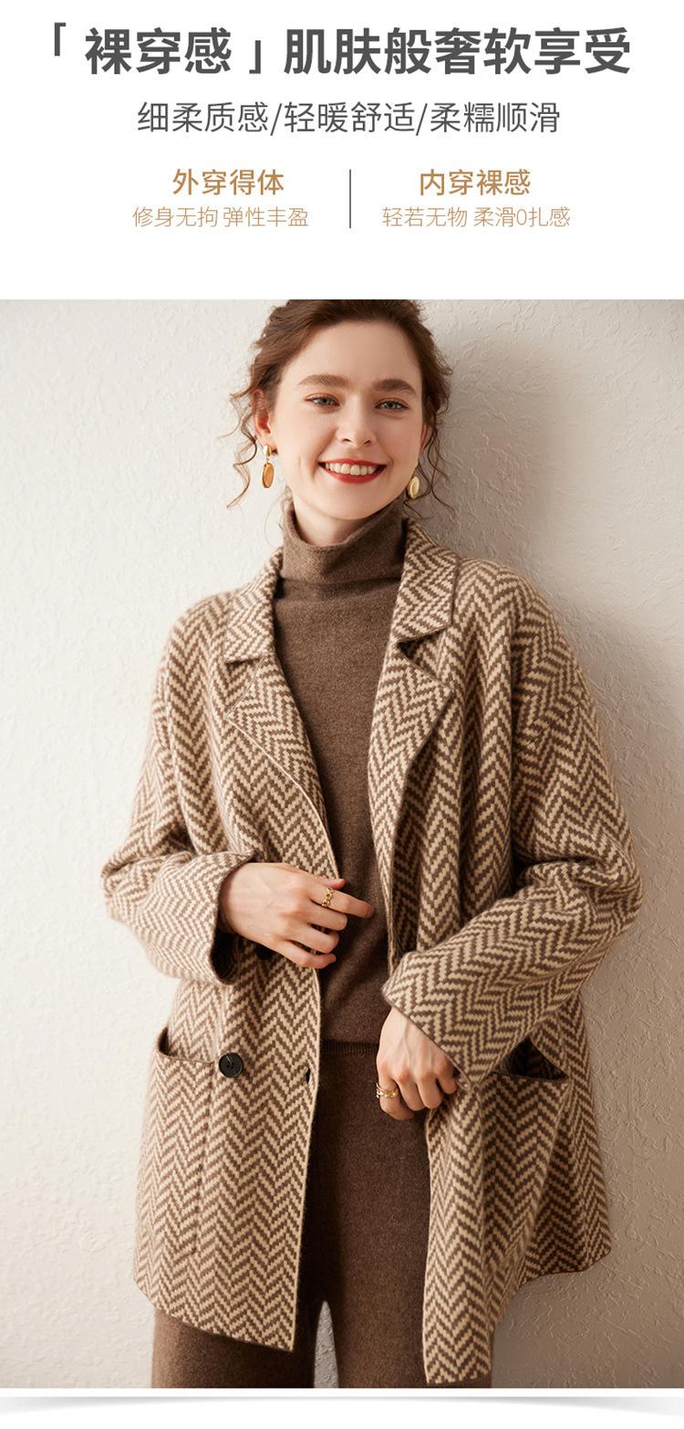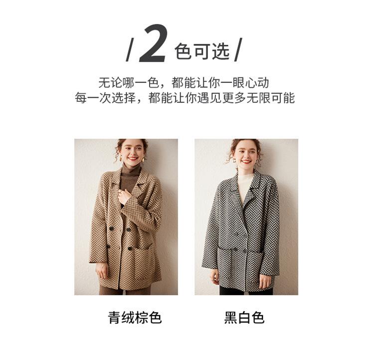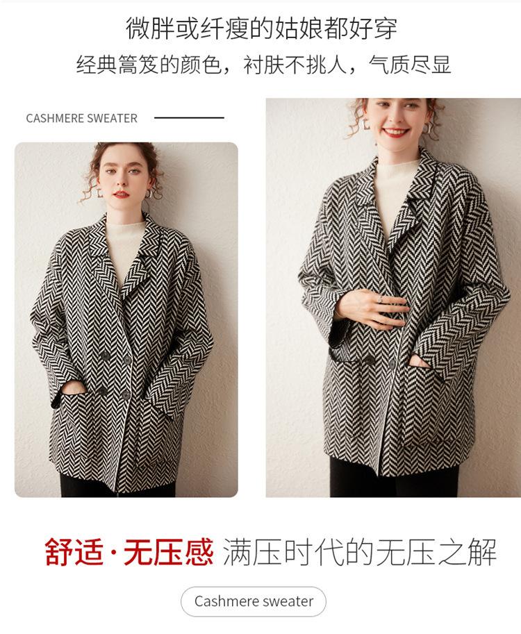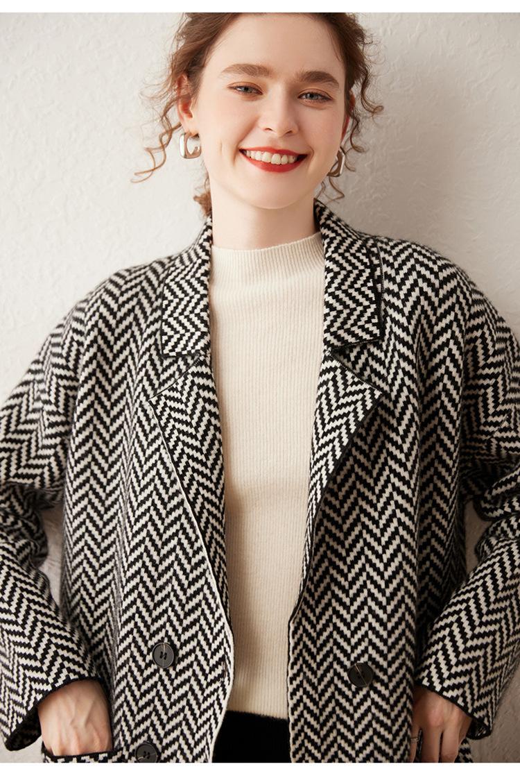 Abrigo de cachemira de otoño e invierno para mujer, cuello de traje, estilo británico, cruzado, largo medio, grueso, con estampado de espiga, cárdigan suelto
