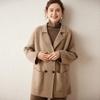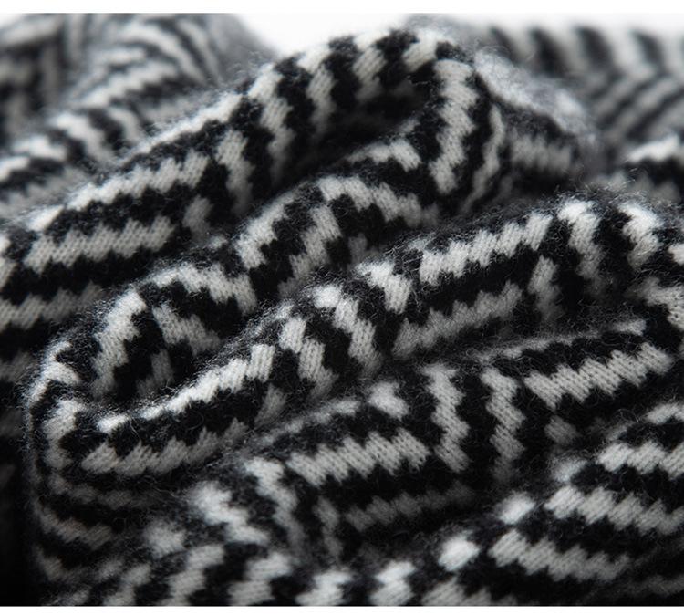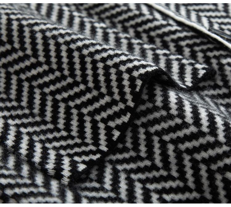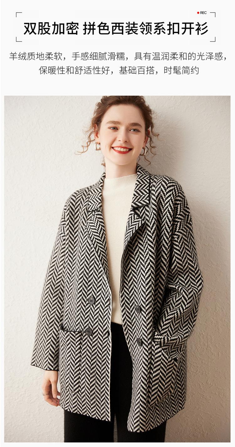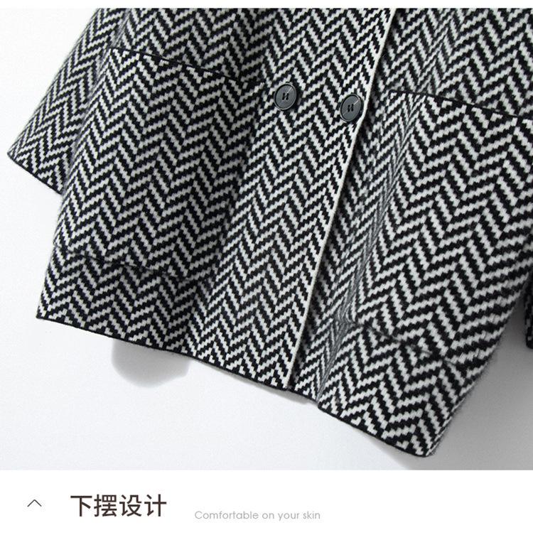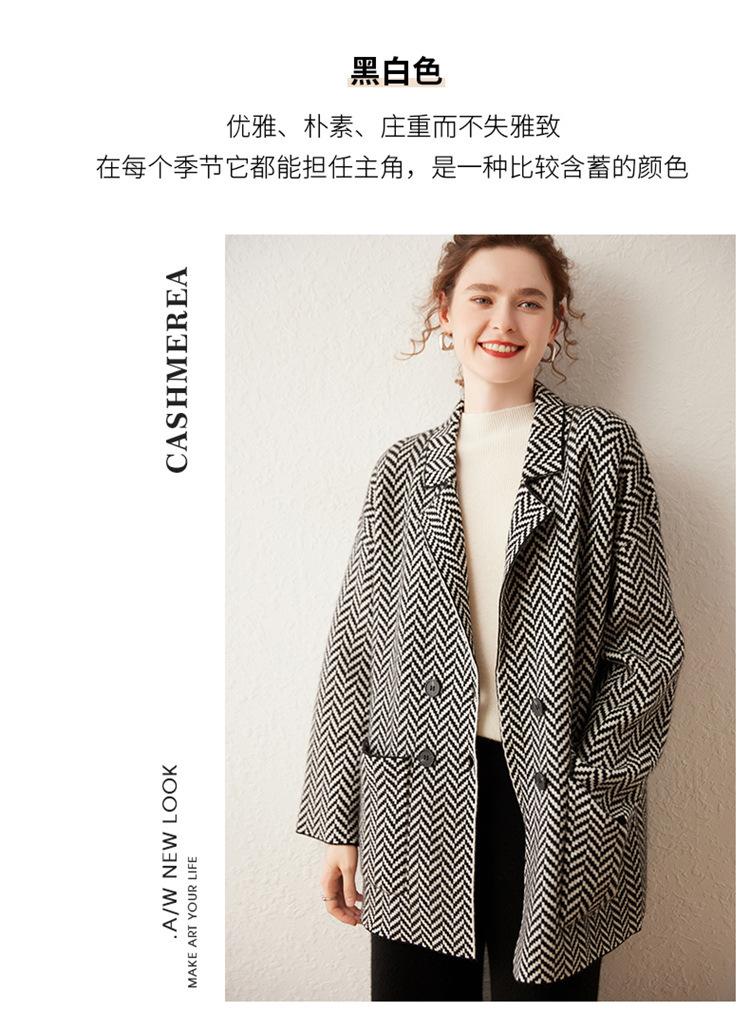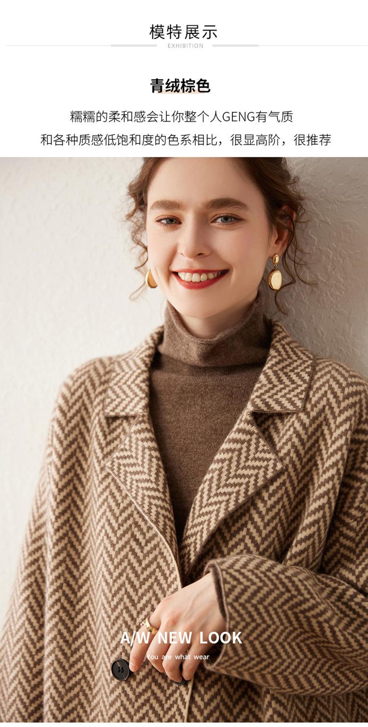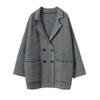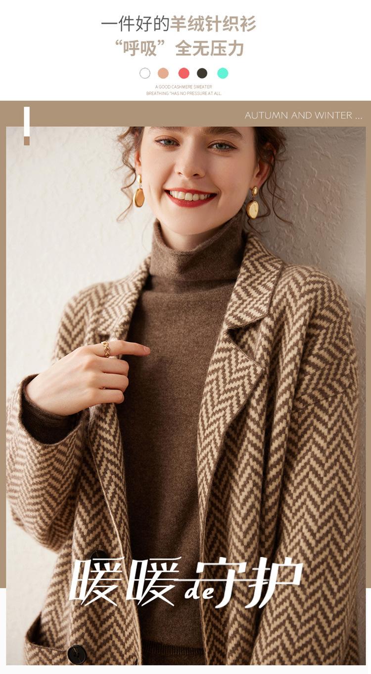 Abrigo de cachemira de otoño e invierno para mujer, cuello de traje, estilo británico, cruzado, largo medio, grueso, con estampado de espiga, cárdigan suelto