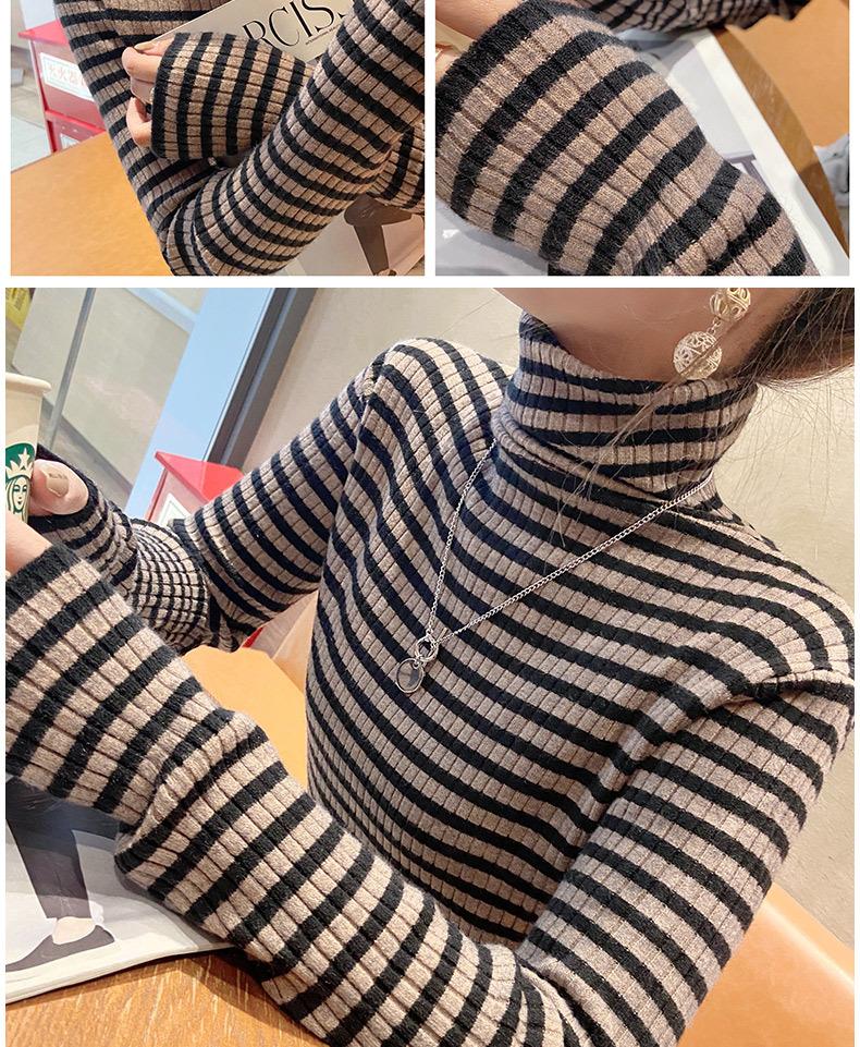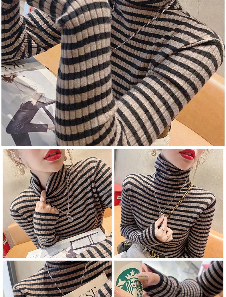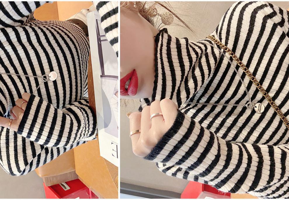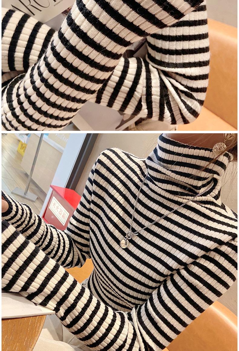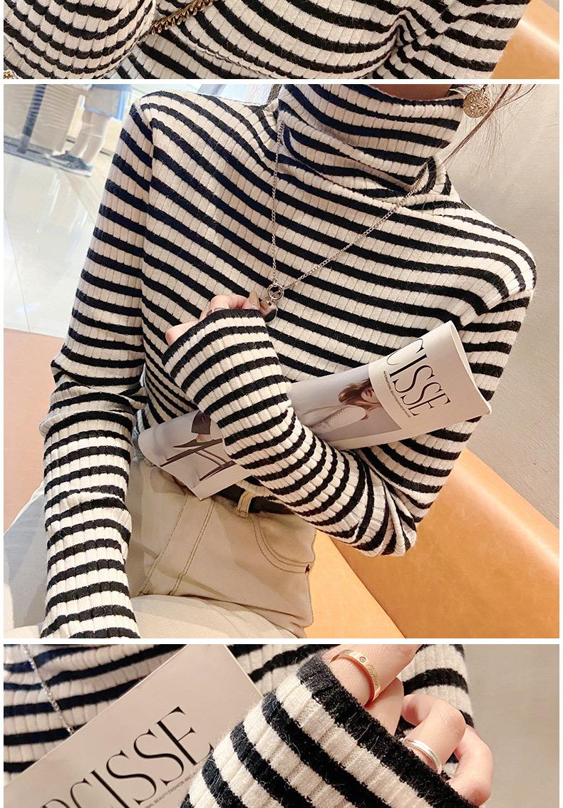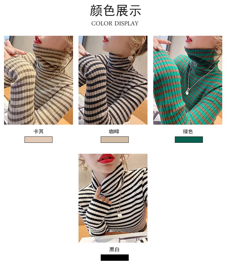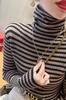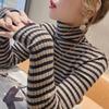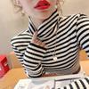 Camisa de cuello alto a rayas para mujer, otoño e invierno, nueva, ajustada, adelgazante, cuello apilado, suéter suave y encerado, parte superior interior