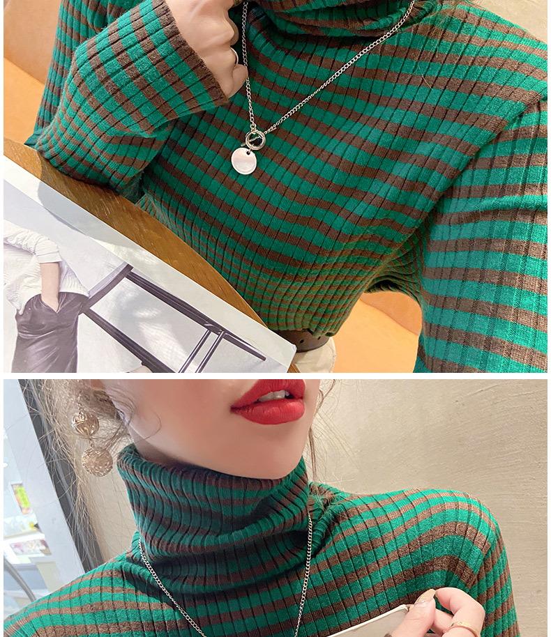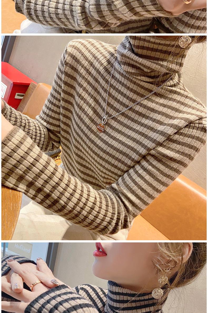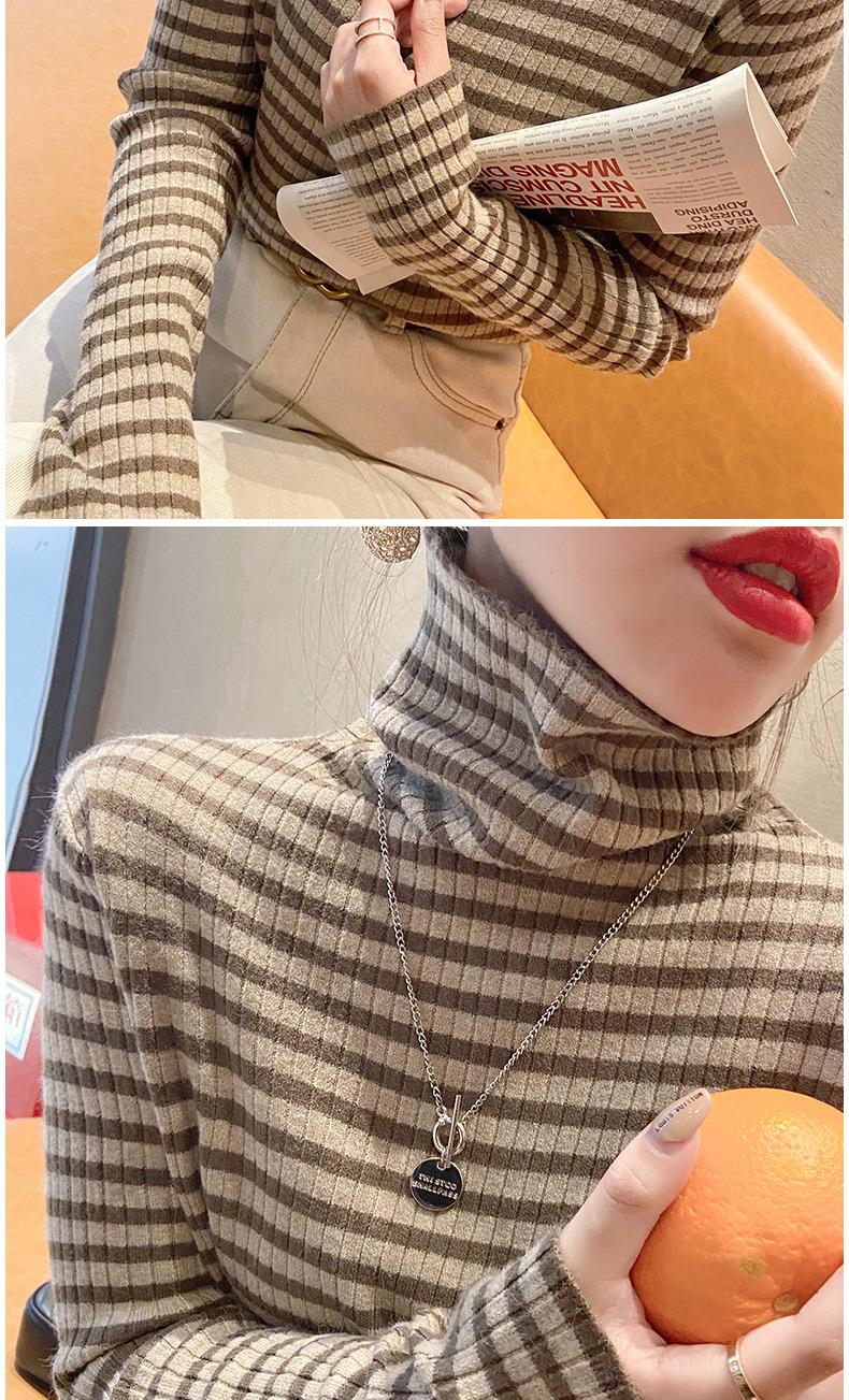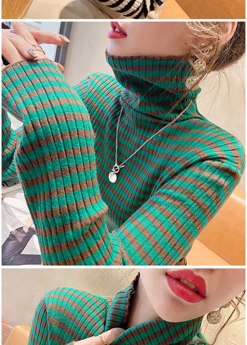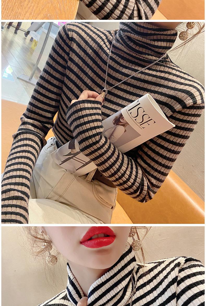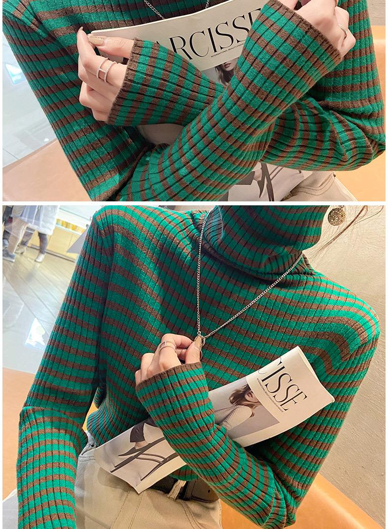 Camisa de cuello alto a rayas para mujer, otoño e invierno, nueva, ajustada, adelgazante, cuello apilado, suéter suave y encerado, parte superior interior