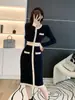 Vestido de Punto de Fragancia Pequeña para Mujer de Trece Líneas Vestido Suéter Básico de Otoño Nuevo para Mujer de Color Sólido de Largo Medio Sobre la Rodilla