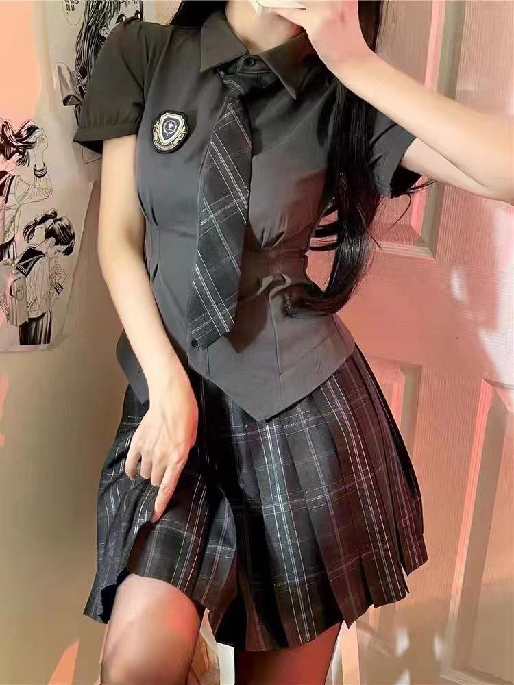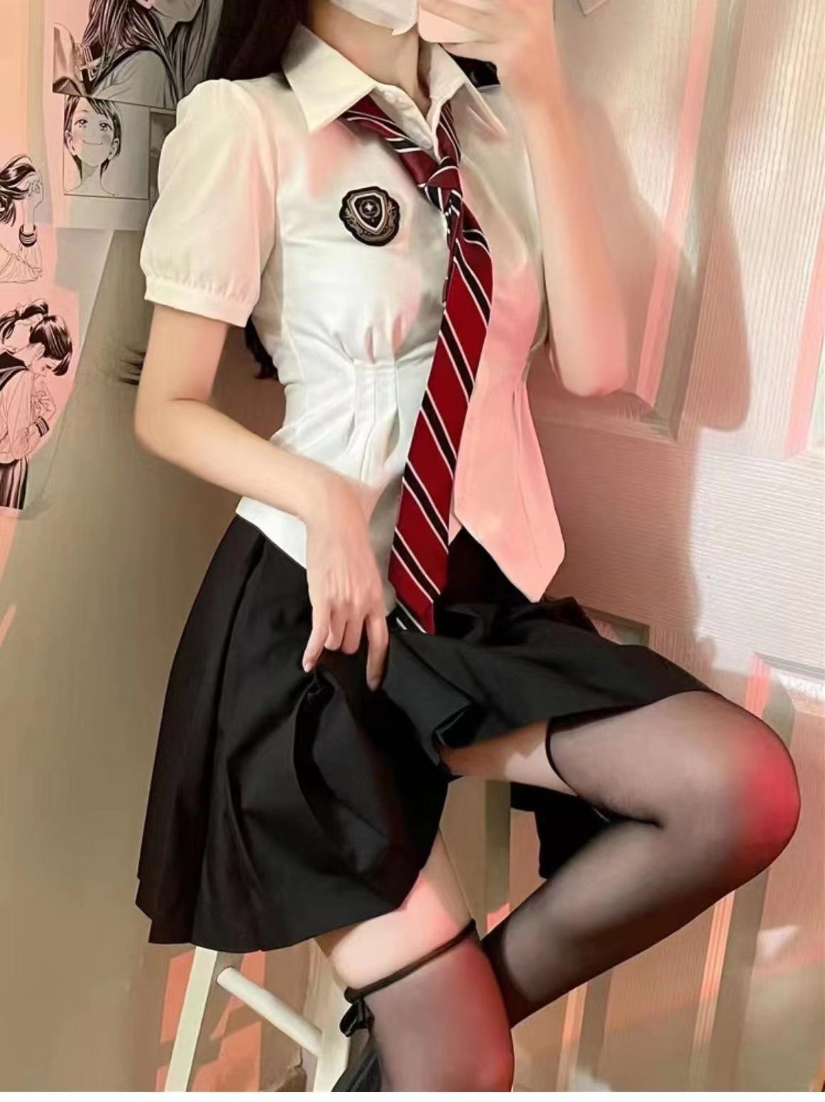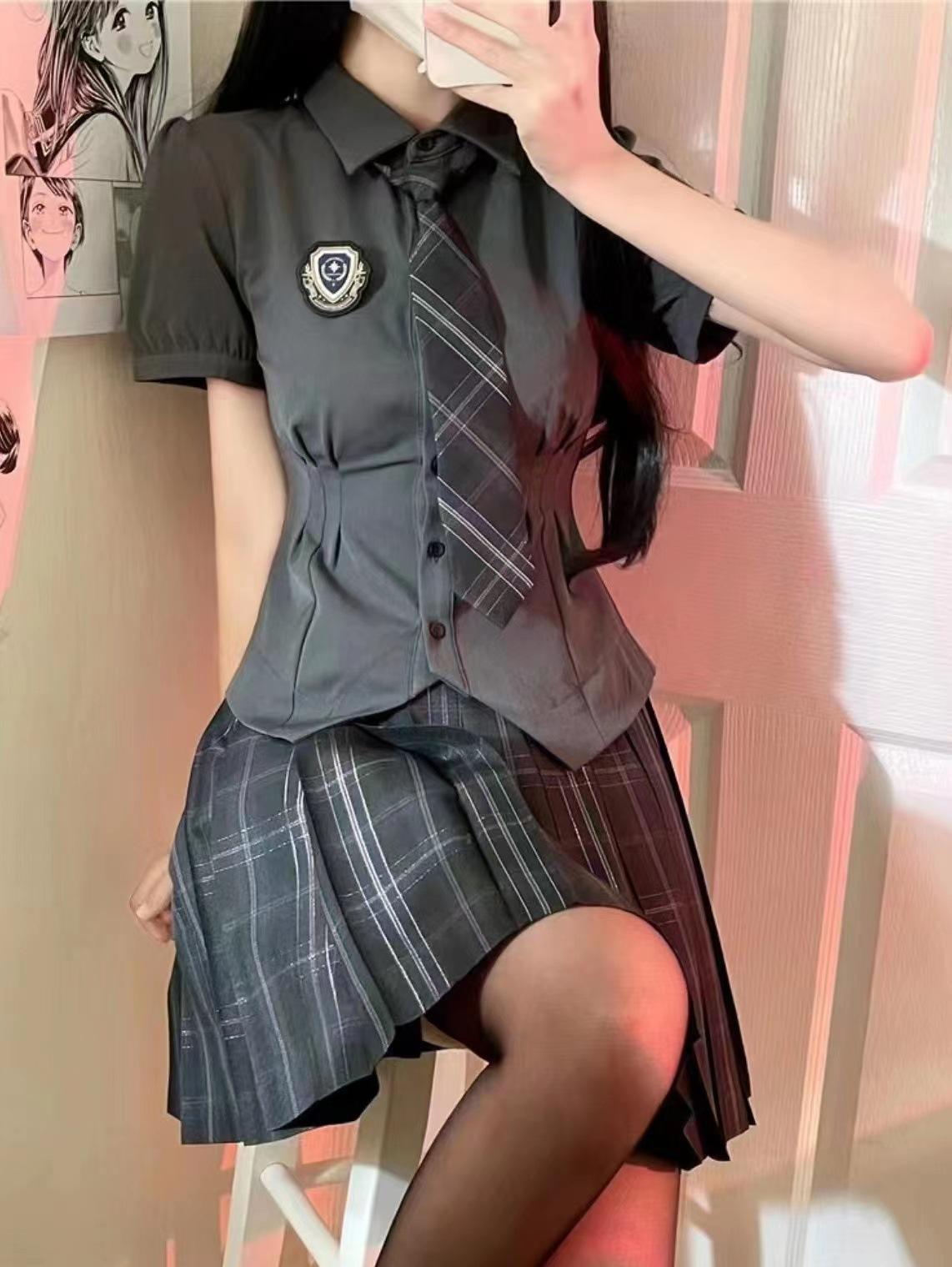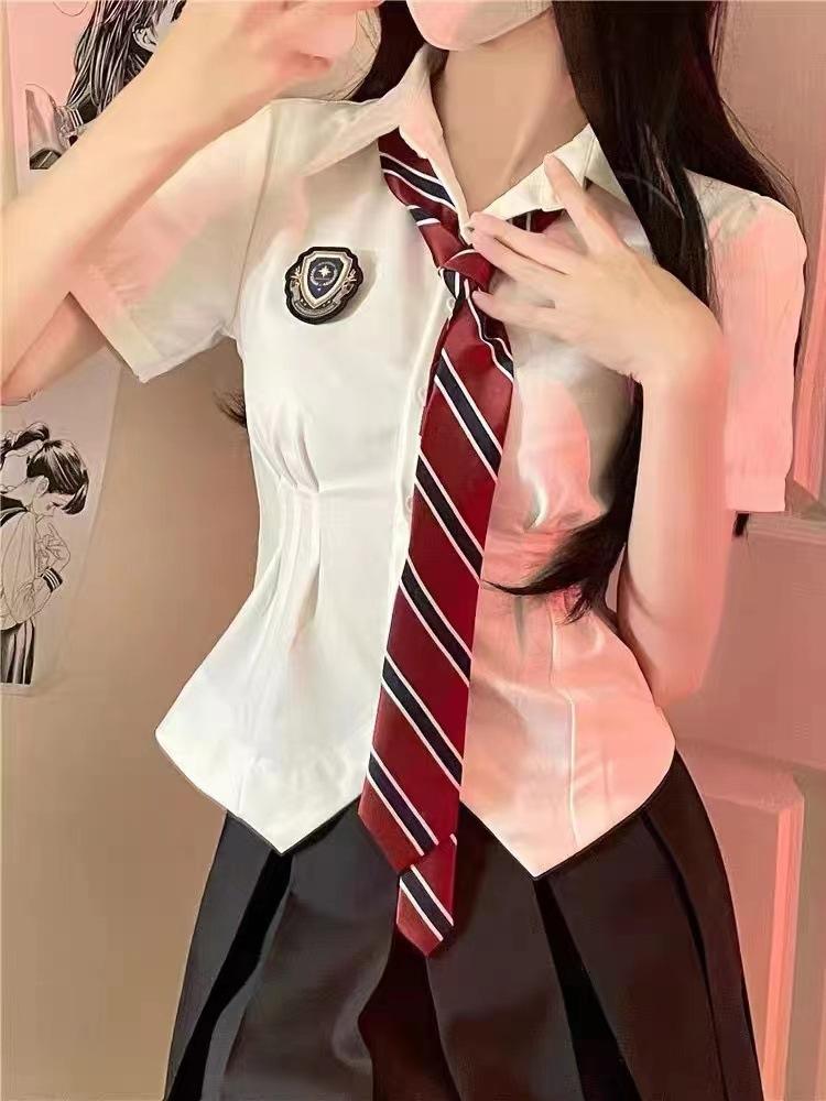 Conjunto de Uniforme jk Estilo Universitario Atmósfera de Deseo Puro Camisa Ajustada de Cintura Ceñida Sexy Estilo Japonés Camisa de Cintura Ceñida Corbata Uniforme