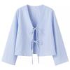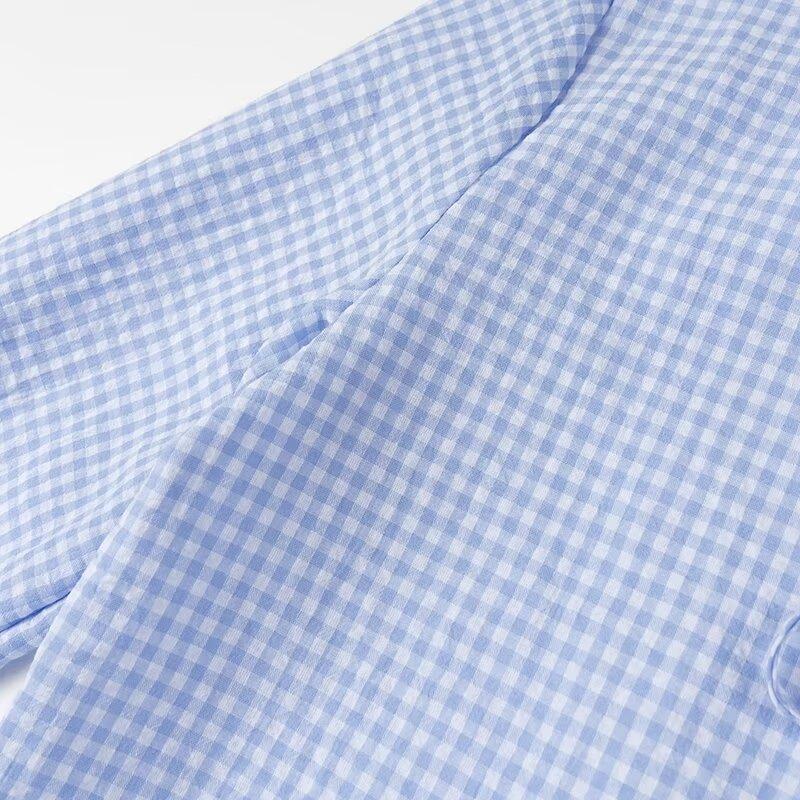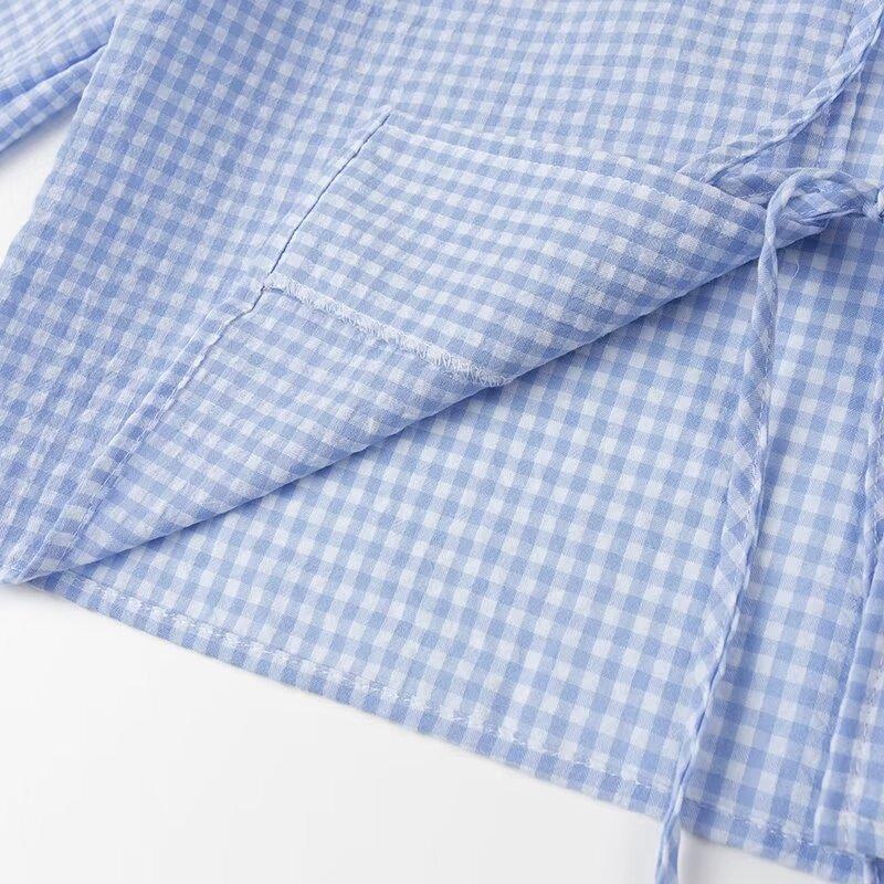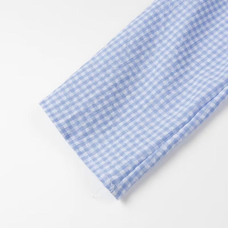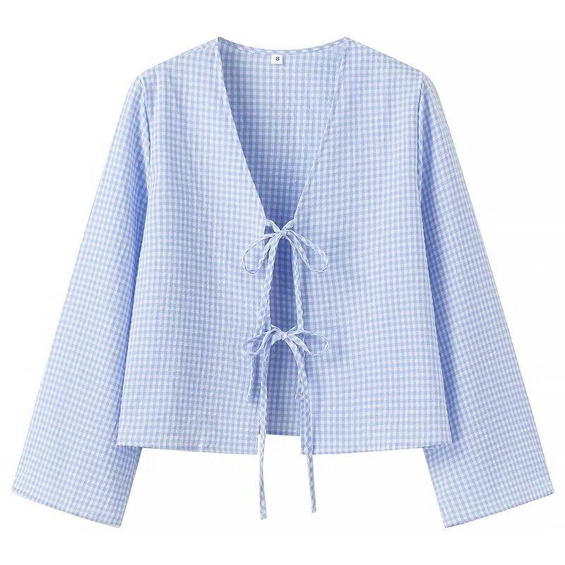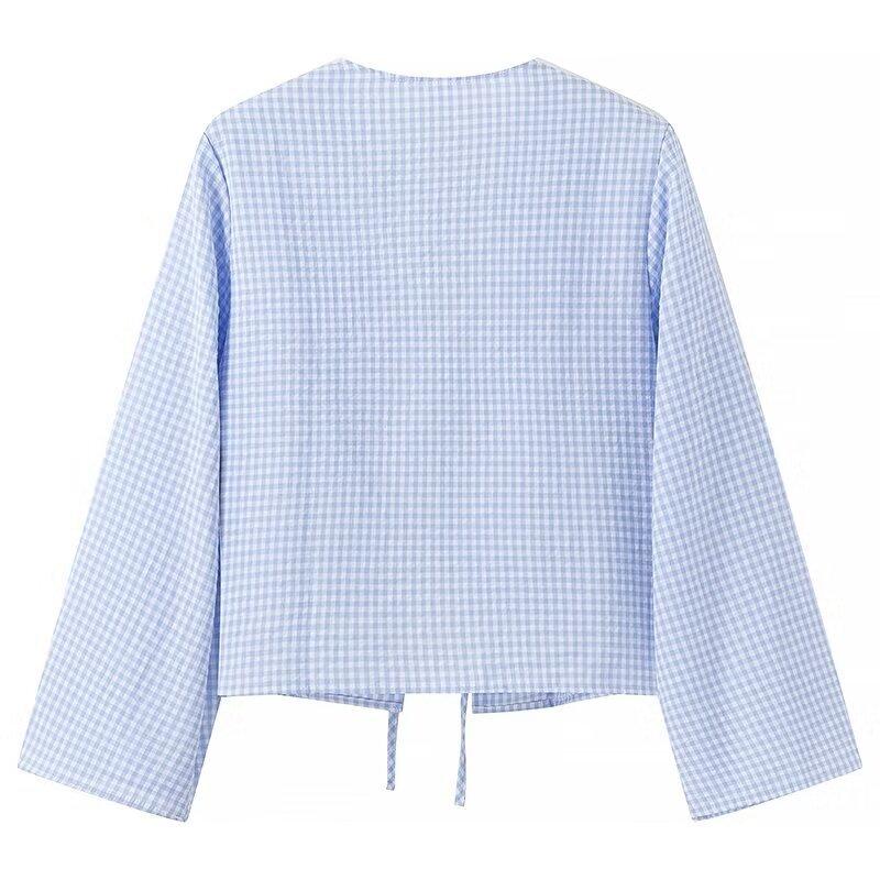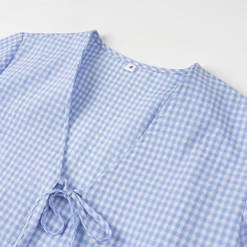 Ropa de Mujer Estilo Europeo y Americano 2024 Verano Nuevo Estilo Nicho Francés Versátil Casual Cárdigan a Cuadros Cuello en V Camisa de Manga Larga