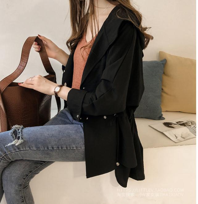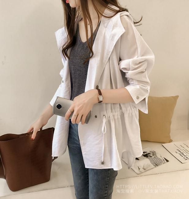 Principios de Otoño Nuevo Estilo para Mujer 2025 Estilo Coreano Holgado Bf Cortavientos con Capucha Chaqueta Cárdigan Casual de Manga Larga de Longitud Media para Mujer Trendy
