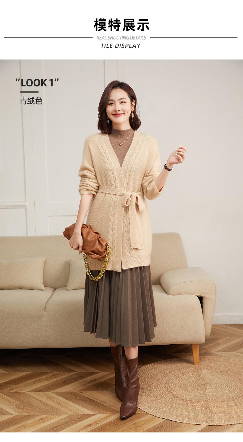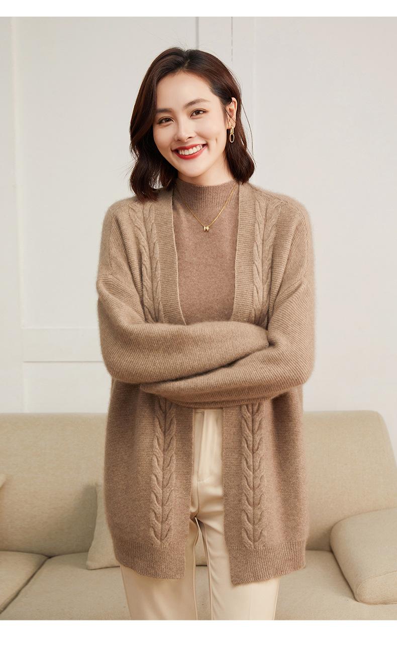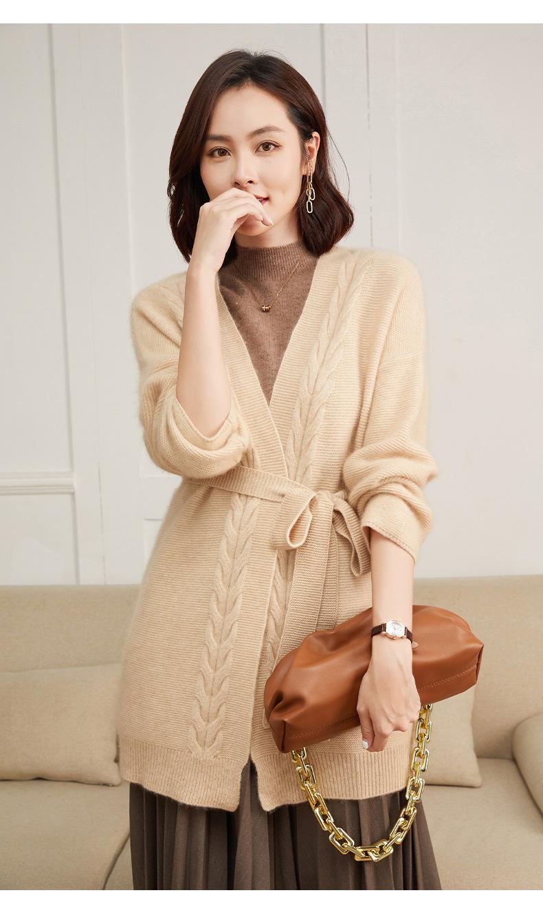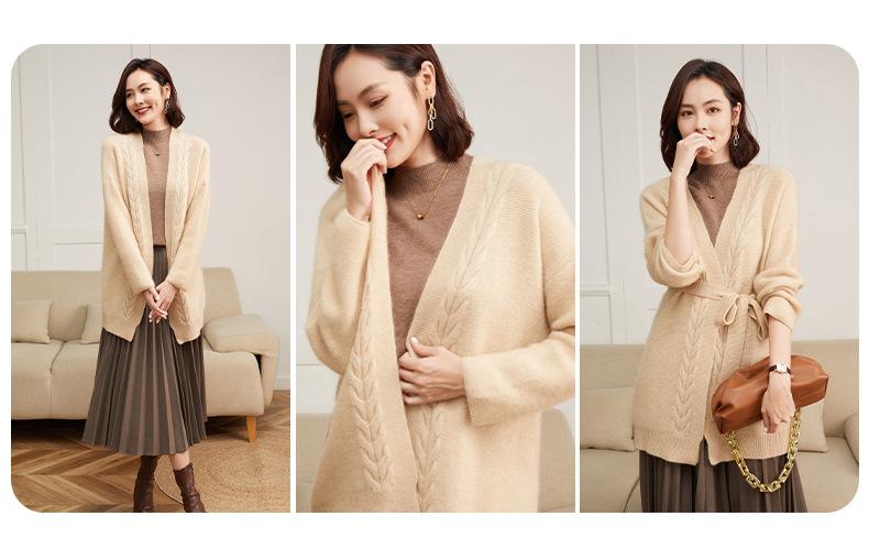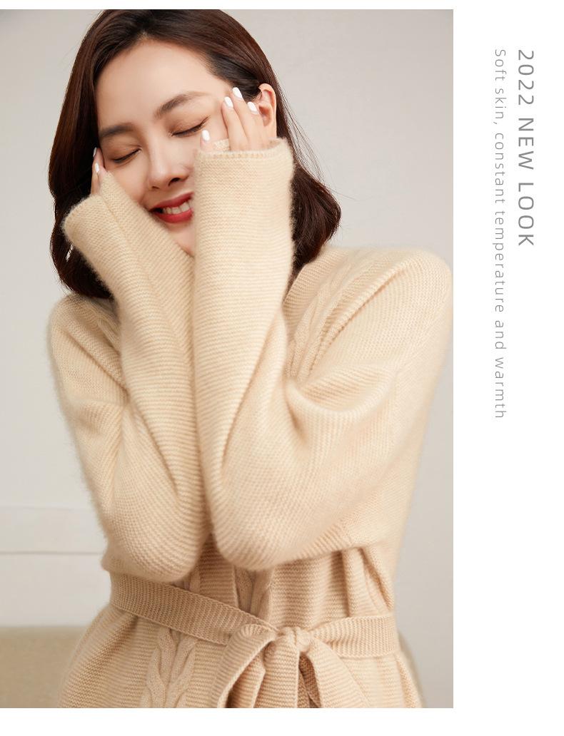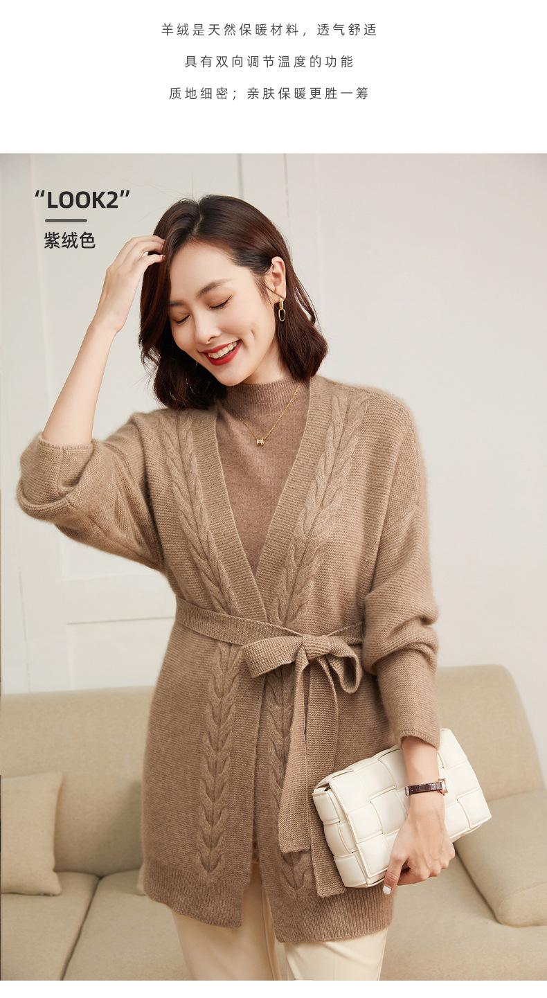 Cárdigan de Cachemira Nuevo de Otoño e Invierno con Temperamento para Mujer, Cárdigan Suelto de Largo Medio, Silueta Holgada, Cinturón, Chaqueta Suéter de Punto