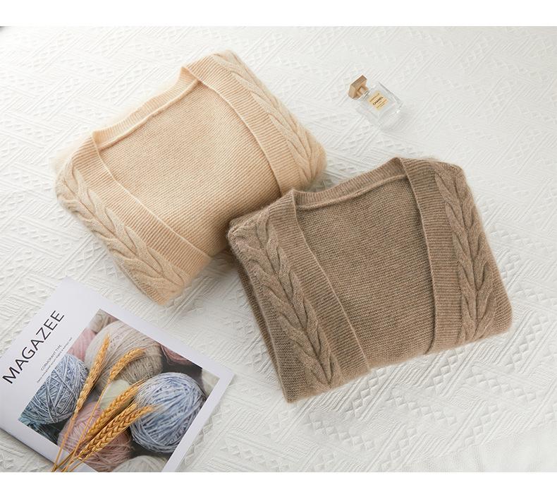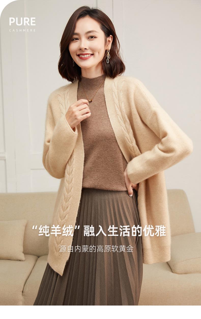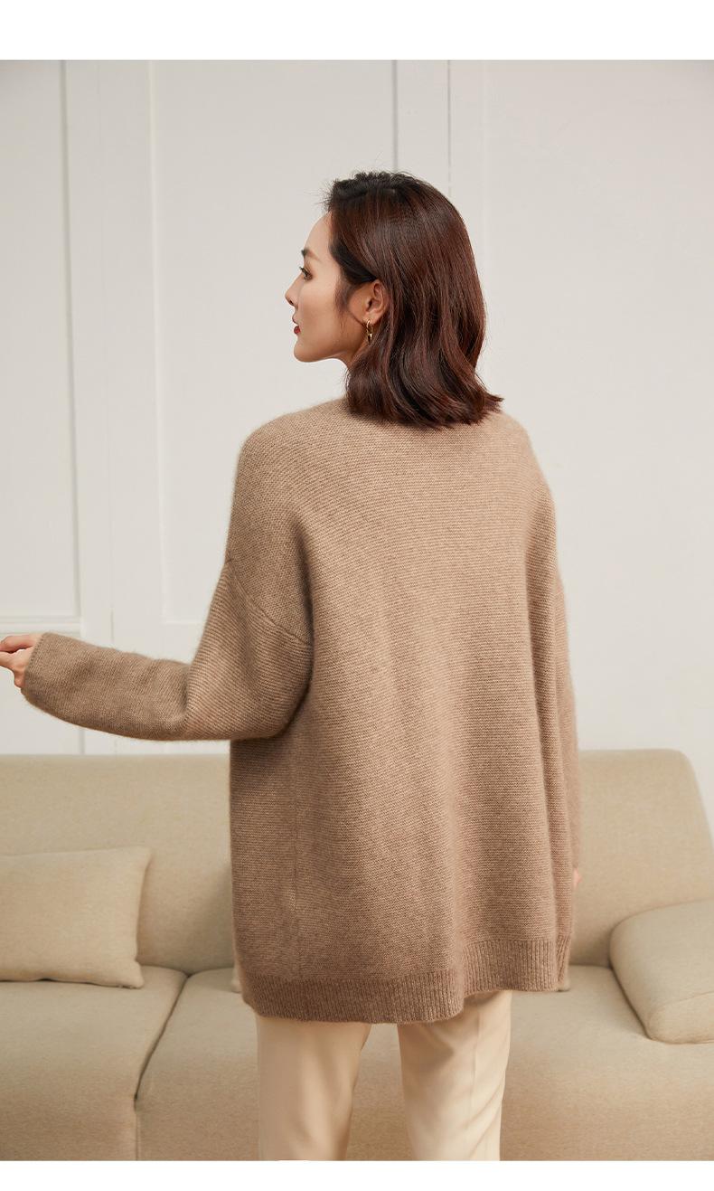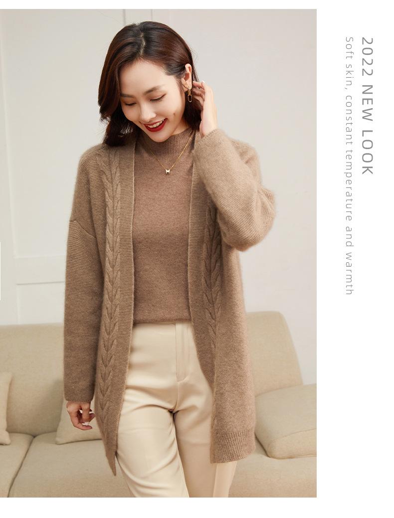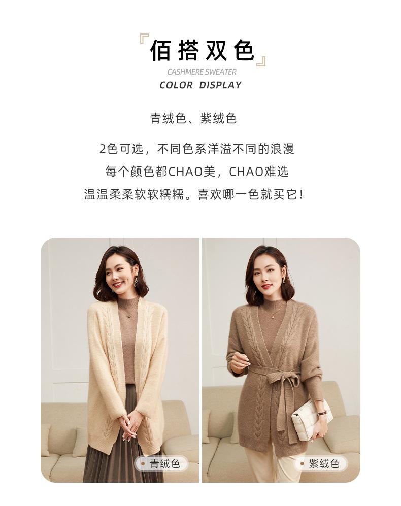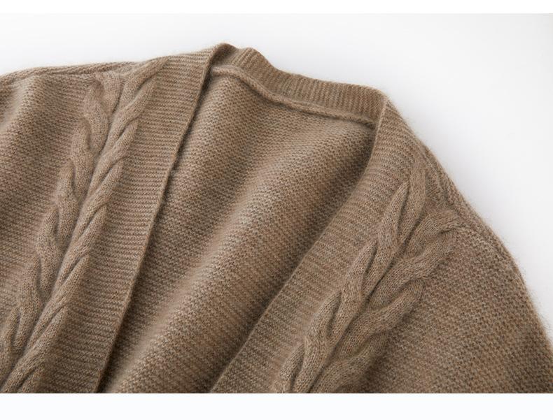 Cárdigan de Cachemira Nuevo de Otoño e Invierno con Temperamento para Mujer, Cárdigan Suelto de Largo Medio, Silueta Holgada, Cinturón, Chaqueta Suéter de Punto