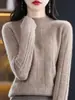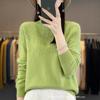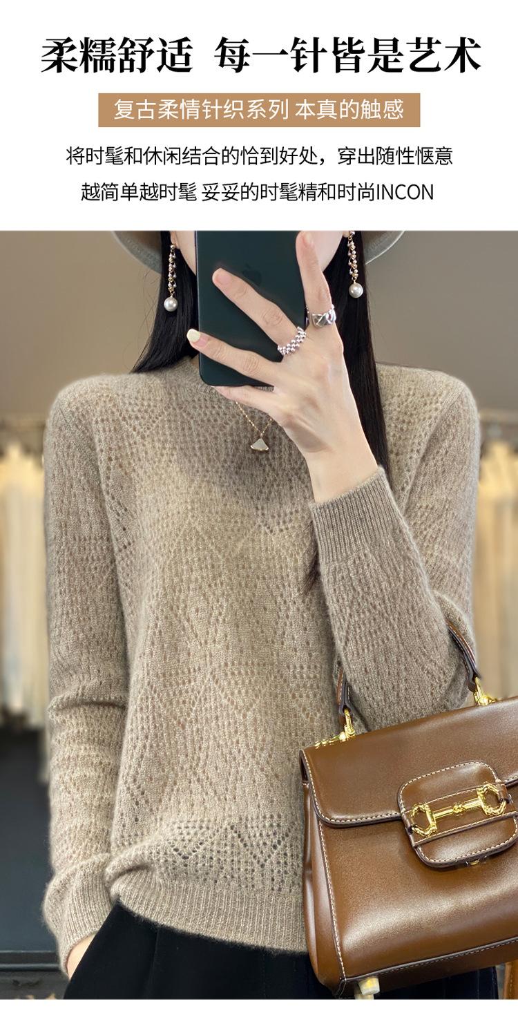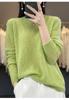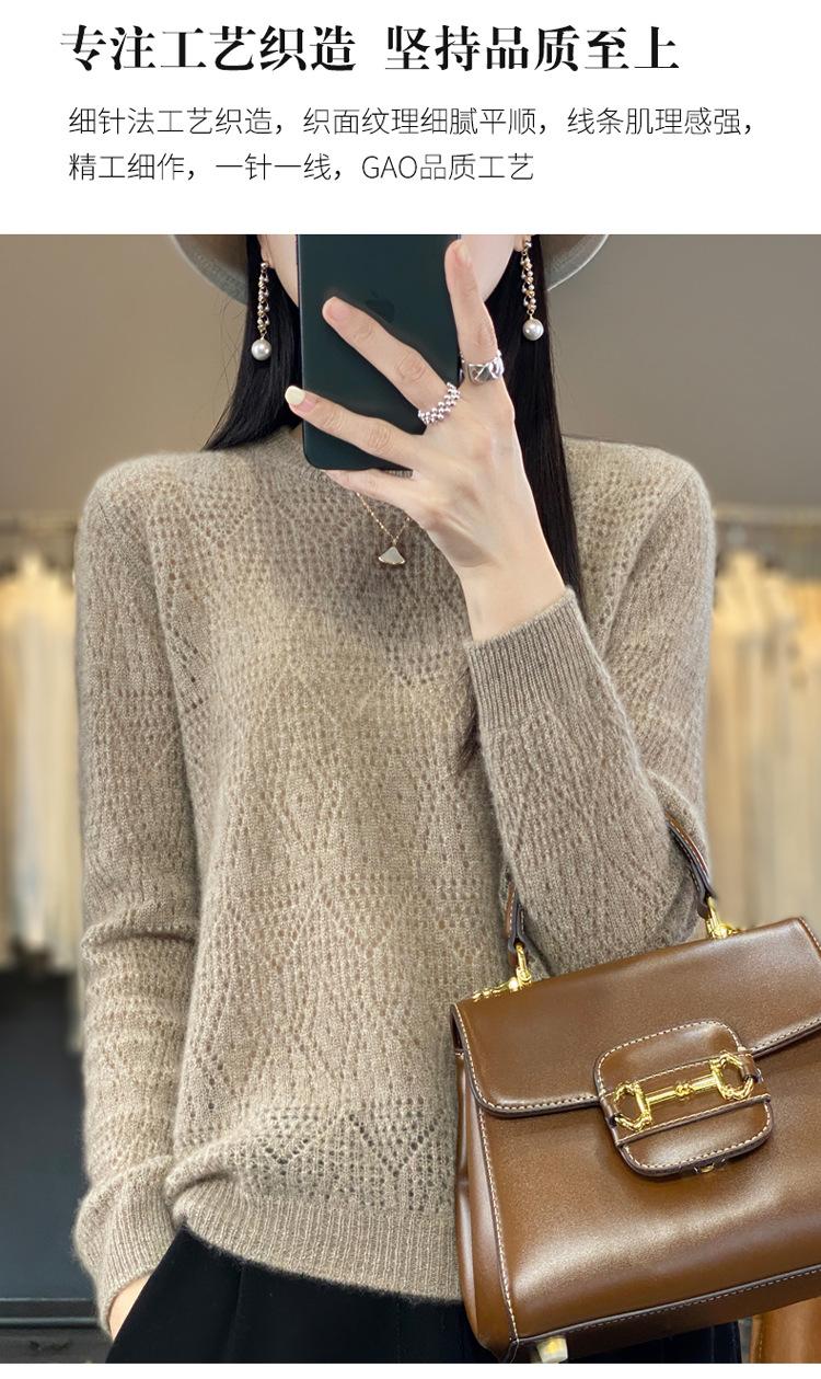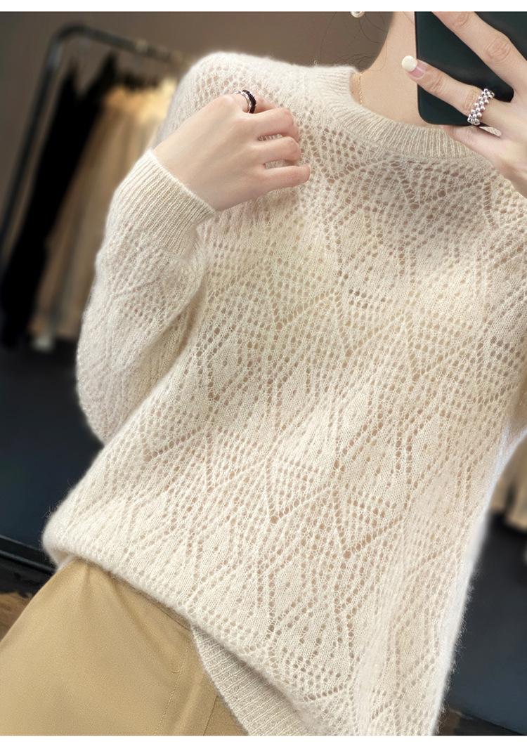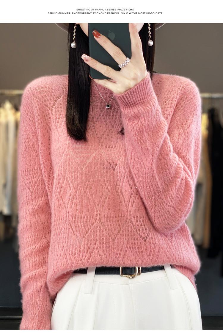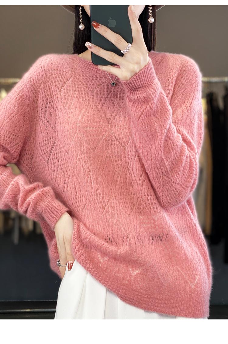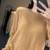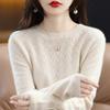 Suéter de lana 100% pura para mujer, suéter fino de cuello redondo, camisa de manga larga, top de punto hueco, novedad de primavera