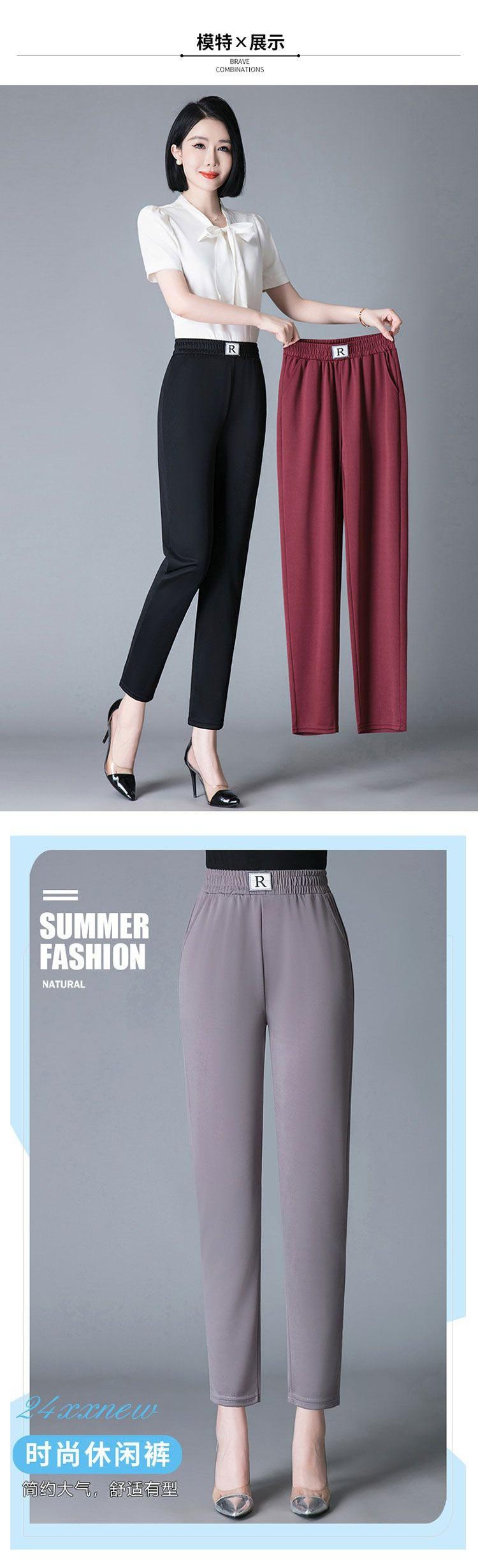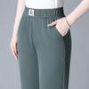 Pantalones de Verano Blancos de Seda de Hielo para Madre Talla Grande Cintura Alta Elásticos Pantalones Cortos Rectos Pantalones Casuales de Mediana Edad para Niños
