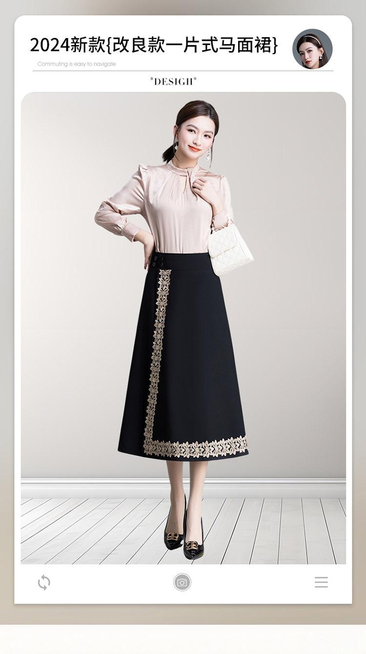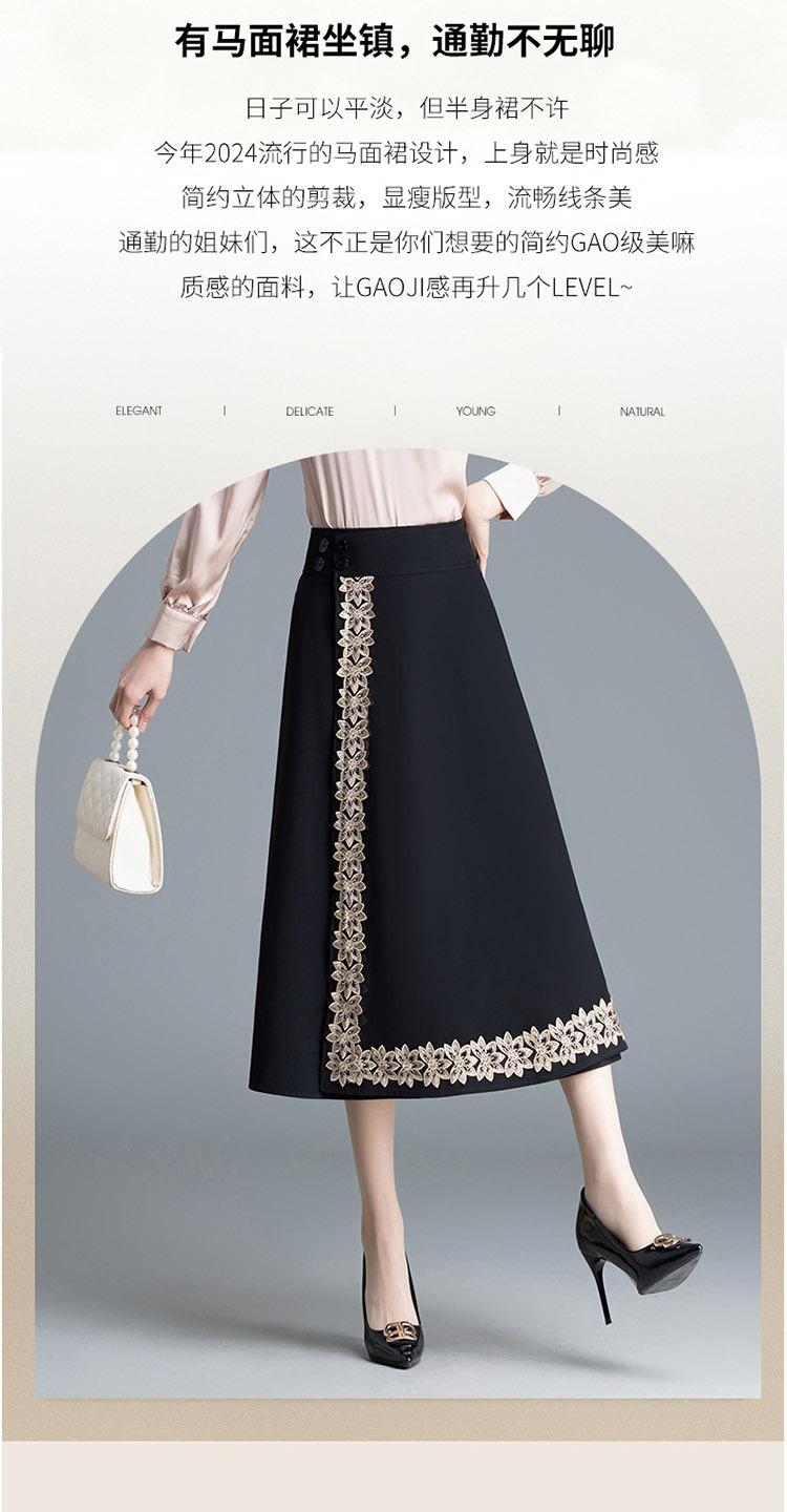 2024 Nuevo Otoño Vestido de Una Pieza Falda Cara de Caballo para Mujer Cintura Alta Falda Grande de Vuelo Largo Medio Look Adelgazante Falda Línea A