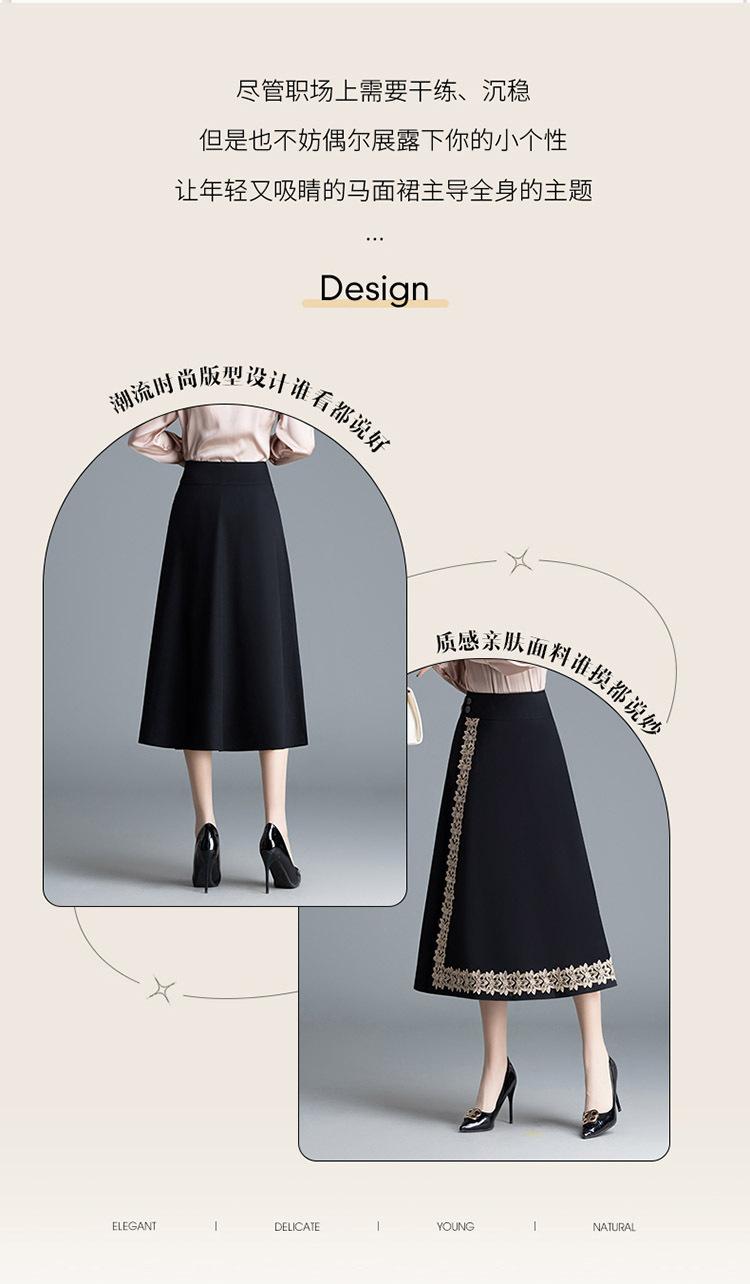 Compra 2024 Nuevo Otoño Vestido de Una Pieza Falda Cara de Caballo para Mujer Cintura Alta Falda Grande de Vuelo Largo Medio Look Adelgazante Falda Línea A al por mayor en Joom.pro