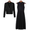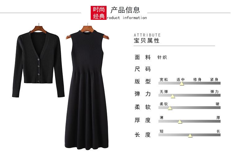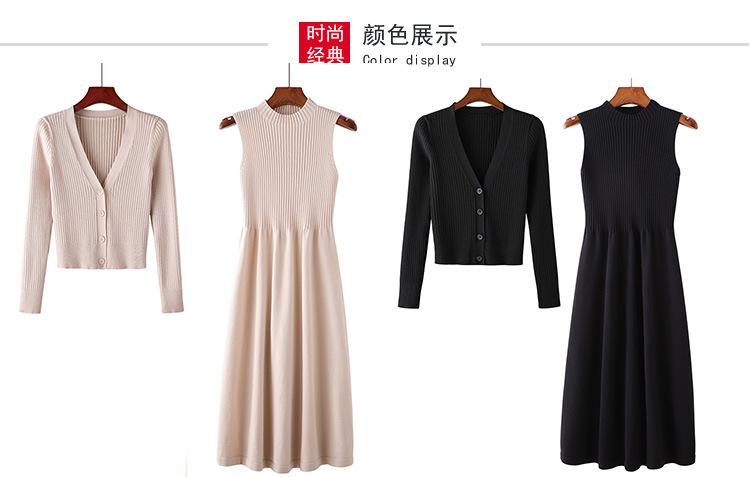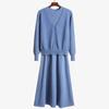 Vestido de Suéter de Manga Larga para Principios de Otoño 2024 Conjunto de Dos Piezas Falda de Lana Cárdigan de Punto Holgado Falda Acampanada para Mujer