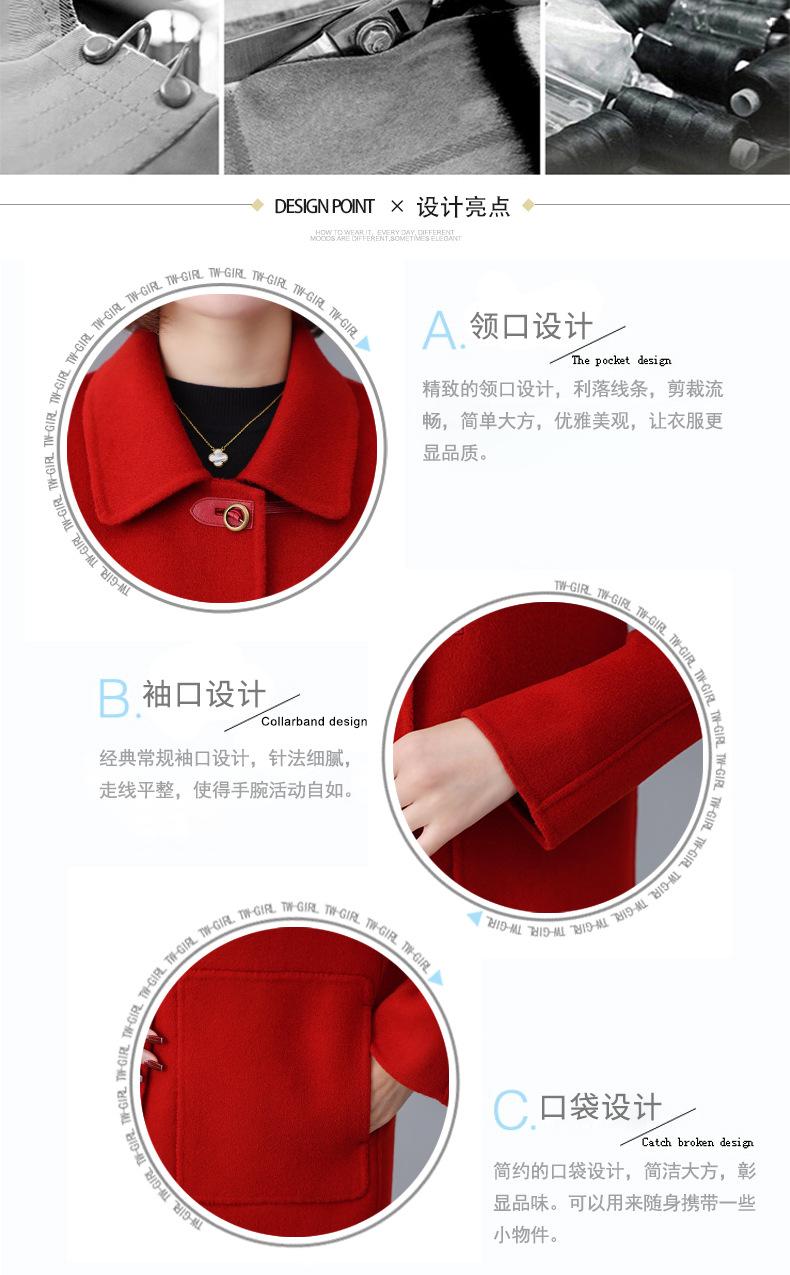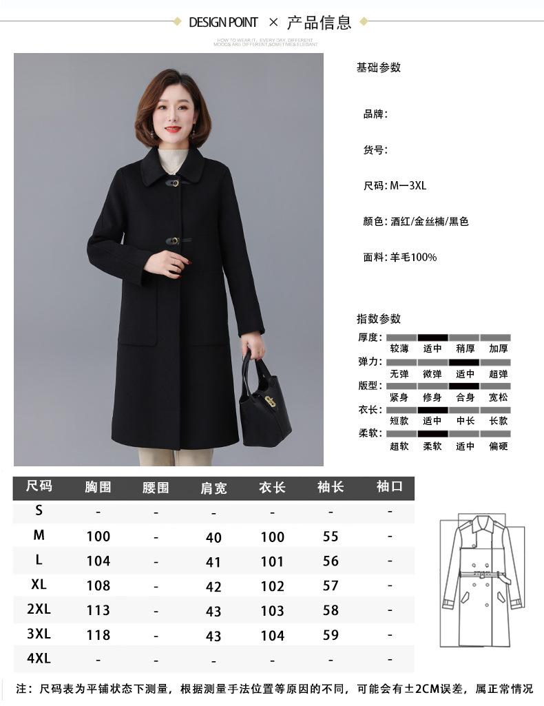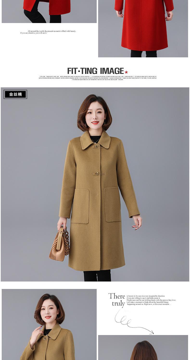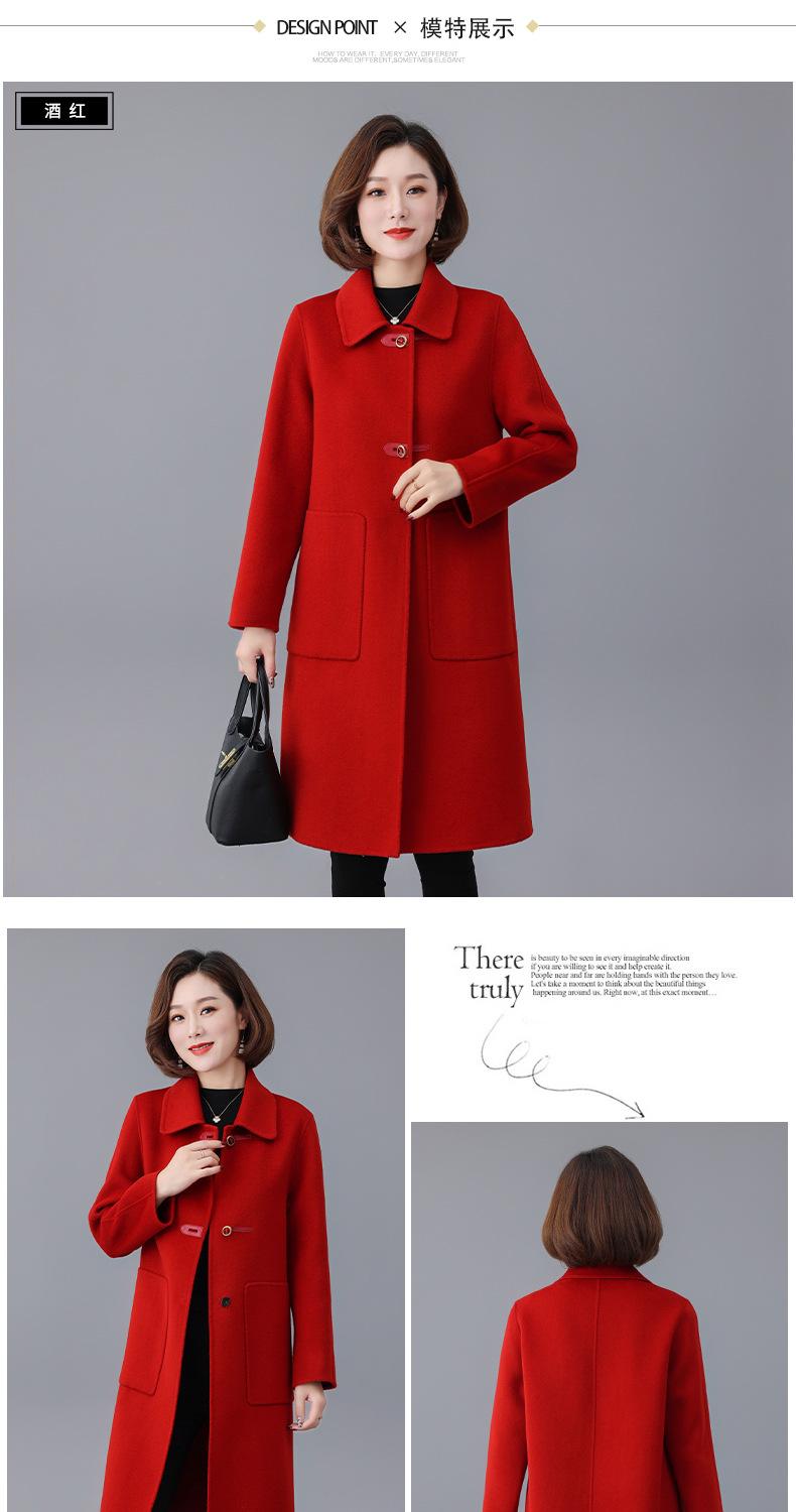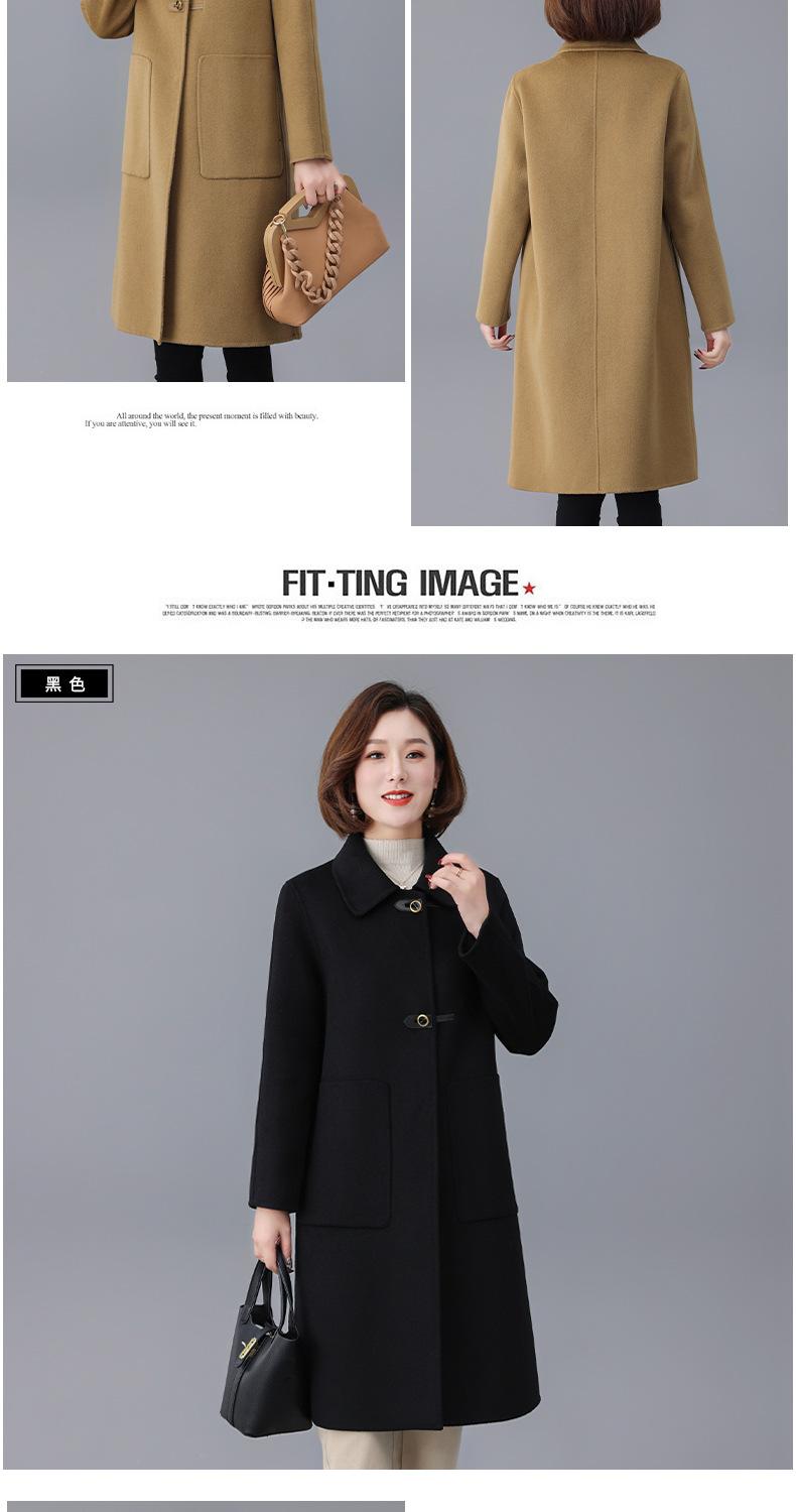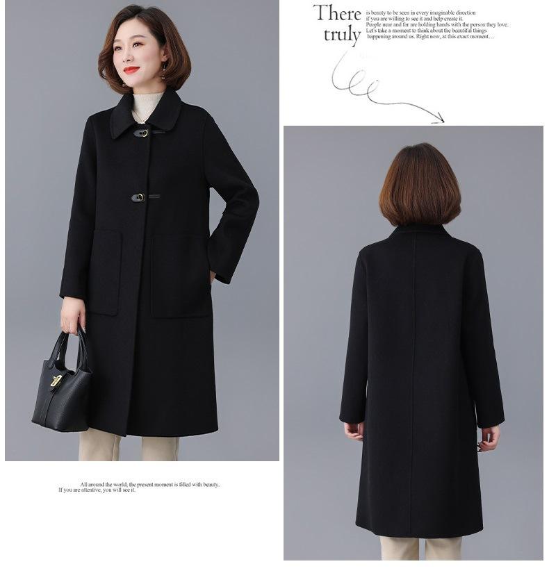 Abrigo de Lana de Doble Vista hasta la Rodilla para Mujer de Mediana Edad, Nuevo Otoño e Invierno, Color Sólido, Chaqueta de Lana para Madre de 40 Años