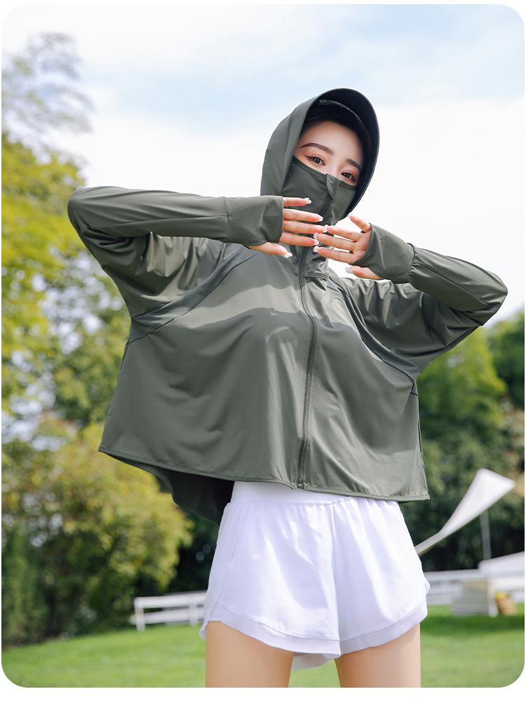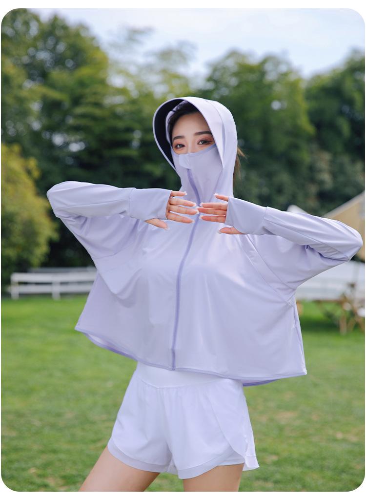 Chaqueta de Protección Solar para Mujer Seda de Hielo Manga Larga Anti-UV Holgada Transpirable Fina con Capucha Ropa de Protección Solar Ropa de Protección Solar para Ciclismo