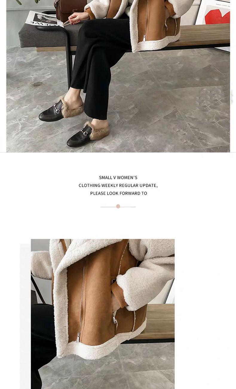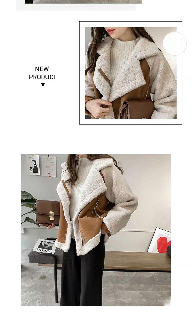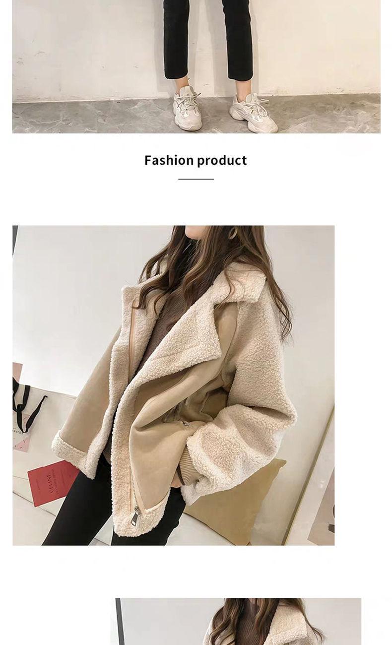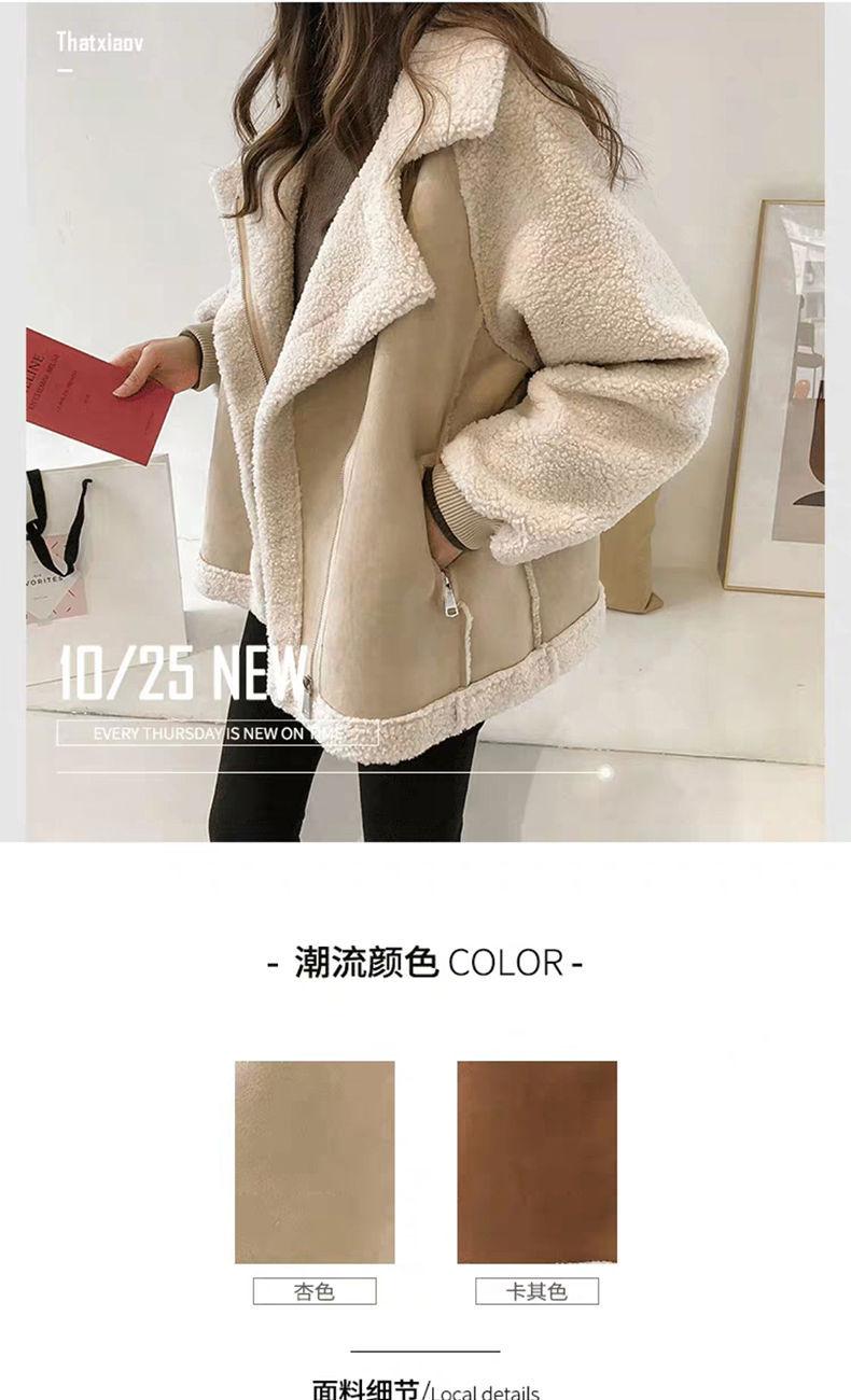2025 Nuevo Cálido de Piel Gruesa de Una Pieza Tops de Lana de Cordero Sueltos y Más Fáciles de Combinar Top de Gamuza Ropa de Motociclista Trendy