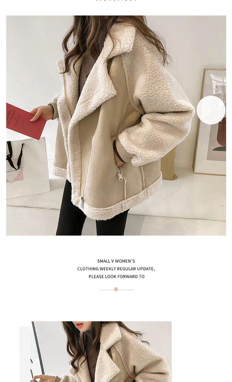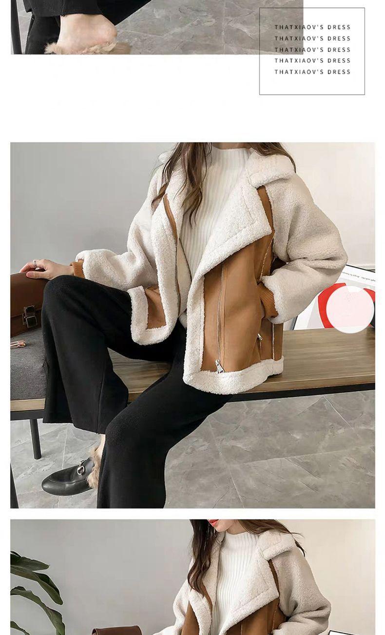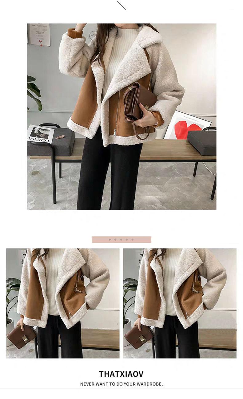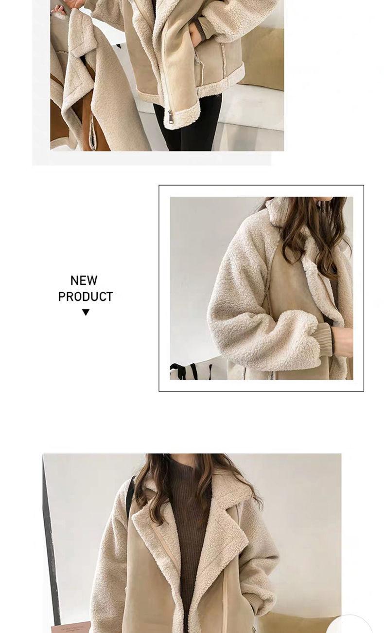 2025 Nuevo Cálido de Piel Gruesa de Una Pieza Tops de Lana de Cordero Sueltos y Más Fáciles de Combinar Top de Gamuza Ropa de Motociclista Trendy