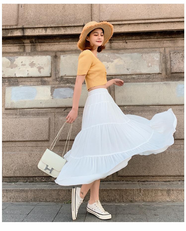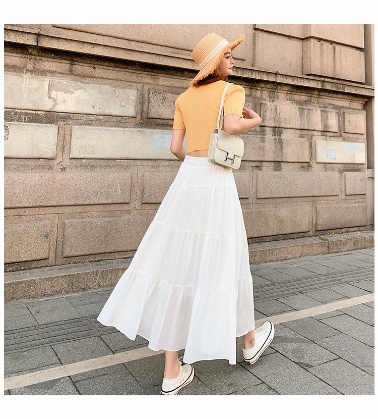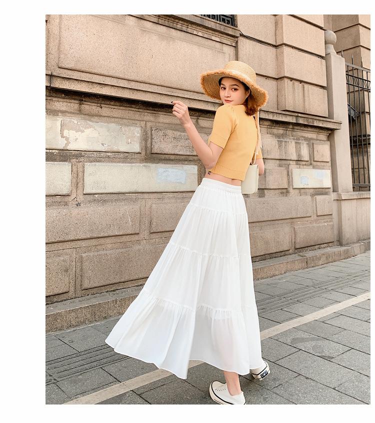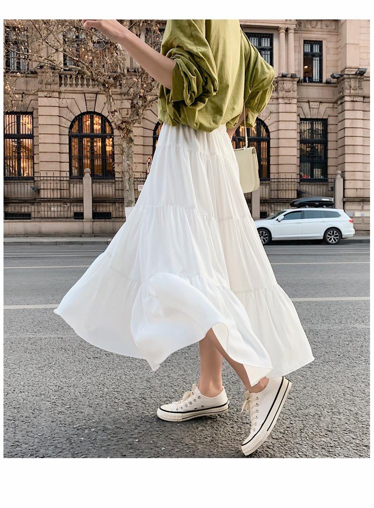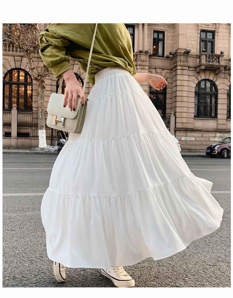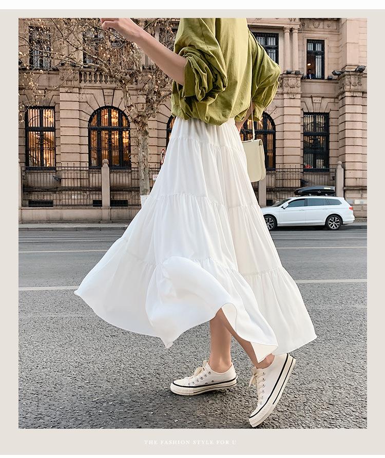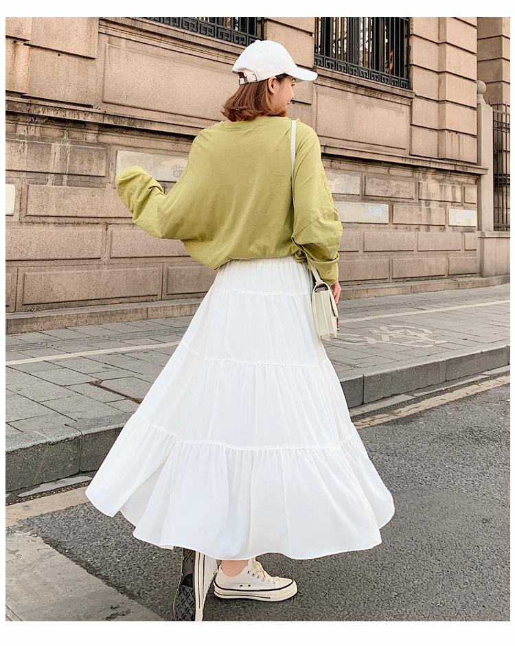 Falda de Pastel Blanca Nueva Otoño/Invierno 2025 Estilo Coreano Adelgazante Falda de Pastel de Hada Largo Medio Falda Línea A para Mujer