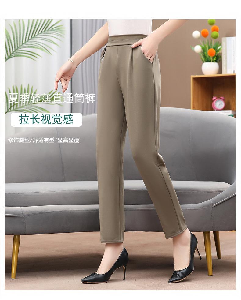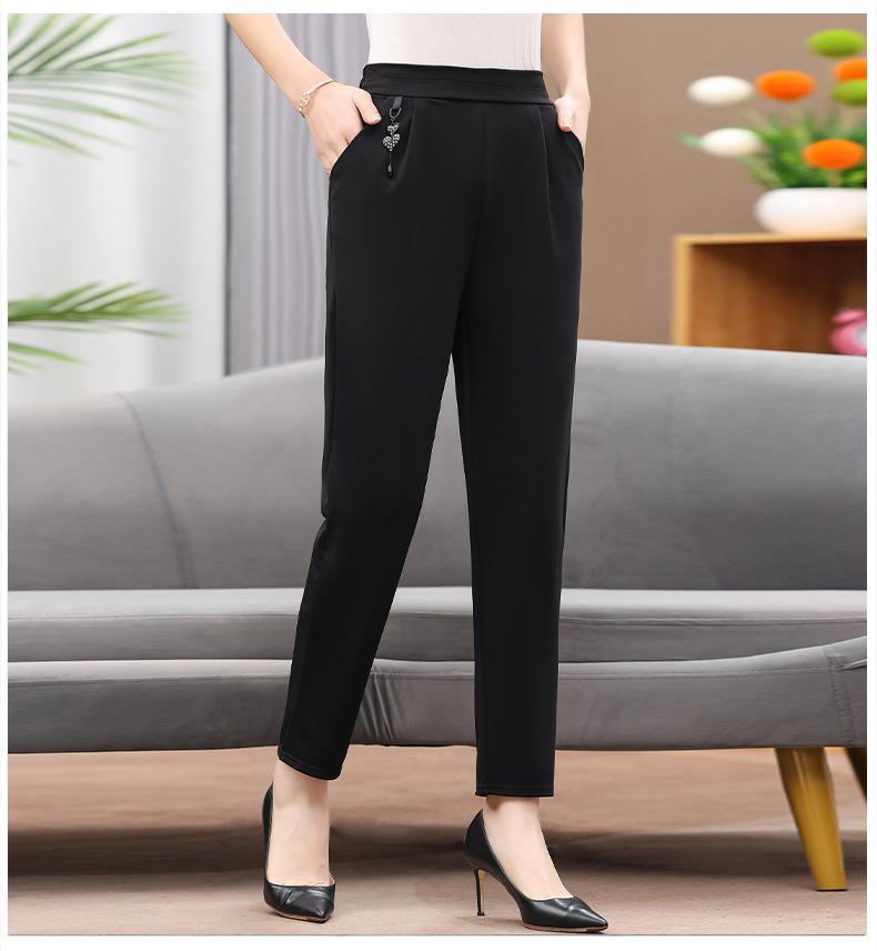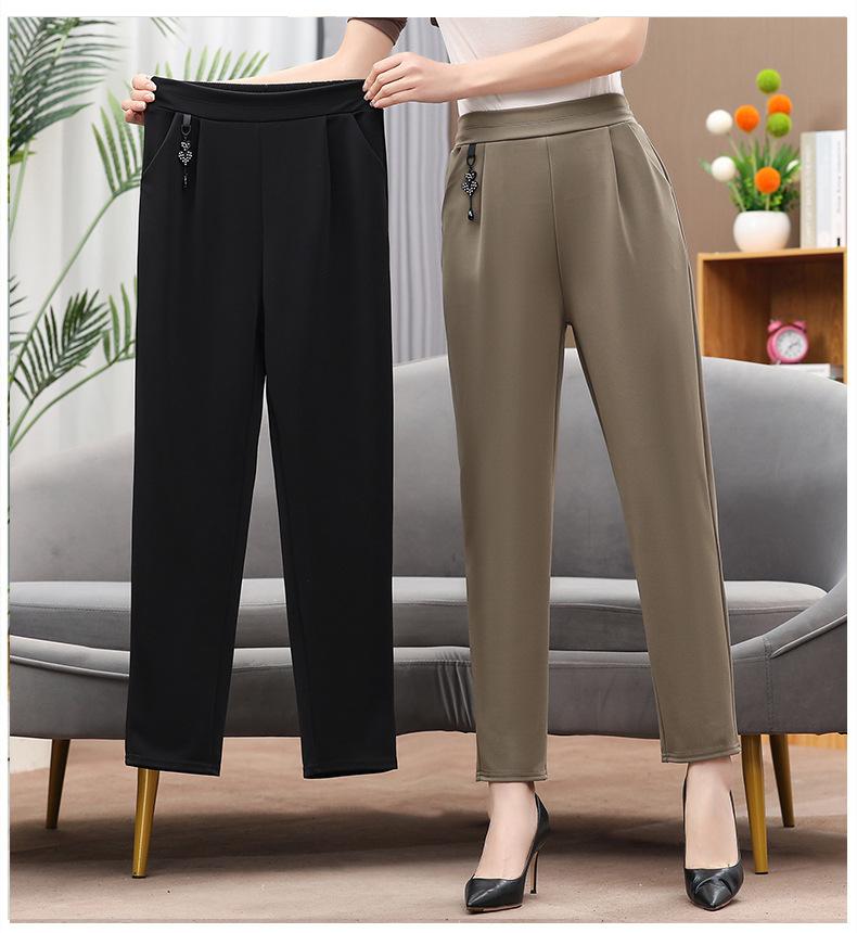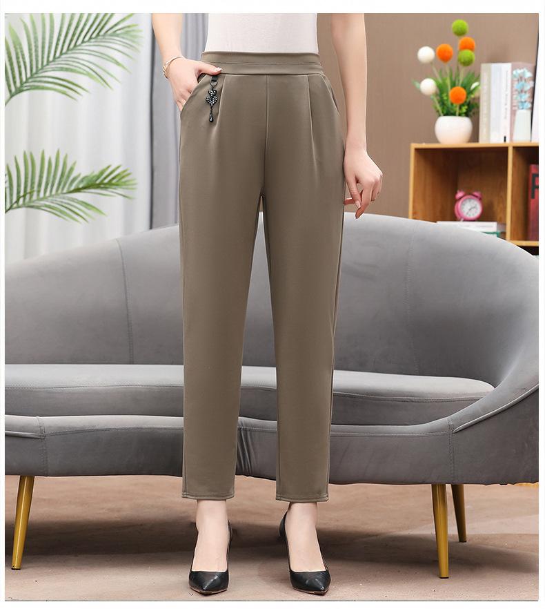 Pantalones de mamá otoño sueltos talla grande mediana edad y ancianos pantalones casuales modernos cintura elástica cintura alta pantalones rectos de mujer