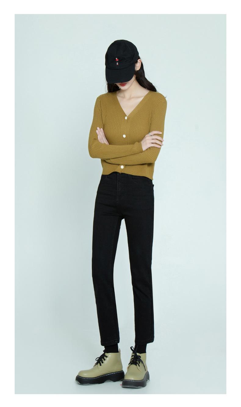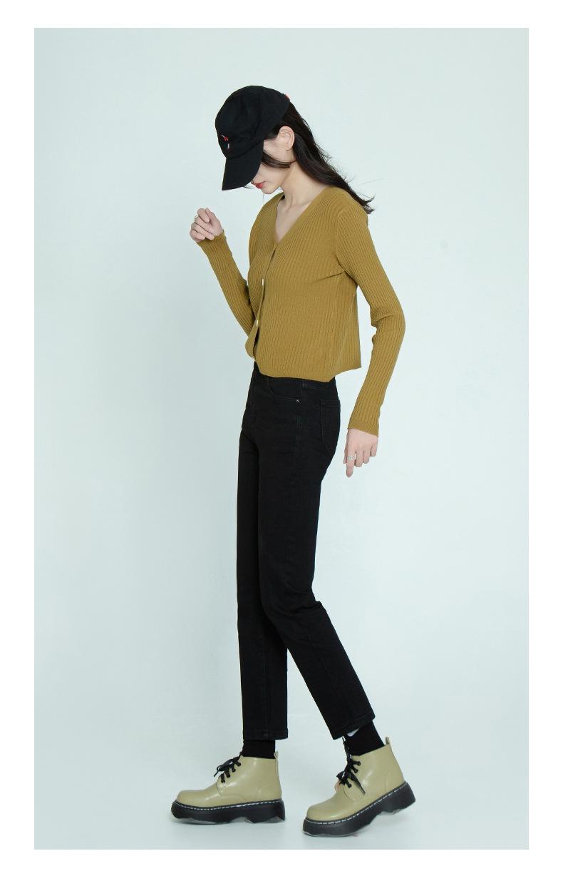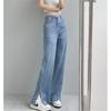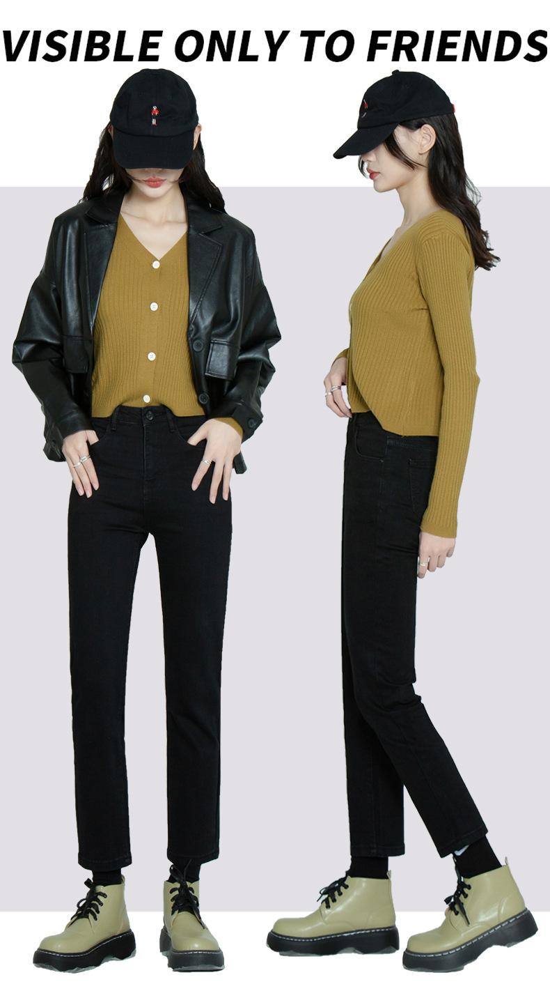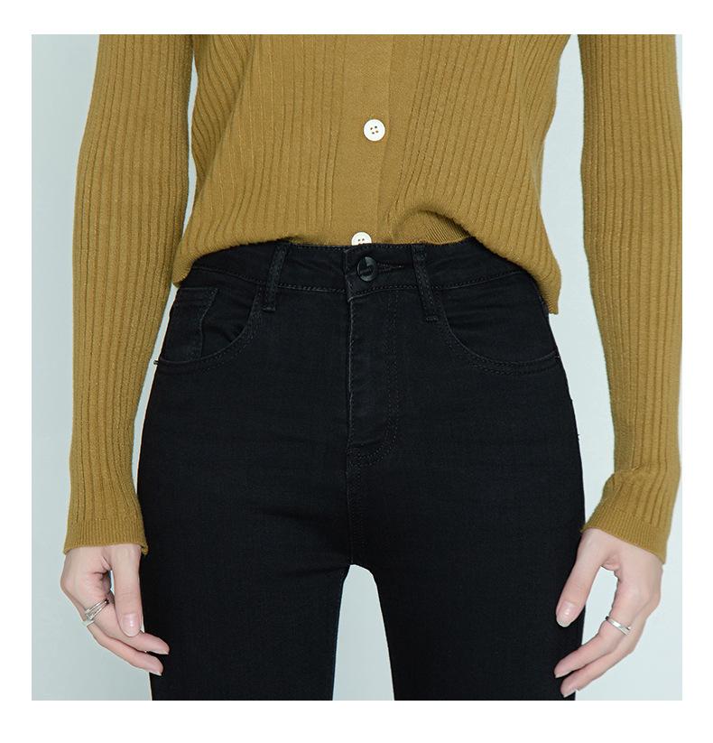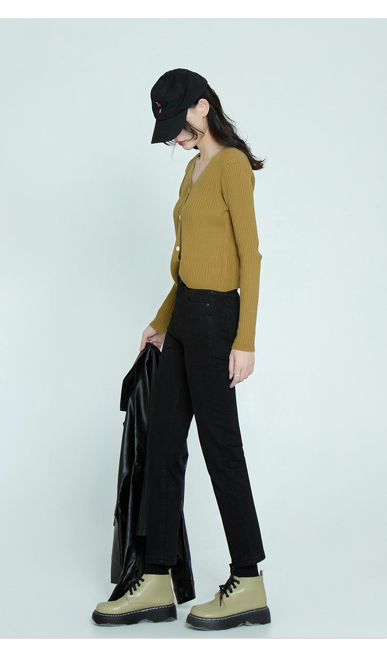 Pantalones vaqueros negros finos de verano con abertura y corte recto para mujer, nuevos pantalones adelgazantes de cintura alta con corte pequeño y tubo