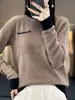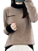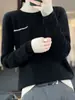 Suéter de Lana de Color Sólido Medio Cuello Alto para Mujer 24 Nuevo Otoño e Invierno Suéter de Color Puro Moda Jersey Tejido de Lana Empalmado